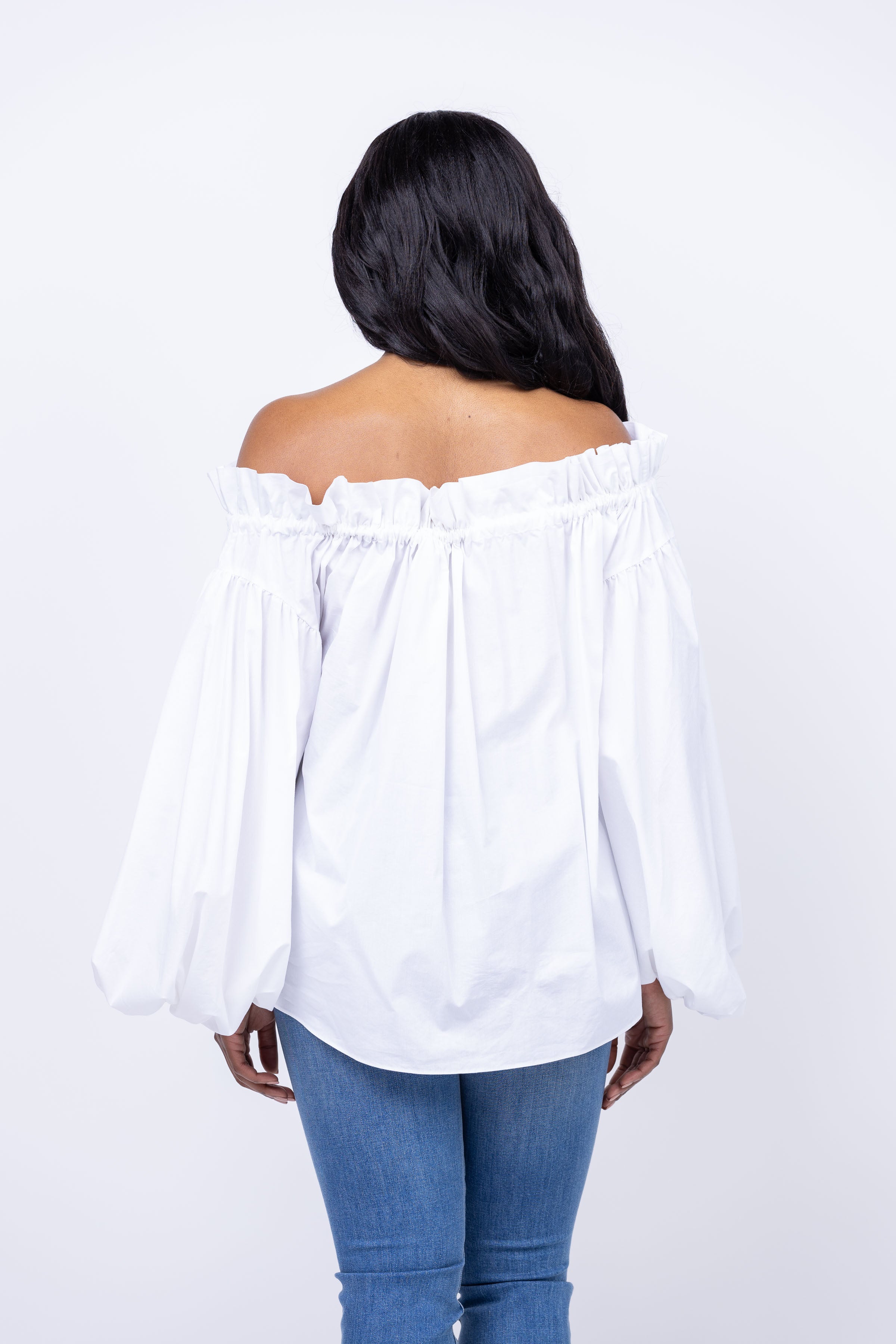 Experience effortless style with the Caroline Constas Adeline Top in White. This stunning top features a front tie closure and elastic puff sleeves, creating a delicate and feminine silhouette. Made of luxurious poplin fabric with ruffle trim, this top is perfect for any occasion. Command attention with its voluminous sleeves and elevate your outfit today!