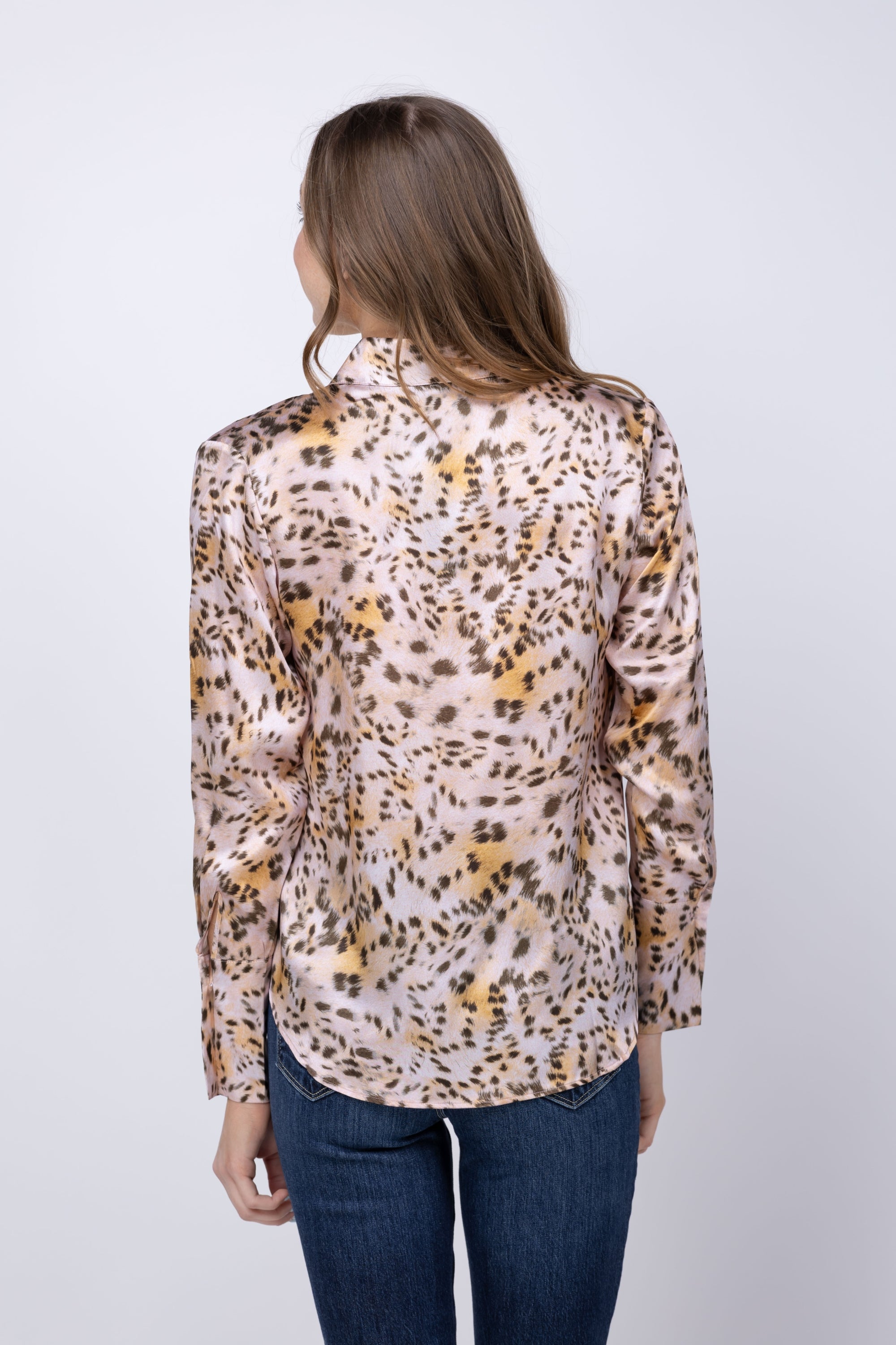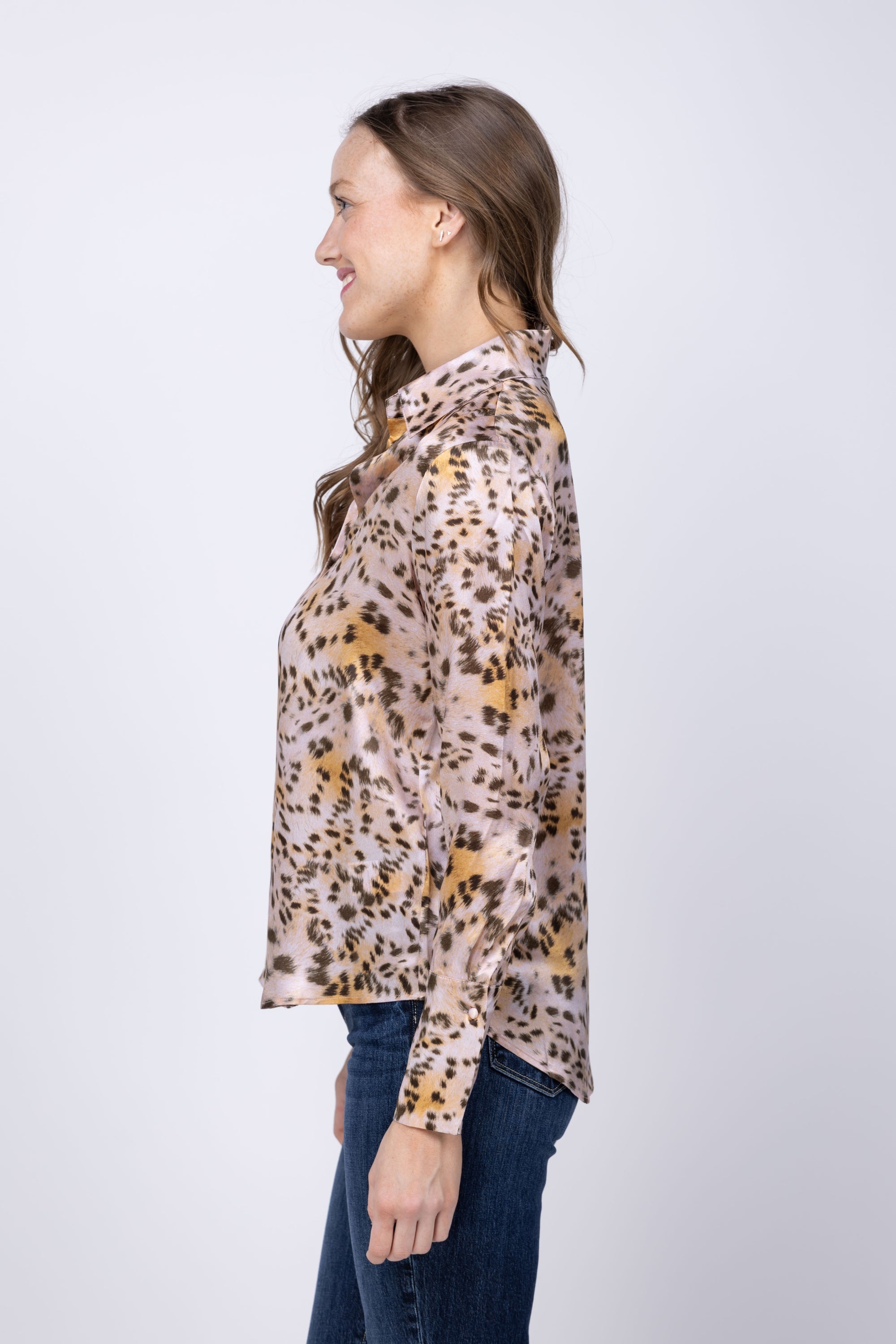 Catherine Gee Daria French Cuff Silk Blouse in Blush Leopard