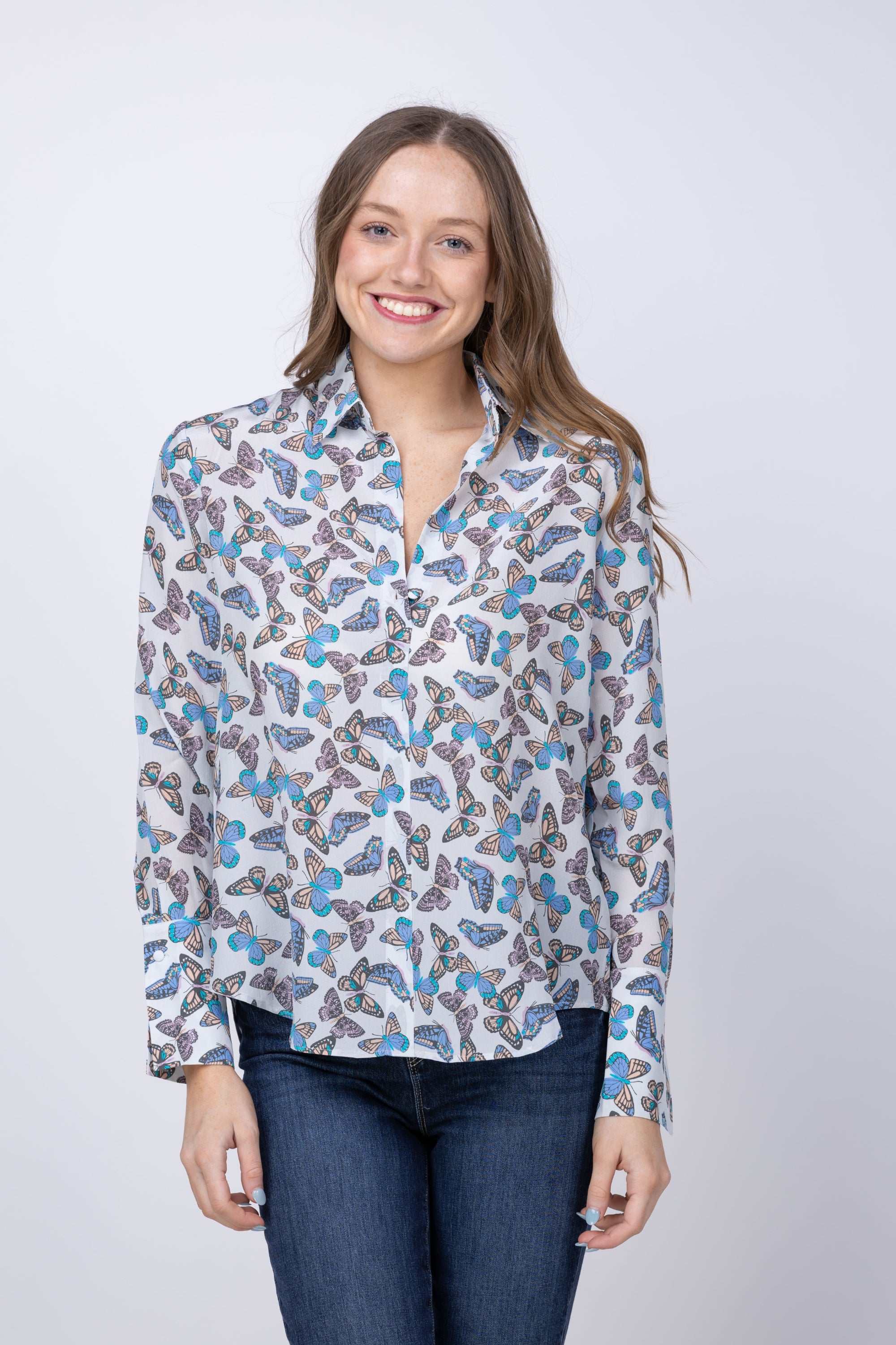 Elevate your wardrobe with the Catherine Gee Daria French Cuff Silk Blouse in Mallorca Monarch. This sophisticated piece features luxurious silk construction and refined French cuffs for a polished, professional look. The rich Mallorca Monarch hue—a deep, jewel-toned burgundy—adds elegance to any ensemble, from office settings to evening occasions. Perfect for layering or wearing solo, this blouse pairs effortlessly with tailored trousers, skirts, or blazers. Timeless style meets everyday versatility in this essential silk staple.