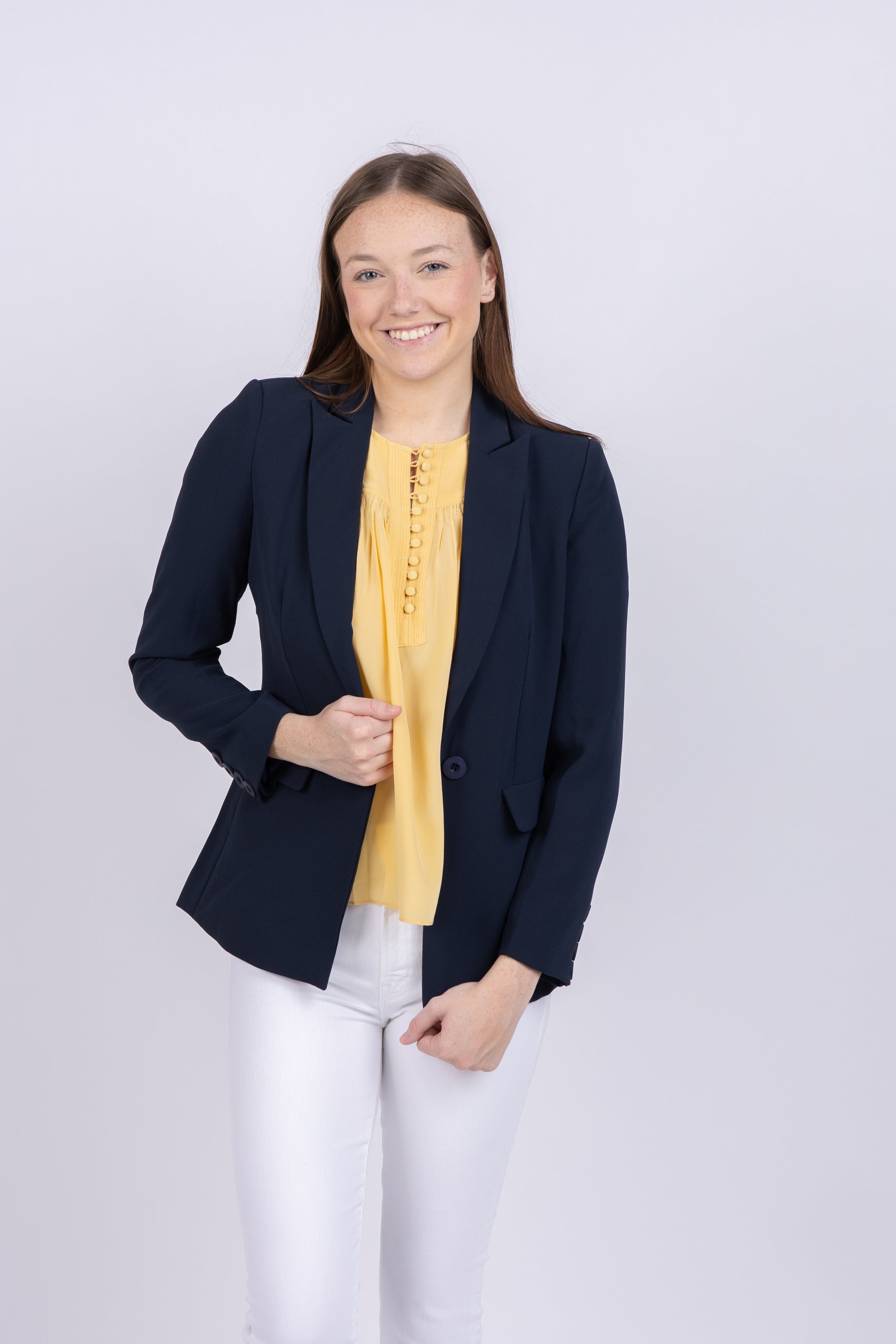 Add a bit of flair to your formal wardrobe with this Gal Crepe Blazer! It's tailored for an effortlessly chic look that will leave you feeling confident no matter the occasion. All eyes will be on you in this eye-catching piece!