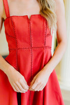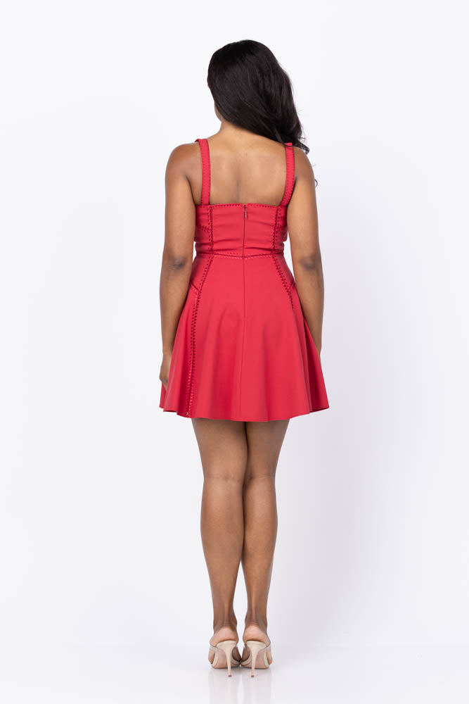 The Cinq à Sept Jelena Dress in Cherry Rose redefines classic elegance with a playful twist. Cut in a flattering A-line silhouette, it features a striking contrast trim that highlights its modern charm. The square neckline and shoulder straps offer a chic, structured look, while the concealed back zip closure ensures a smooth fit. Perfect for making a statement at any event, this minidress combines timeless style with fresh details for effortless sophistication.