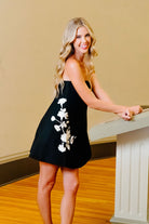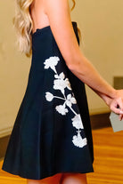 The Cinq à Sept Trailing Floral Irla Dress in Black/Ivory captures playful elegance with its strapless neckline and delicate floral embroidery. Designed with subtle pleating for graceful movement, this mini dress makes a bold statement at any evening event. A concealed back zipper ensures a seamless fit, perfect for showcasing your confident style.