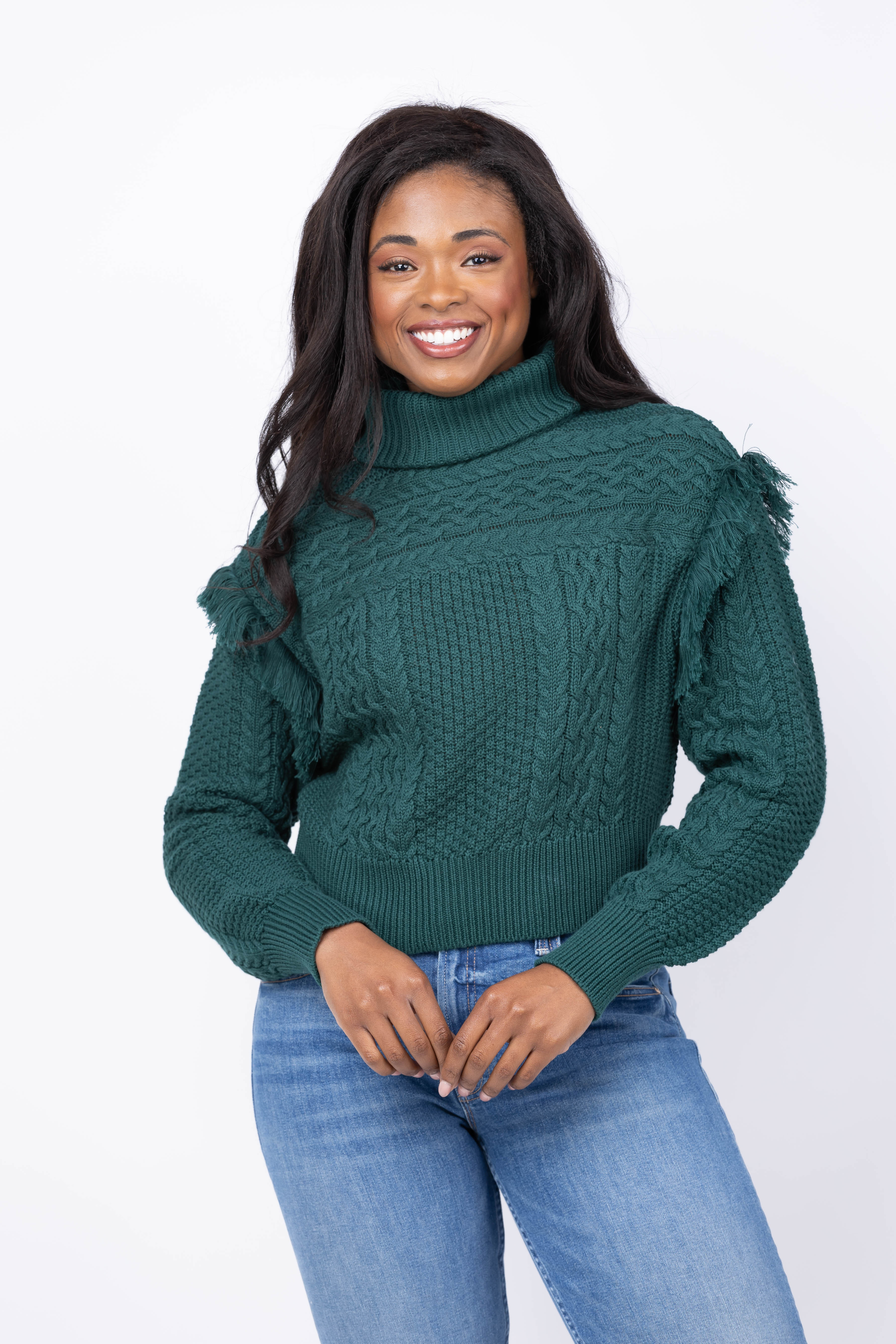 Meet your new wardrobe essential—the Cleobella Haven Sweater, expertly knit from 100% organic cotton for uncompromising softness and sustainability. This refined long-sleeve pullover features a graceful high neckline and distinctive fringe detailing at the cuffs, adding subtle texture to an otherwise minimalist design. The slip-on construction makes getting dressed effortless, while the versatile silhouette bridges casual comfort and polished sophistication. Layer it over basics for weekend ease or wear solo for understated elegance that carries you from morning coffee to evening gatherings. Invest in a timeless piece that prioritizes both your comfort and the planet.