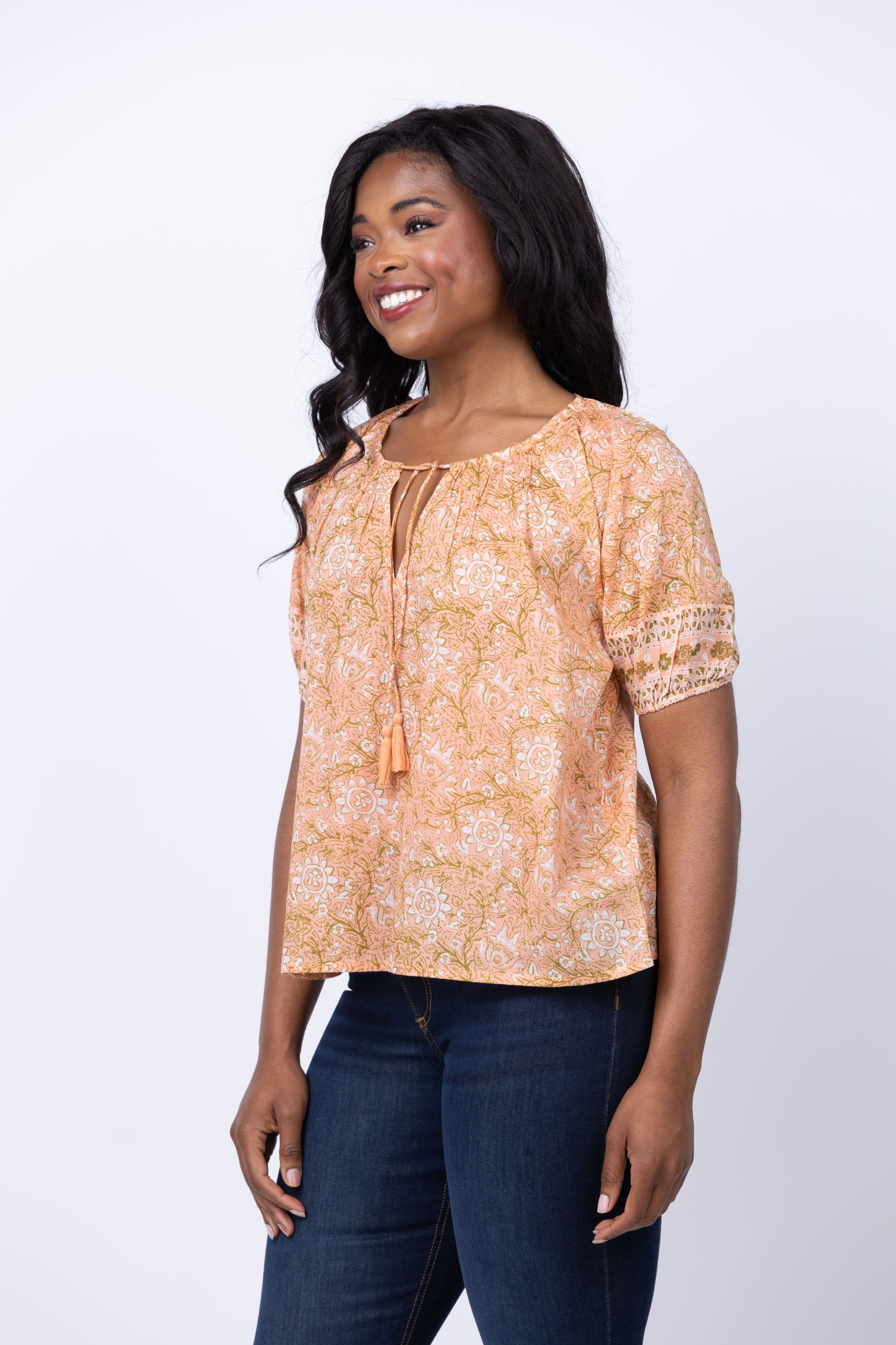 The Cleobella Johana Blouse offers a beautiful blend of comfort and style. This ethically handmade blouse is crafted from 100% GOTS certified organic cotton mulmul, allowing for breathability and a soft touch on the skin. Perfect for a chic and effortless look when paired with the Austin Short.