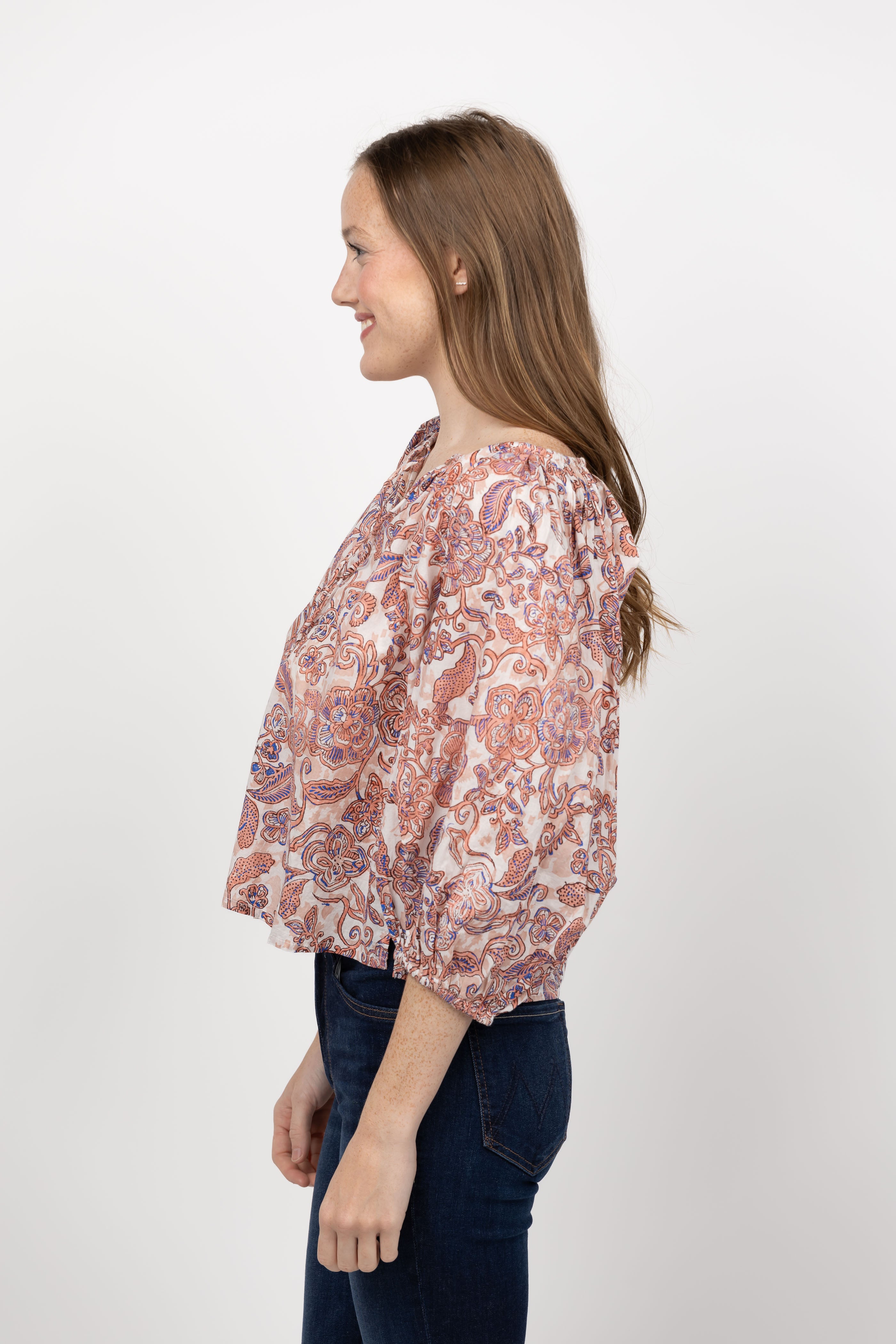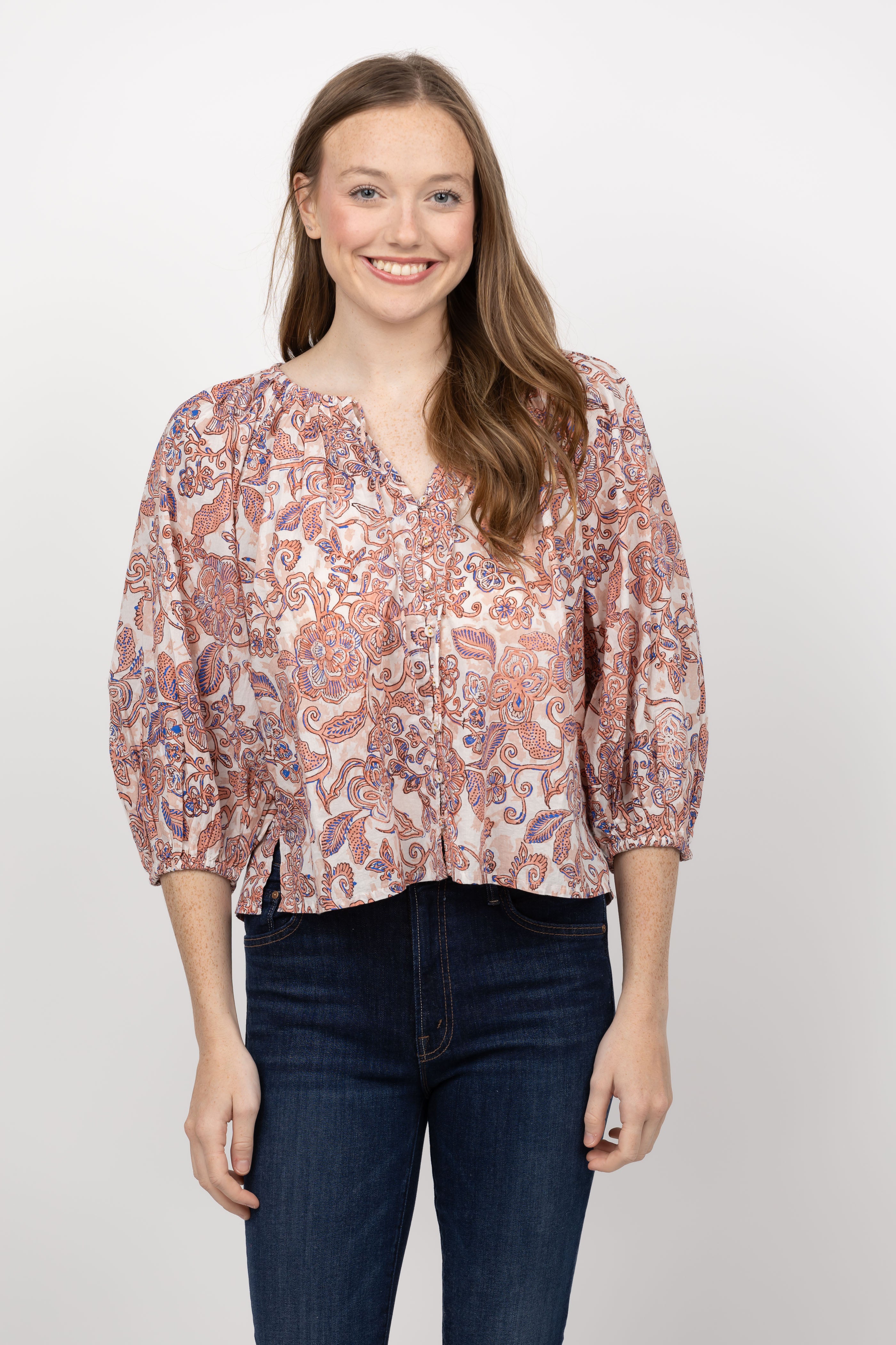 Looking for a stylish and comfortable top? Look no further than the Cleobella Kyla Blouse in Amara Floral! The billowed sleeves and drawstring-neck add a touch of elegance to the crisp organic-cotton voile material. Feel confident and chic in this must-have piece!