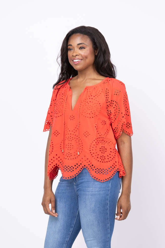 Ethically handmade in India from 100% GOTS certified organic cotton eyelet, the Cleobella Lulu Blouse in Poppy Red offers a flowy silhouette with delicate handmade eyelet details. This blouse combines sustainable craftsmanship with timeless style, making it a versatile addition to your wardrobe. Pair it effortlessly with the Austin short or core collection bottoms for a chic, eco-conscious look that stands out. Embrace comfort and conscious fashion with this beautiful, ethically crafted piece.