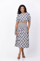 The Cleobella Melanie Midi Skirt in San Marino Print combines effortless style with comfort. Ethically handmade in India from 100% GOTS-certified organic cotton poplin, it features a smocked drop waist and soft shirring that enhance movement and ease. Versatile and flattering, this skirt pairs beautifully with the Helena Top to create a coordinated look that is both polished and playful, perfect for any occasion where comfort meets chic.