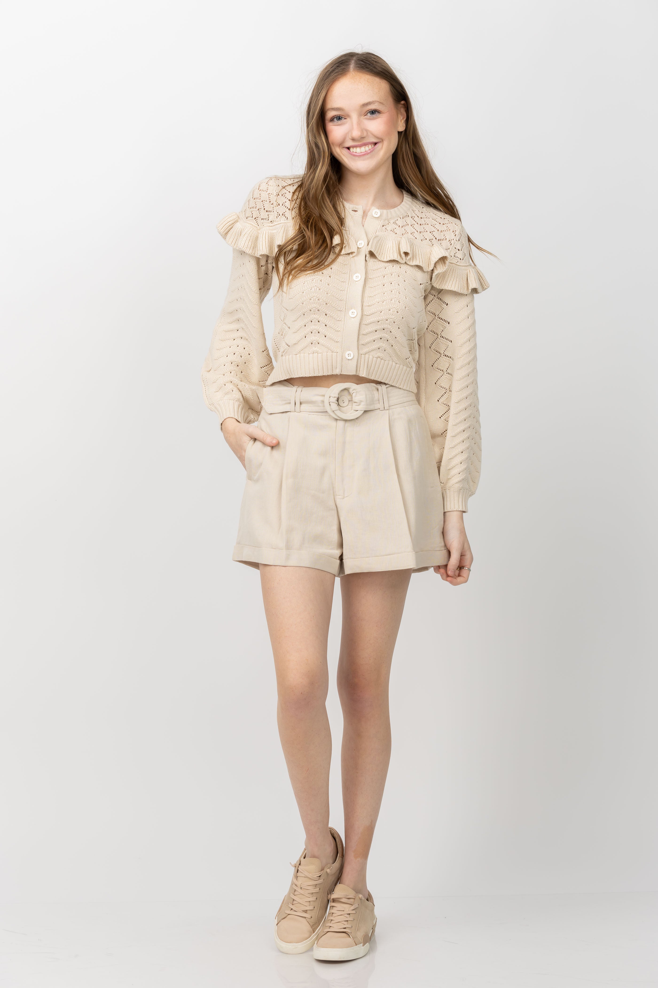 Elevate your sustainable wardrobe with the Cleobella Oscar Shorts in Pale Champagne. Made from a comfortable cotton linen blend, these shorts feature a removable double o-ring belt that flatters the waist. Pair with the Prescott Jacket for a bright and stylish look.