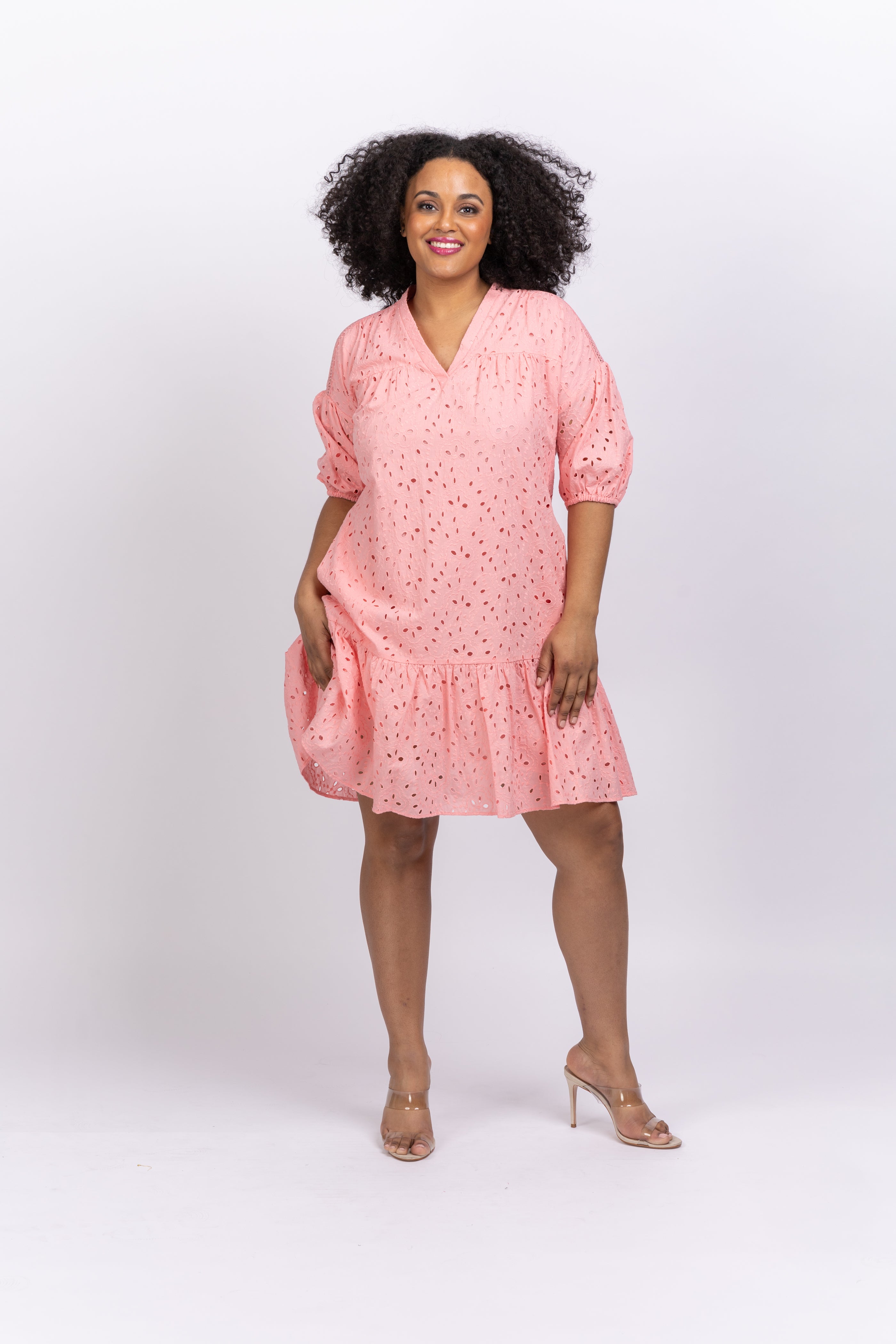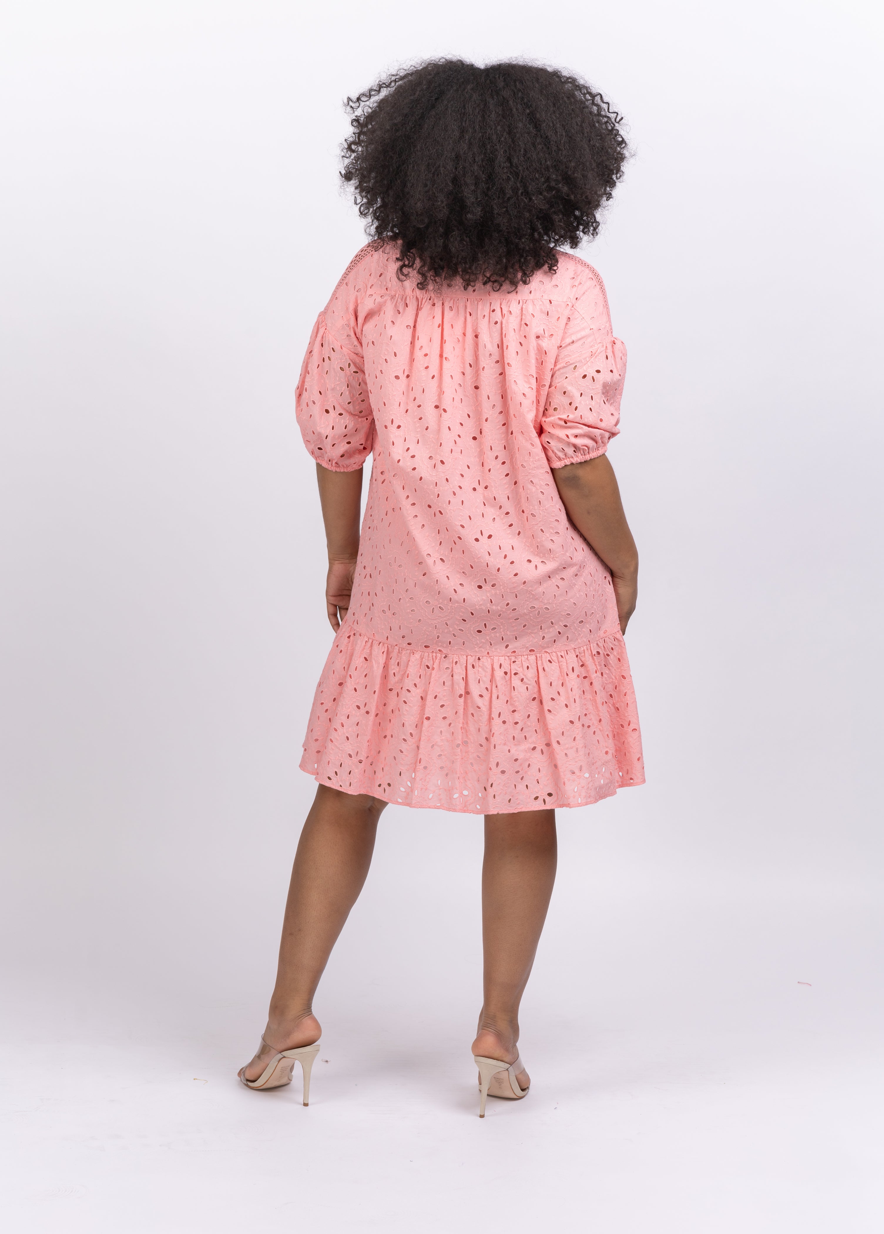 Loose in fit and light in fabric, the Agar dress is a warm-weather essential. Cut from a soft cotton with eyelet details on the shoulders, its puffed sleeves cinch just above the elbow and its drop-waist hem falls just above the knee.