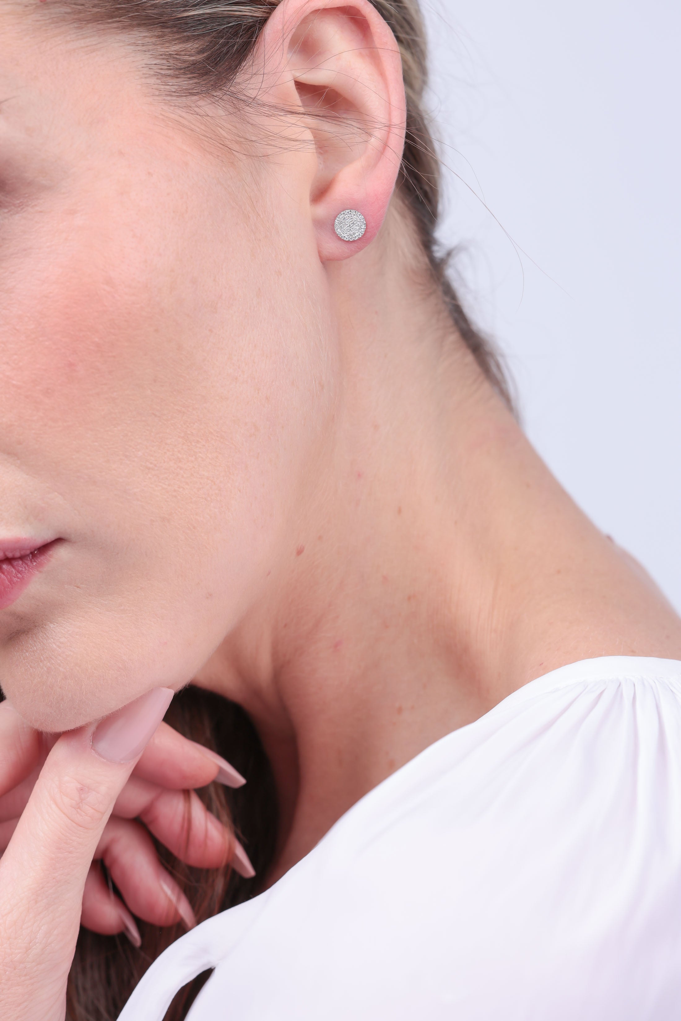 Introducing Dilamani's 14k White Gold Diamond Earrings! As a diamond lover, you know that a pair of pavé diamond studs is an essential addition to any closet. These classic silver earrings add a touch of elegance to any outfit. Don't miss out on this must-have accessory.