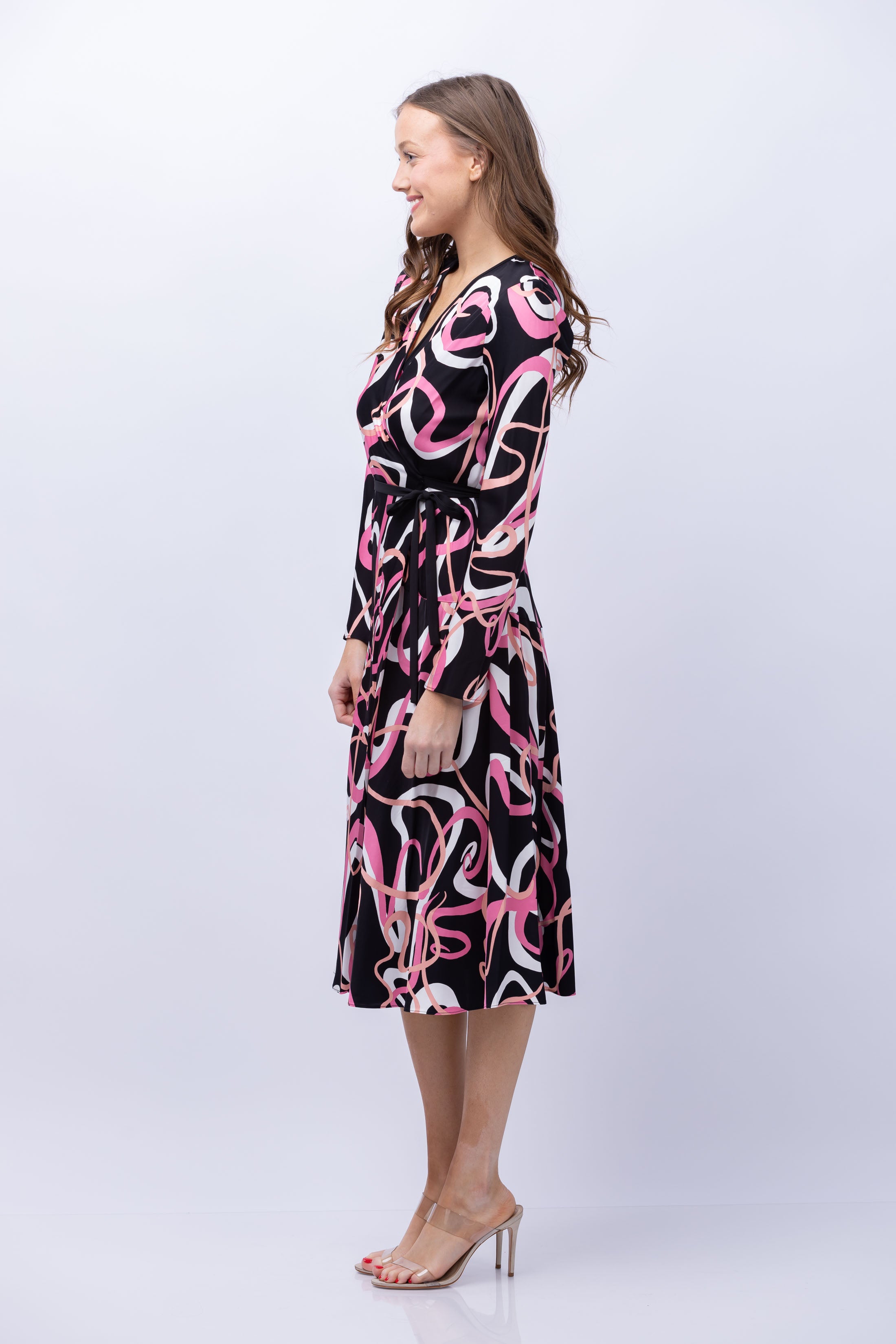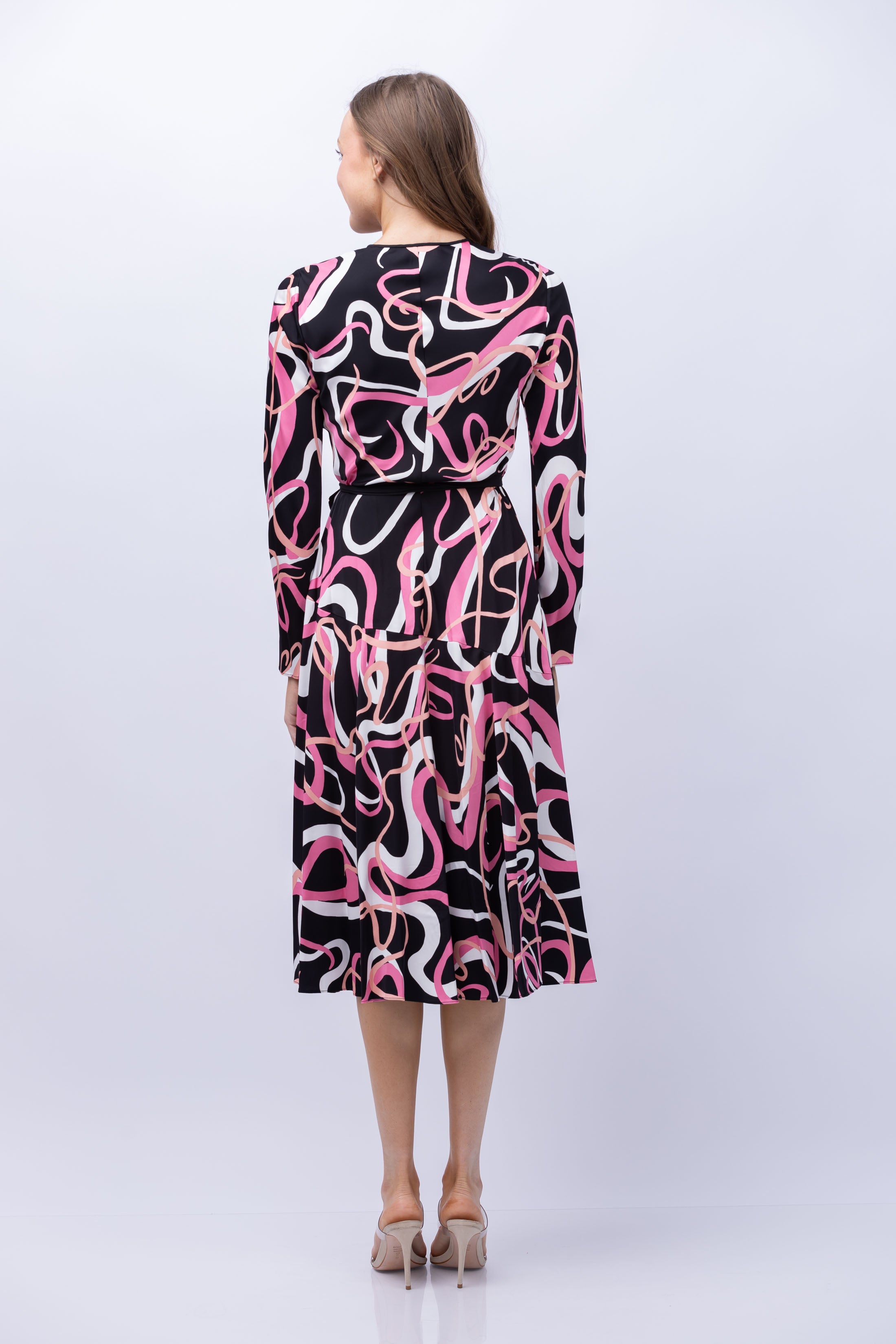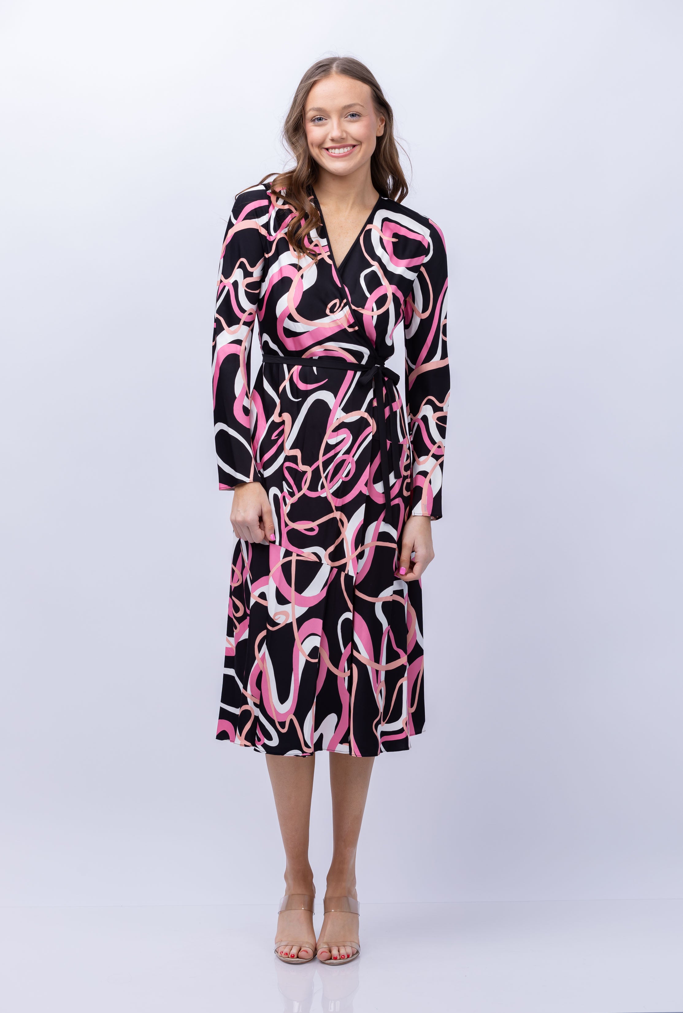 Embrace sustainable fashion with the DVF Anika Dress in Celebration. Made from sustainably-sourced satin, this midi dress features a true wrap closure and full skirt for easy wear. The V-neckline and long sleeves are accented with solid trim for a flattering silhouette. Look good and feel good with every wear.