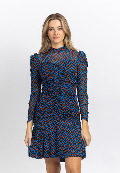 Designed with head-turning ruching along the center, the Karli dress is perfect for an occasion. This piece has long sleeves, slightly puffed shoulders, and lands at around mid-thigh. Cut from body-hugging mesh, it's flattering and made for dancing the night away.