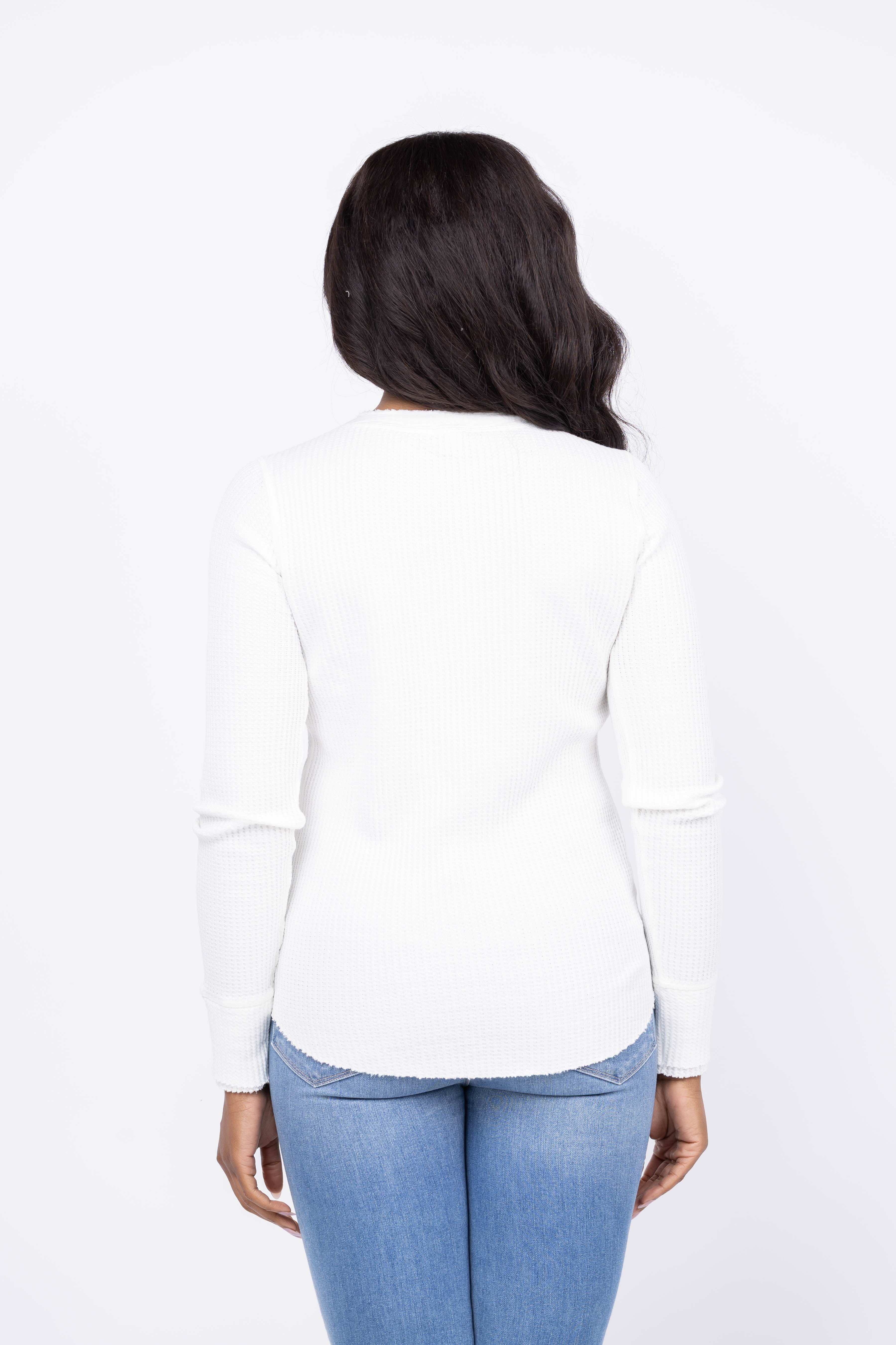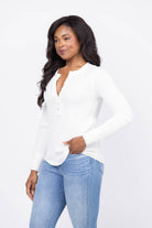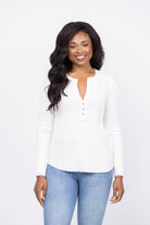 The Dylan Brooks Button Top in Winter White redefines the classic henley with refined details like defined seams, a rounded hemline, and durable metal buttons. Crafted from 100% cotton, it offers all-day comfort and breathability. This timeless staple fits true to size, making it an effortless addition to your wardrobe for versatile, stylish layering.