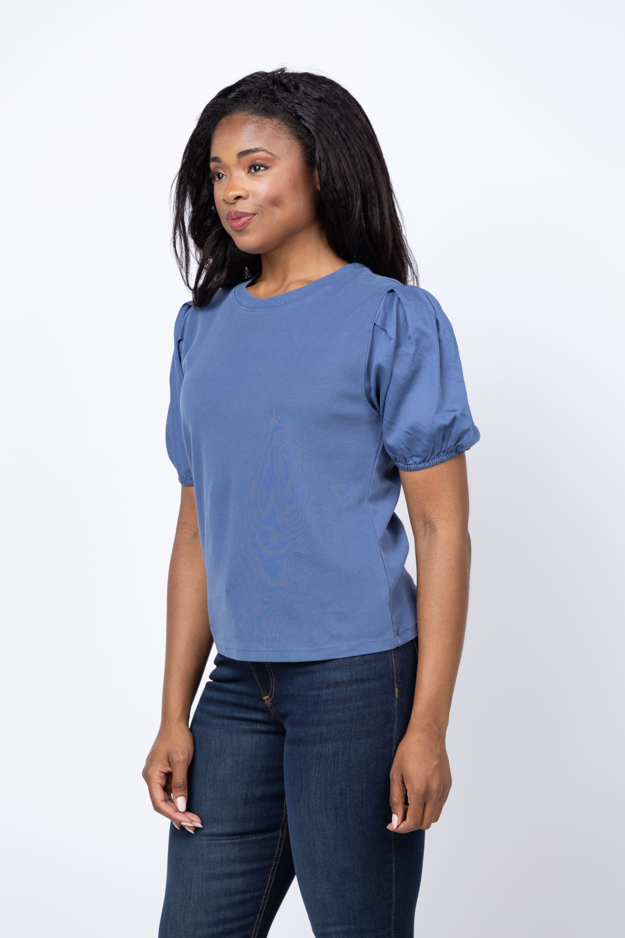 Introducing the Dylan Cate Top in Indigo - the perfect casual top for any occasion! Made with a comfortable rib knit material and accented with poplin sleeves, this top is both stylish and functional. Elevate your wardrobe with this versatile and high-quality piece!