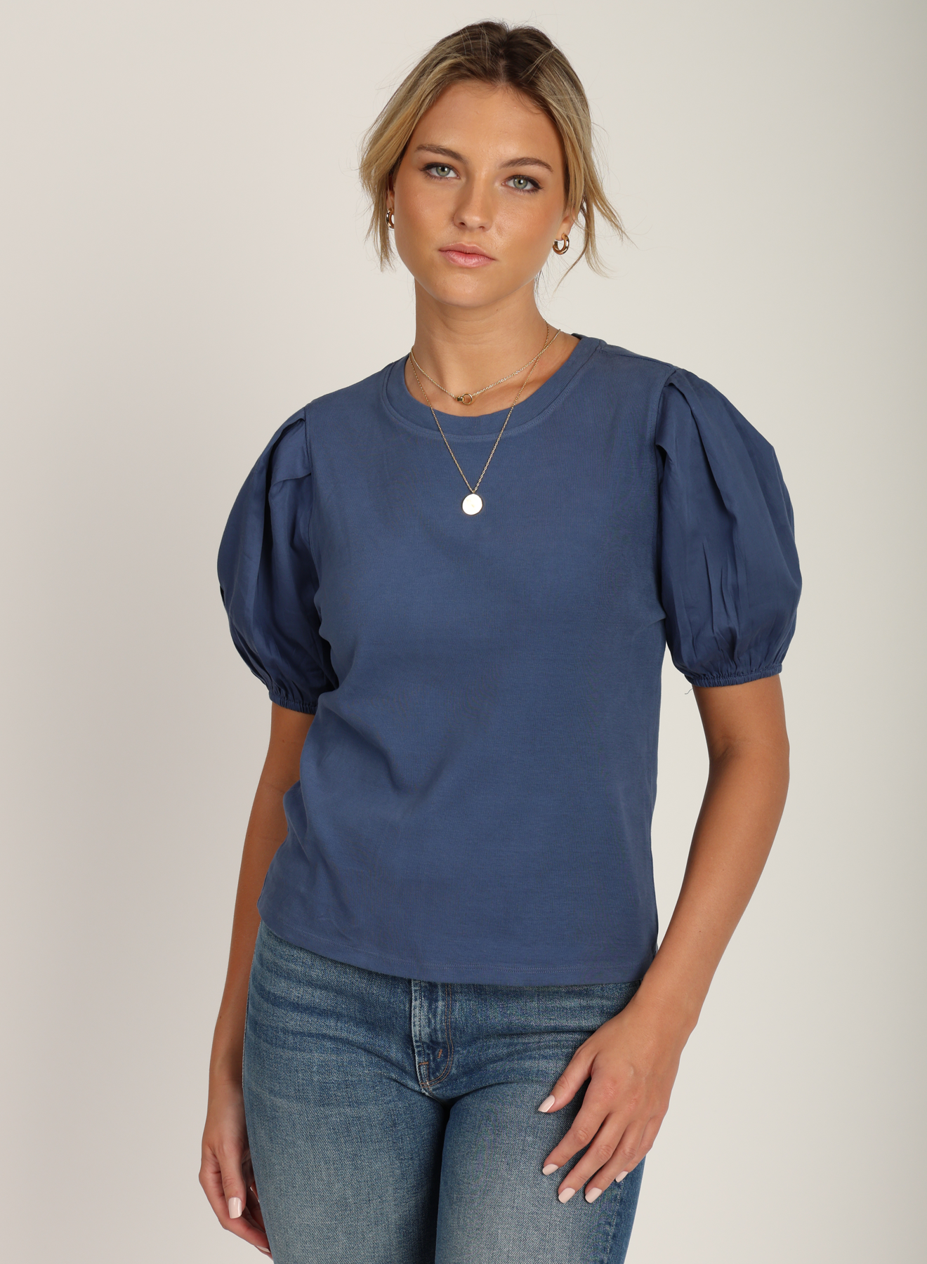 Elevate your summer wardrobe with the Dylan Cate Top in Sky! The playful puff sleeves add a touch of charm to this classic tee, making it perfect for pairing with jean shorts and sandals. Stand out in style and comfort with this must-have piece!