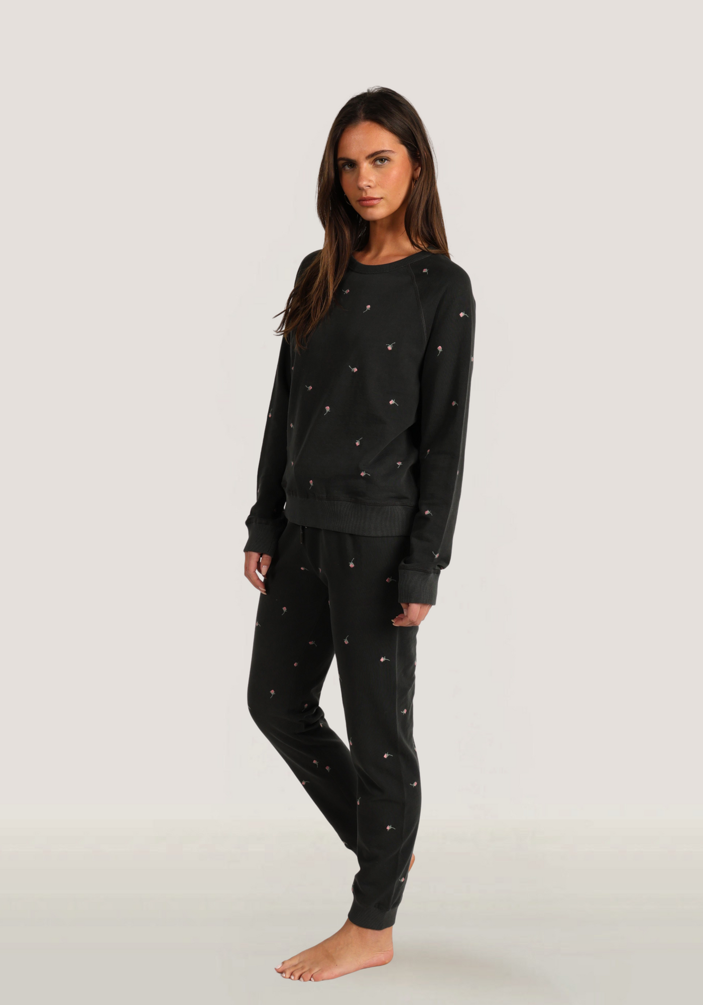 The Dylan Chloe Embroidered Jogger in Soft Black is made from washed 100% cotton for exceptional softness and comfort. Featuring delicate embroidered flowers, these joggers add a stylish, feminine touch to your loungewear. Designed as part of a set, they offer a coordinated look that effortlessly blends comfort and elegance.