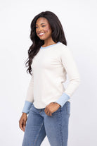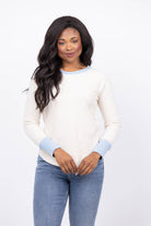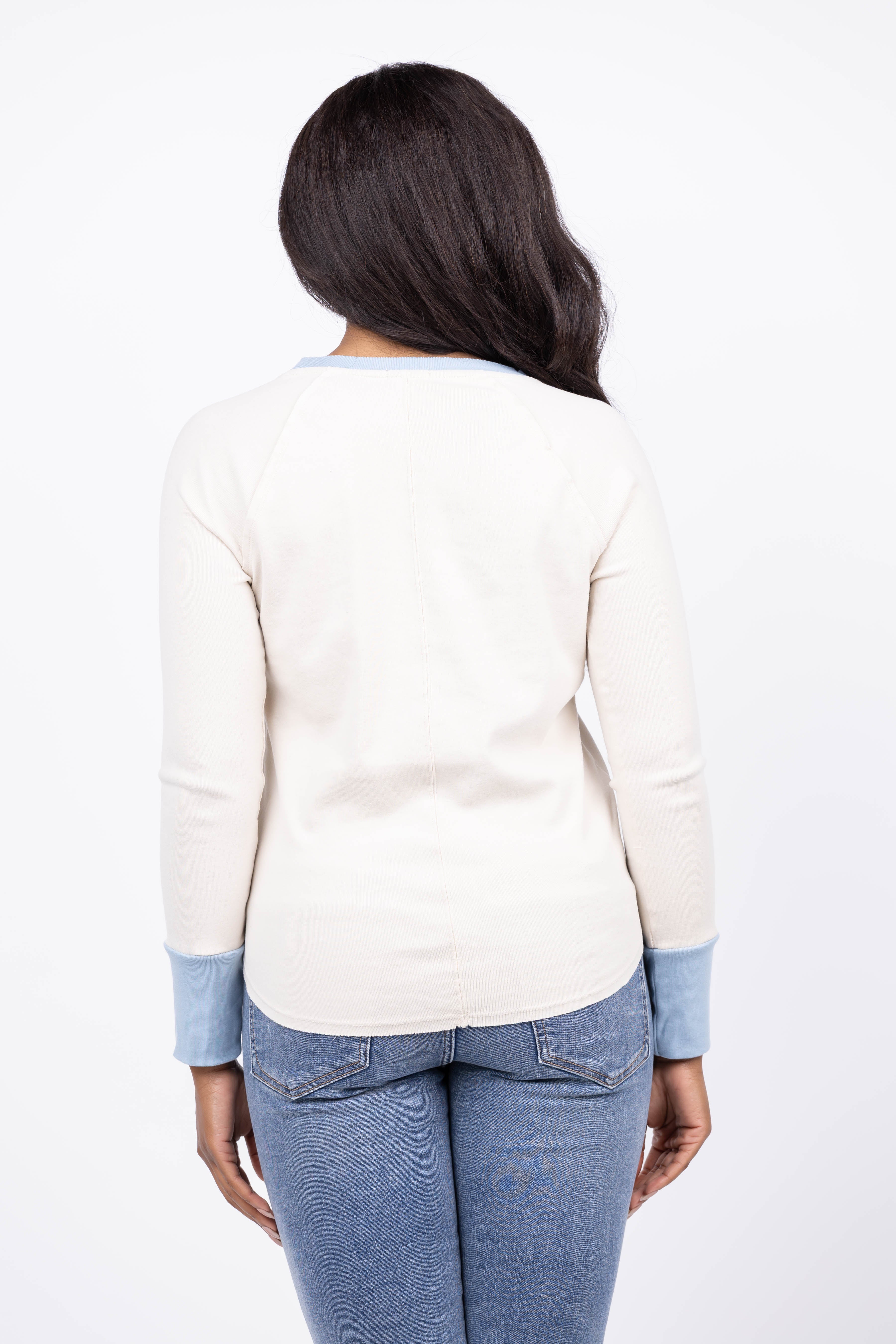 The Dylan Contrast Rib Raglan in Natural/Sky is a rugged crewneck long sleeve designed for effortless layering. Its durable construction and comfortable fit make it an ideal piece to wear on its own or under jackets for added warmth. The contrast ribbed sleeves add a stylish edge, perfect for enhancing your casual wardrobe.