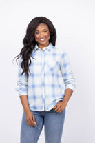 The Dylan Crossroads Plaid Shirt in Blue offers a stylish yet relaxed look with its light blue casual plaid pattern. Perfectly paired with denim and a belt, this shirt brings effortless charm to your everyday wardrobe. Its versatile design makes it easy to dress up or down, ensuring you stay comfortable and fashionable throughout the day.