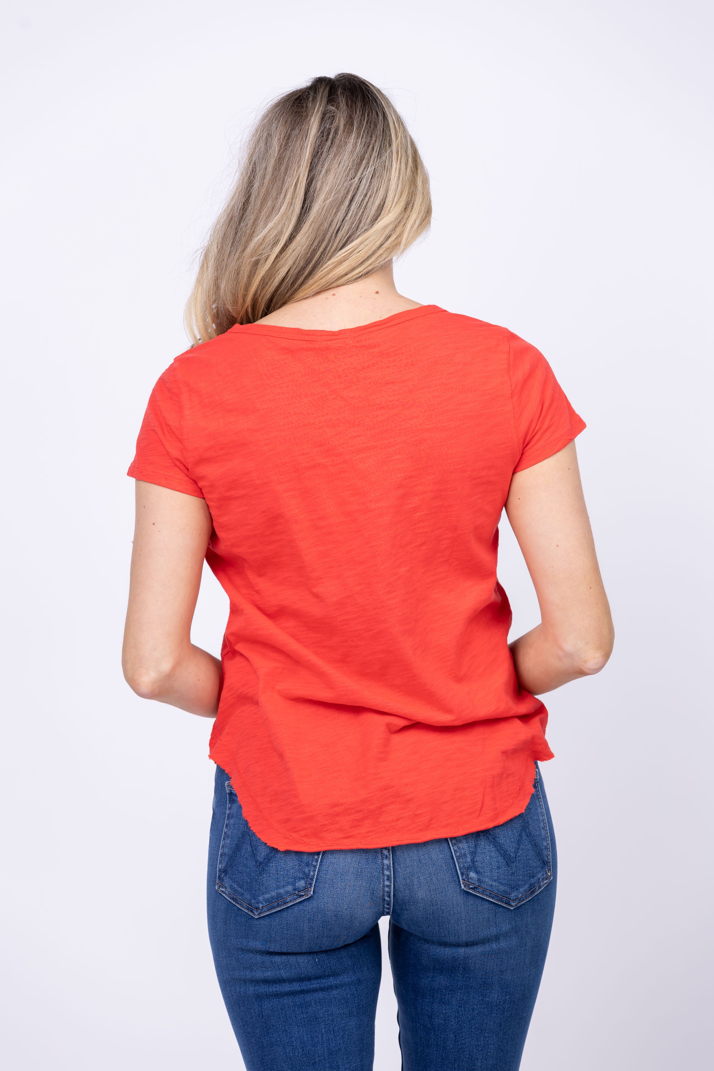 Dylan Deep V-Shirt Tail Tee in Poppy Red