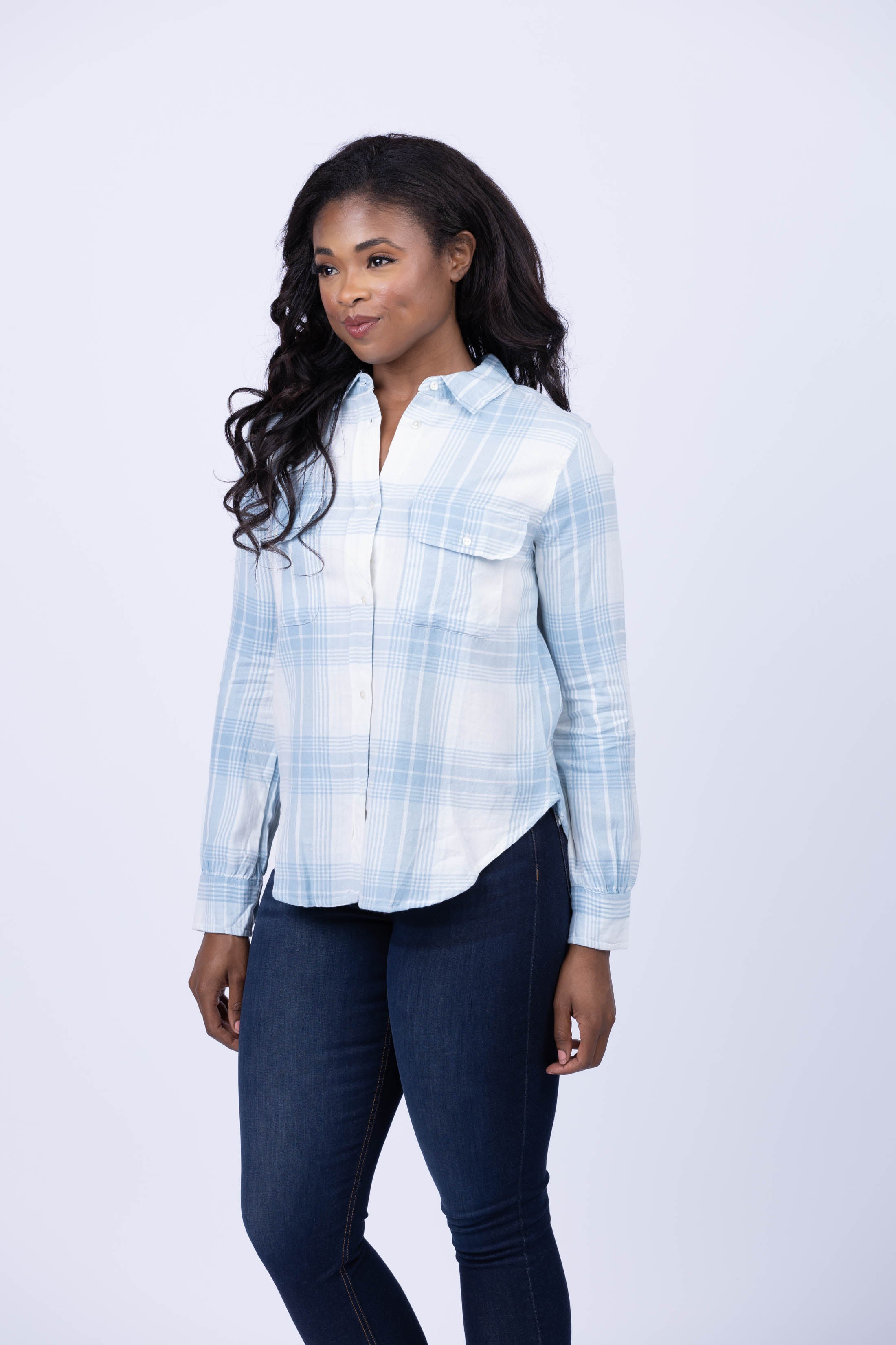 Introducing the Dylan Harper Shirt, an eye-catching and stylish collared button down shirt with two front pockets and a two button cuff. Crafted in a beautiful light blue plaid pattern, this shirt is perfect for making a subtle, yet confident fashion statement. Dare to stand out with the Dylan Harper Shirt!