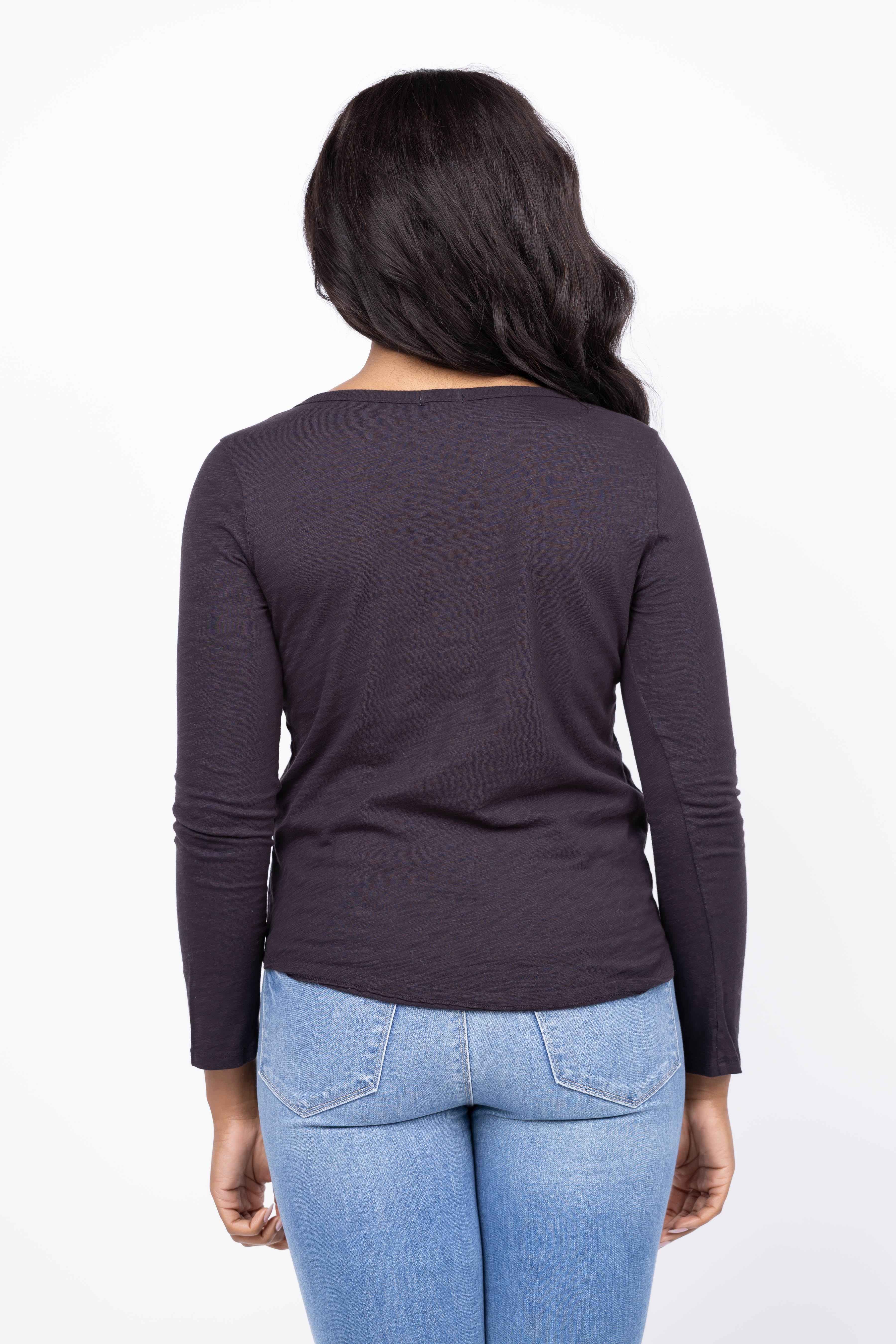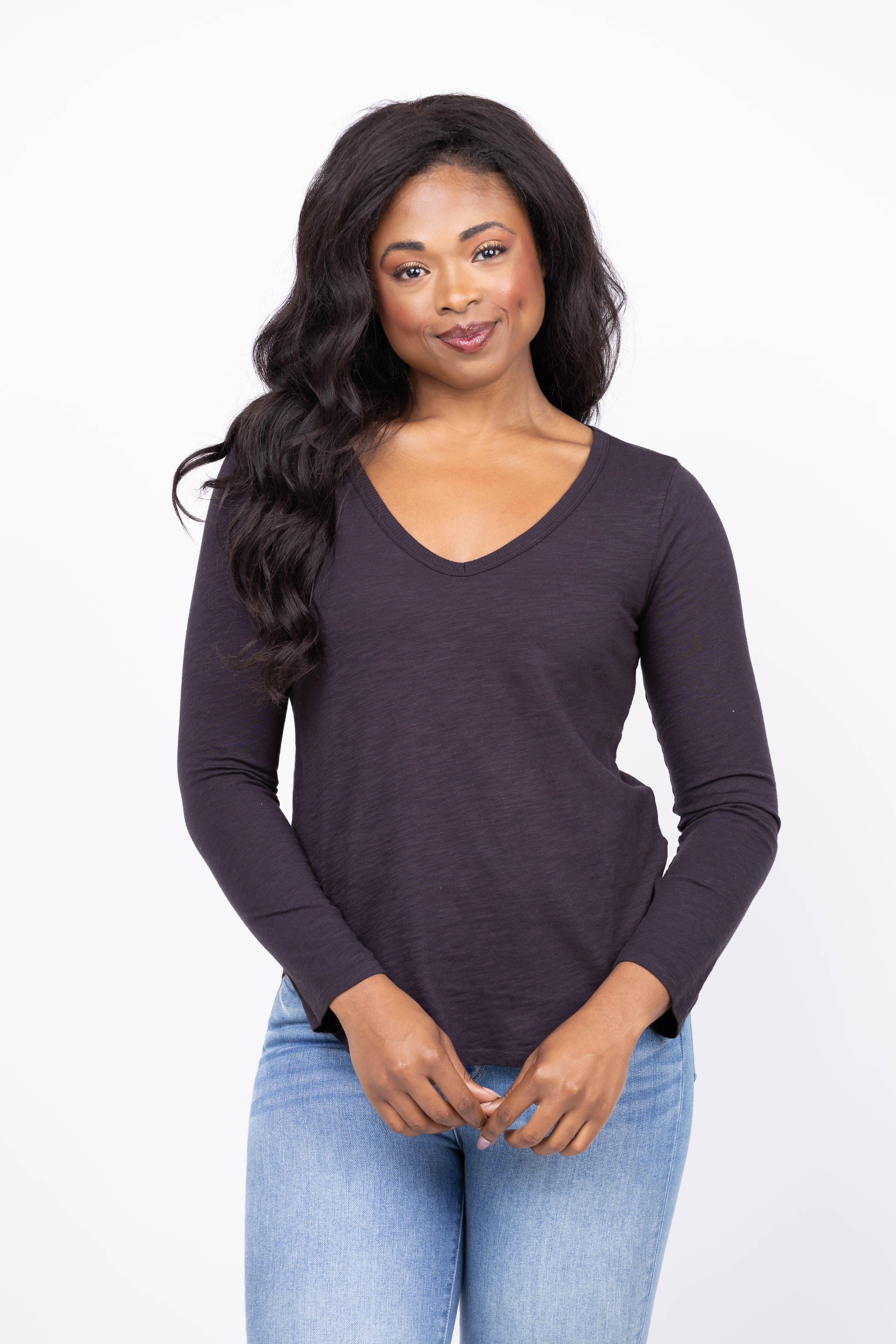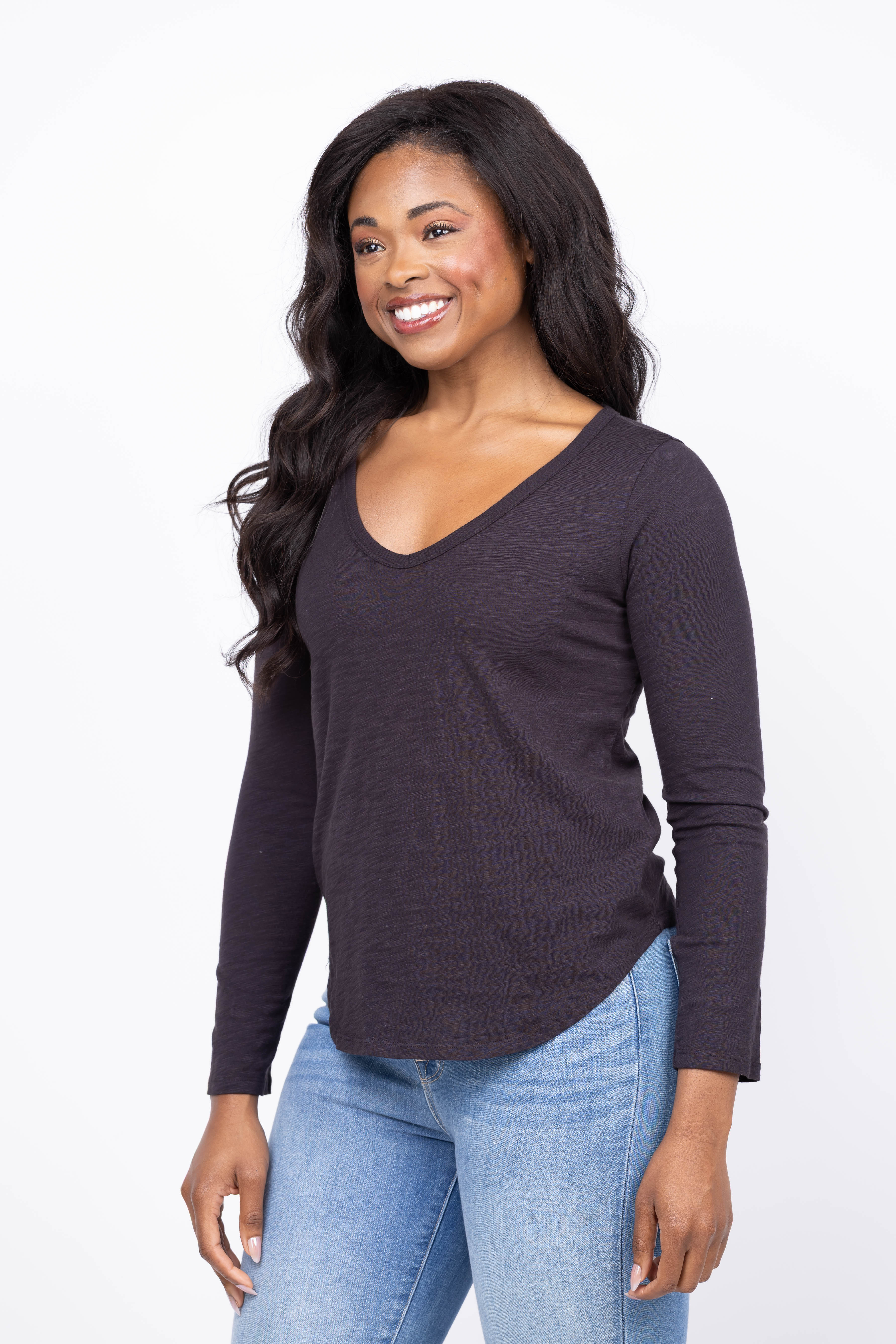 Dylan Long Sleeve Deep V-Tee in Ranch Black