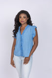 Show off your playful style in this summer-ready Dylan Ruffle Sleeve Top! Its perfect blue hue will have you feeling summery every time you wear it, while the delicate ruffle detailing adds a touch of whimsy to your look. Pair with white jeans or shorts for a casual but chic ensemble. Ready to take your style to the next level? Get the Dylan Ruffle Sleeve Top today!