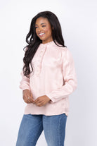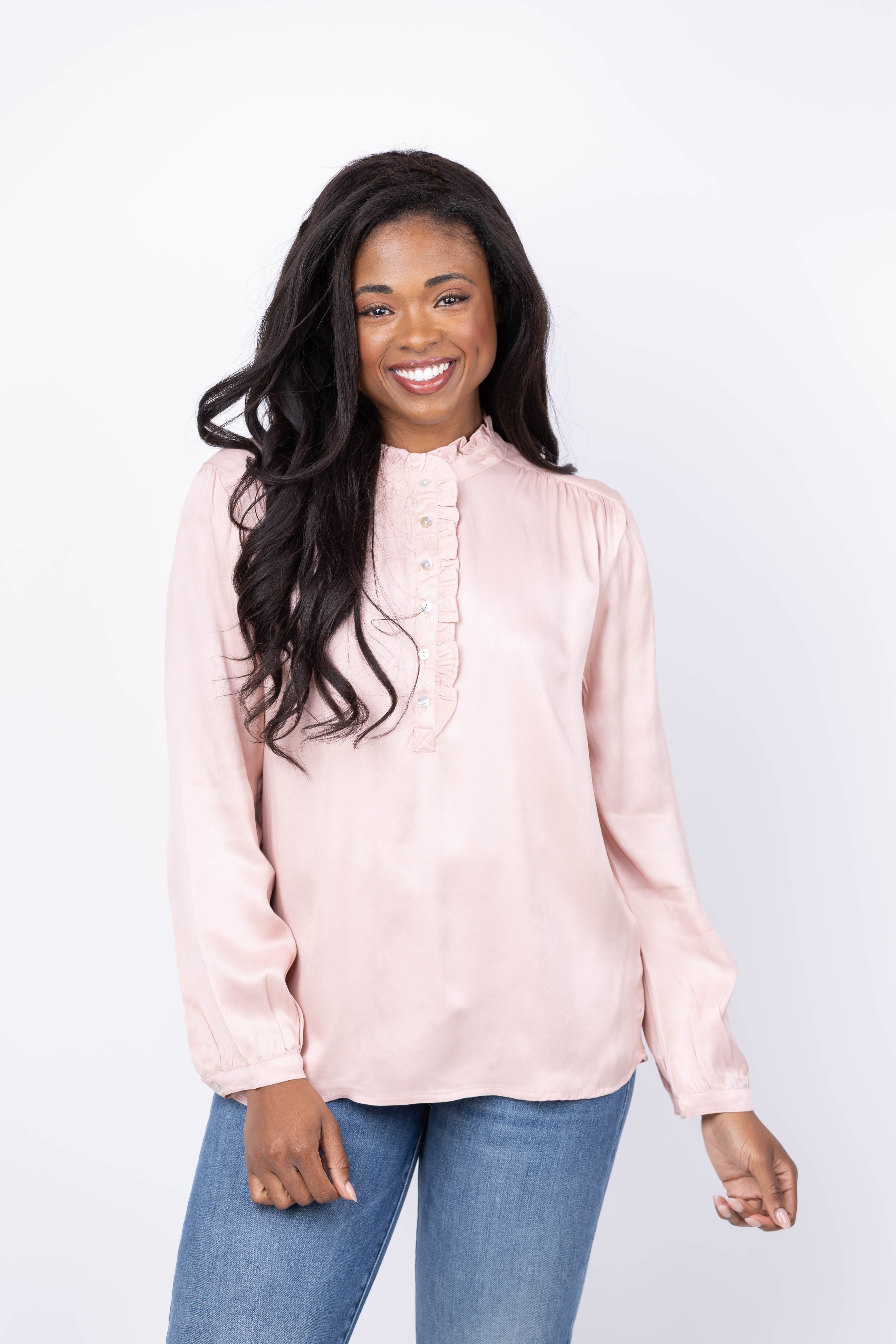 Unleash your inner fashionista with the beautiful Dylan Ruffle-Up Blouse in Blush. This stunning blouse features delicate ruffle detailing that adds a touch of femininity to any outfit. Made from high-quality material, it offers both comfort and style. Elevate your wardrobe with this must-have piece!