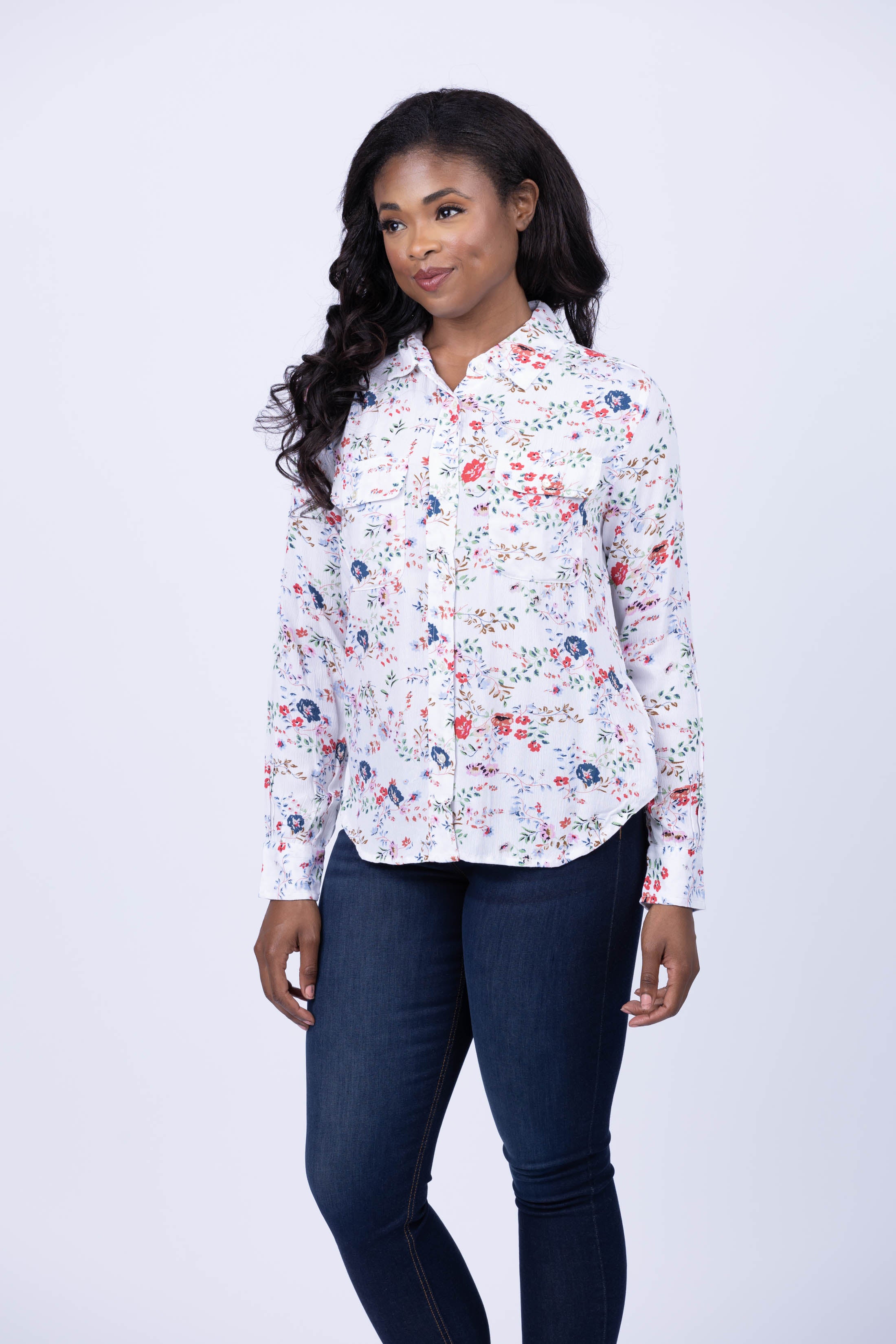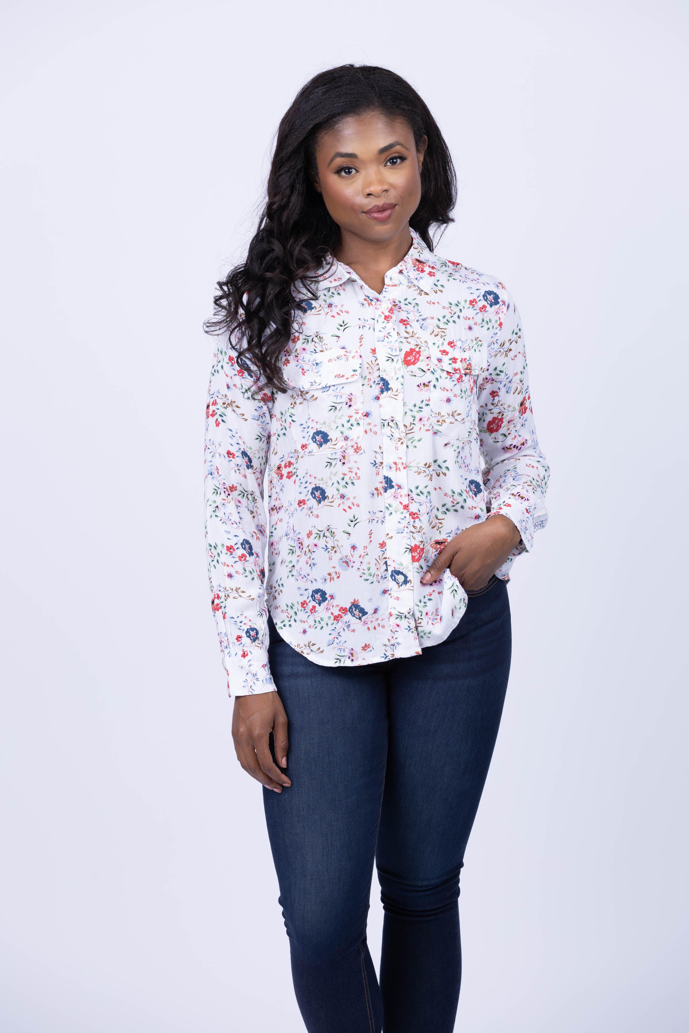 Look stylish and chic in the Dylan Tessa Floral Blouse! Crafted with a beautiful floral print, this blouse is perfect for pairing with jeans, booties, or cute sneakers for any occasion. Make a statement and show off your confidence with this effortlessly glamorous look!