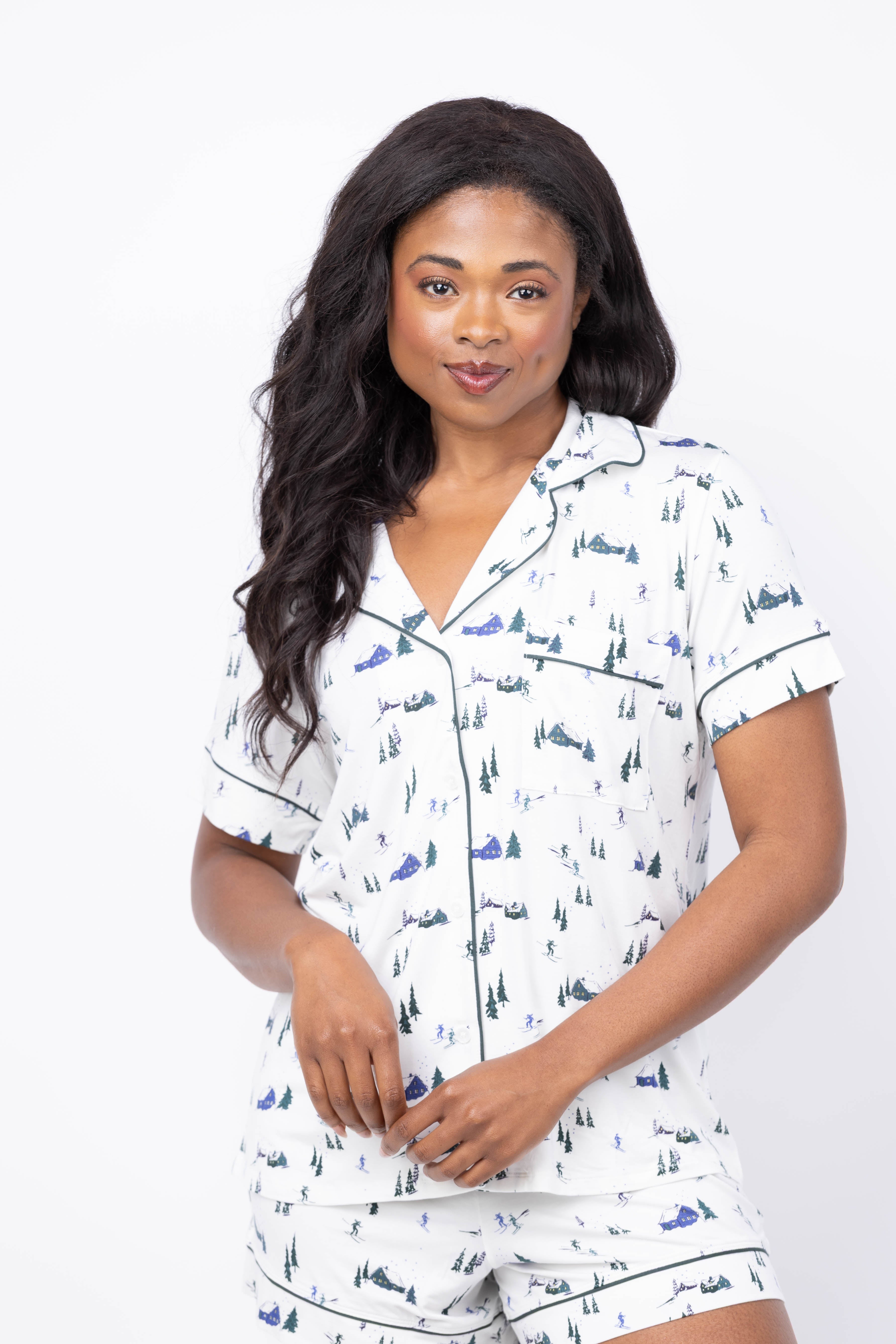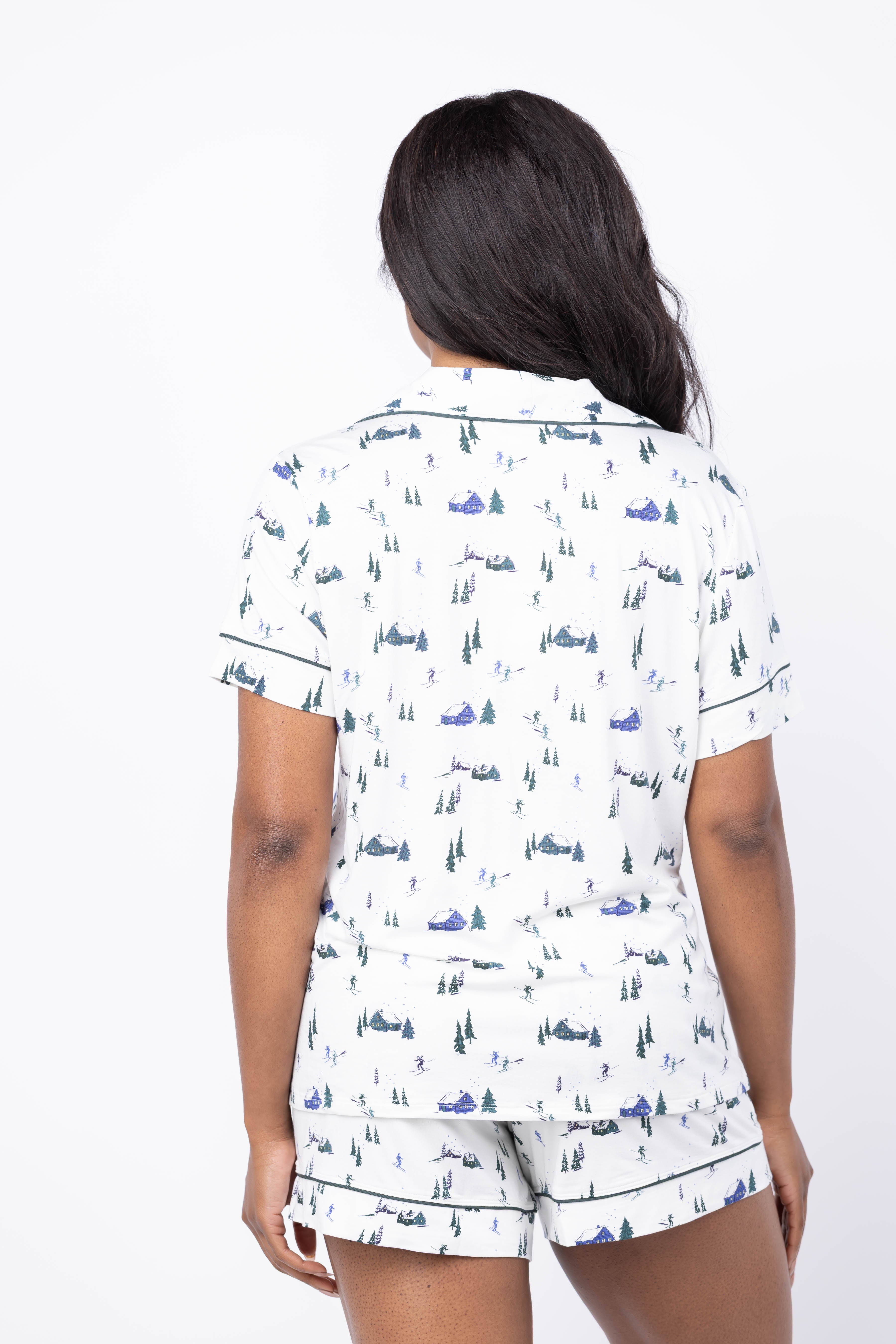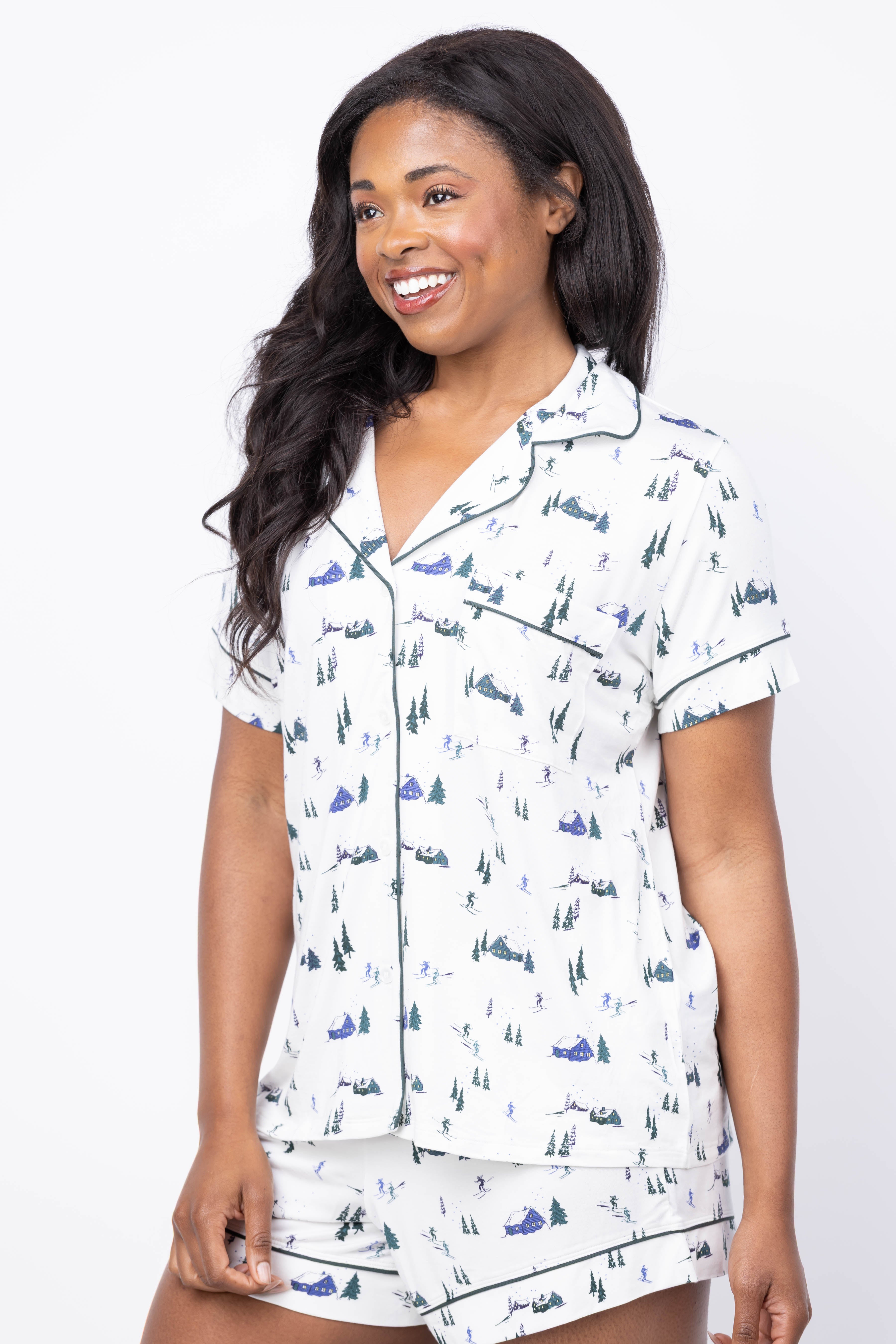 Eberjey Gisele Printed Relaxed Short Pj St in Ski Chalet Ivory/Pine