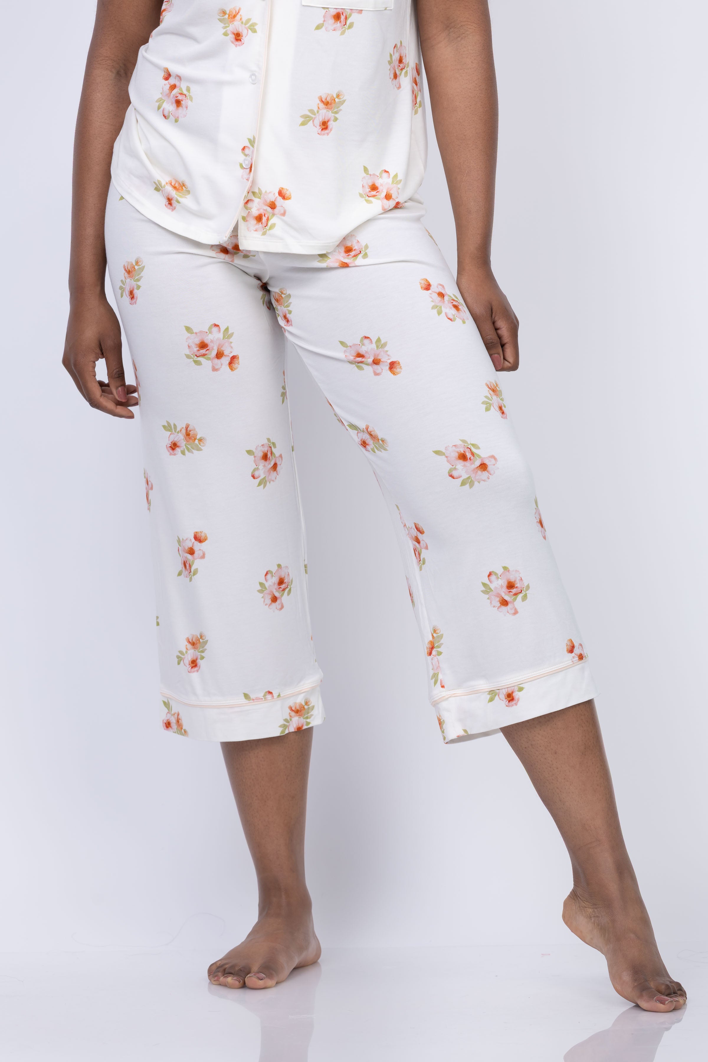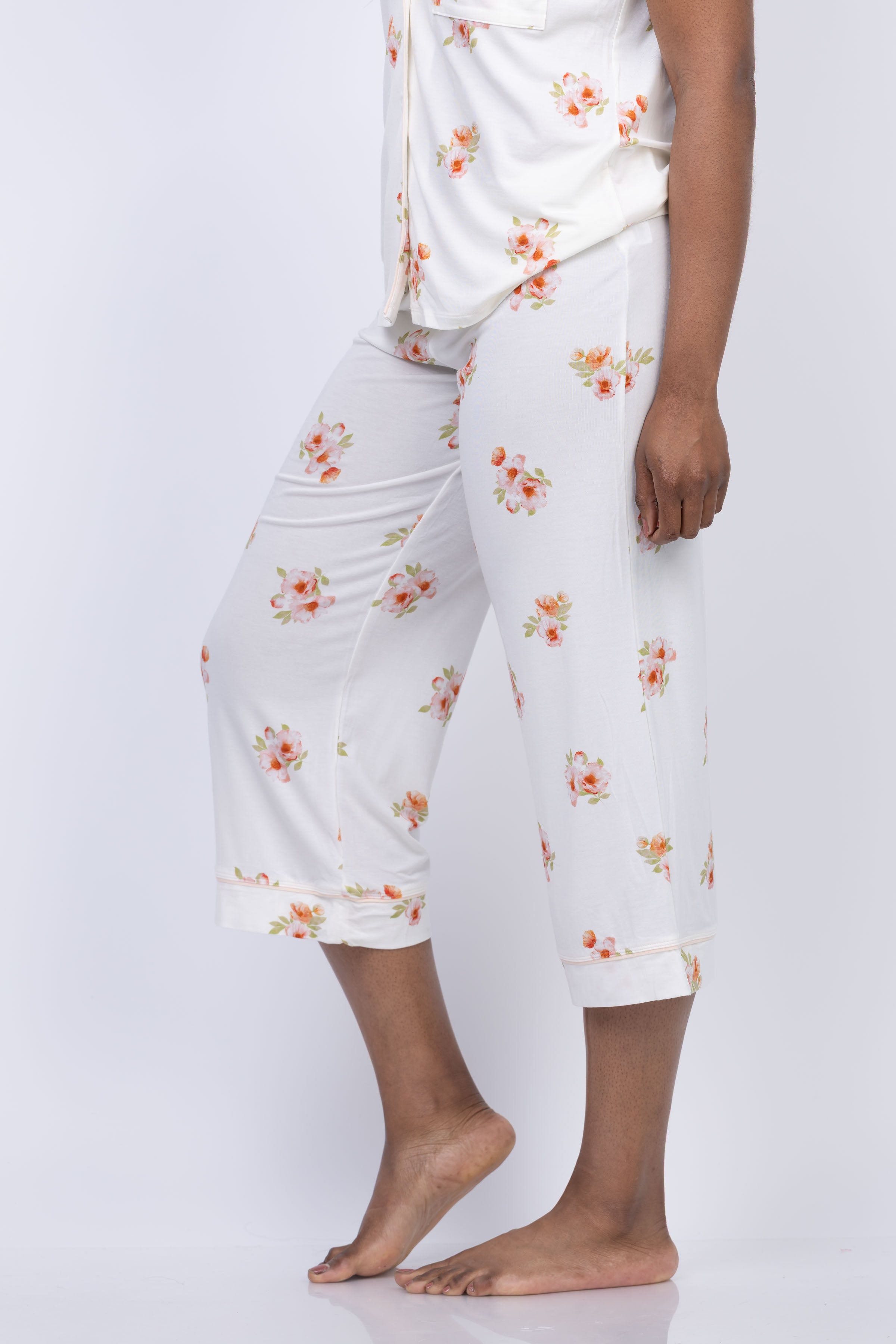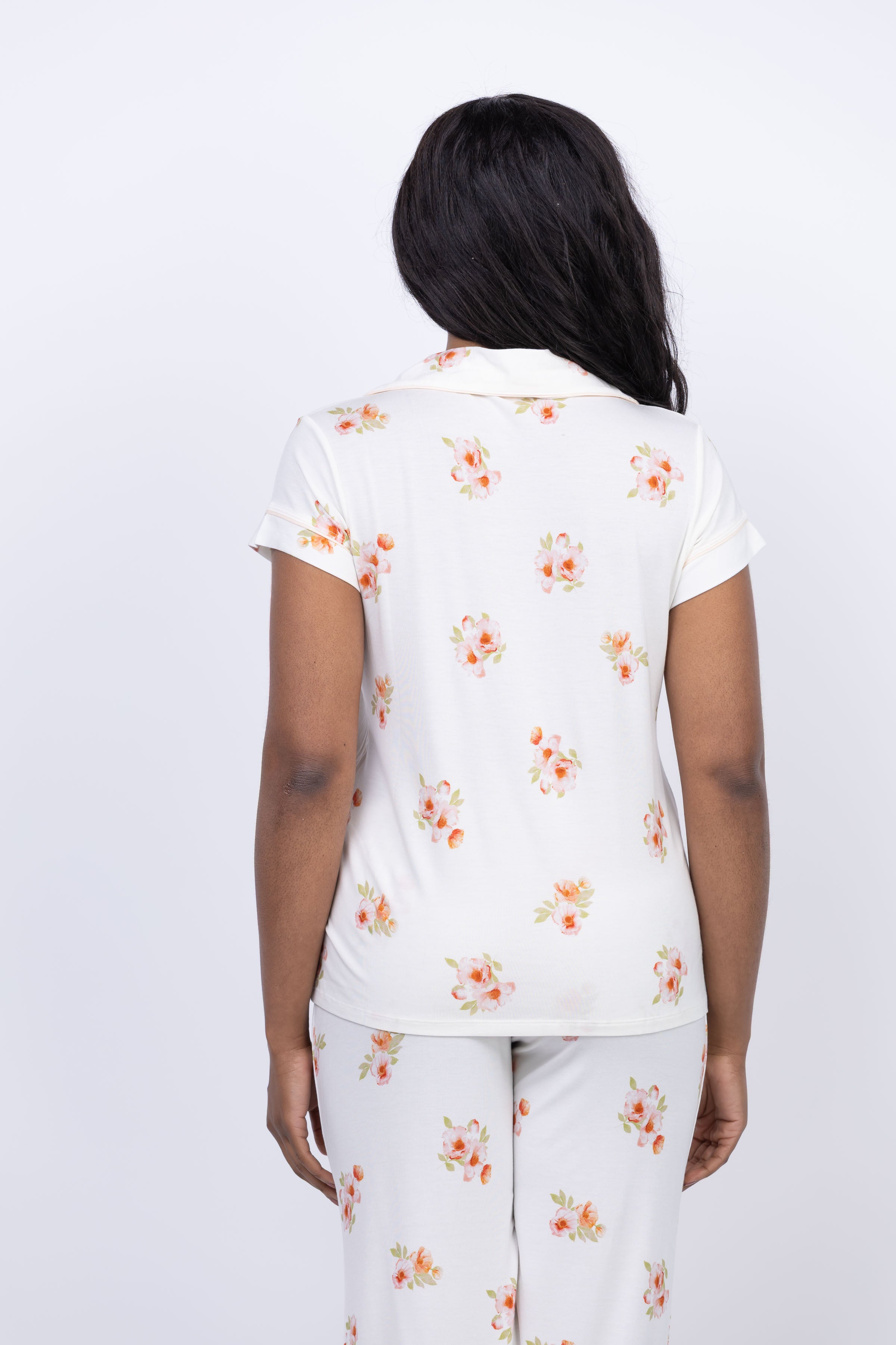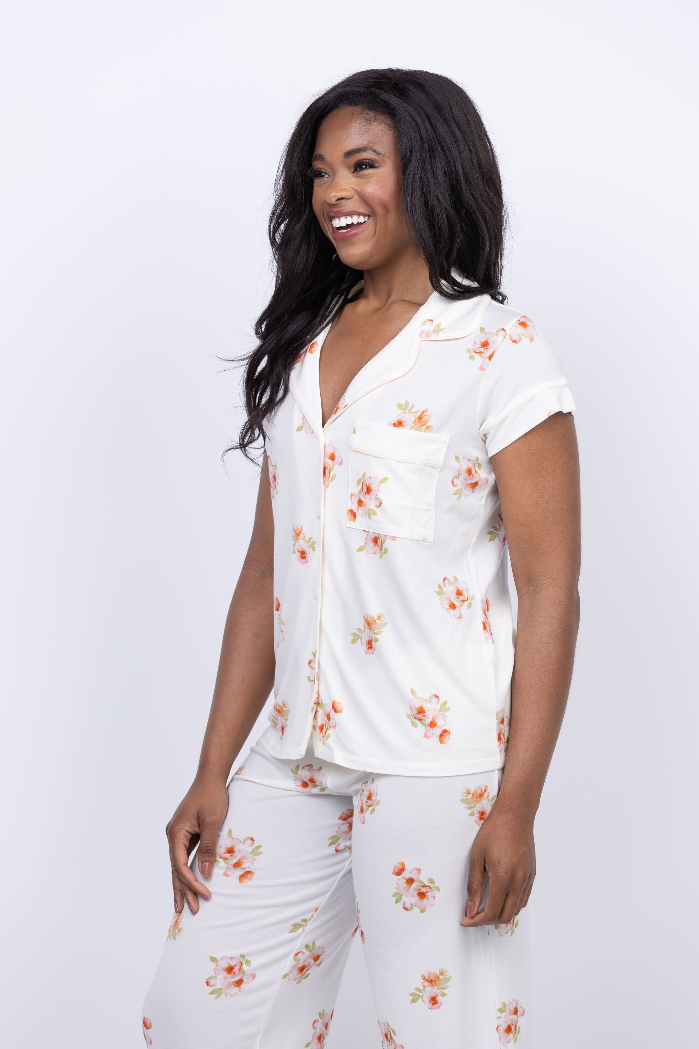 Eberjey Gisele Printed PJ Set in Floral Bloom Ivy/Vanilla Cream