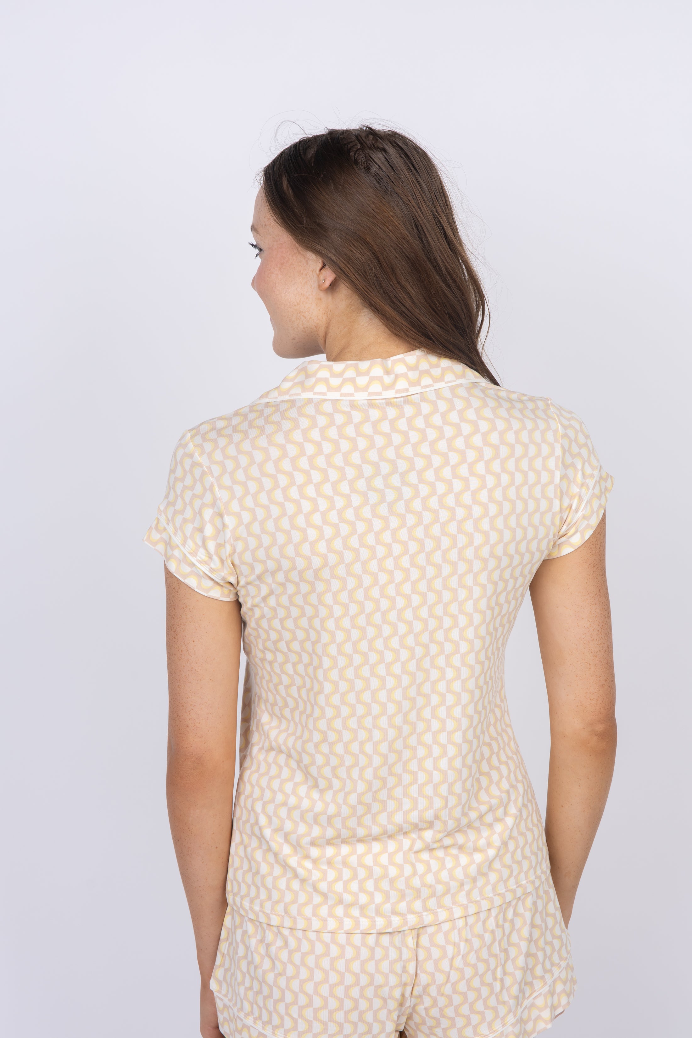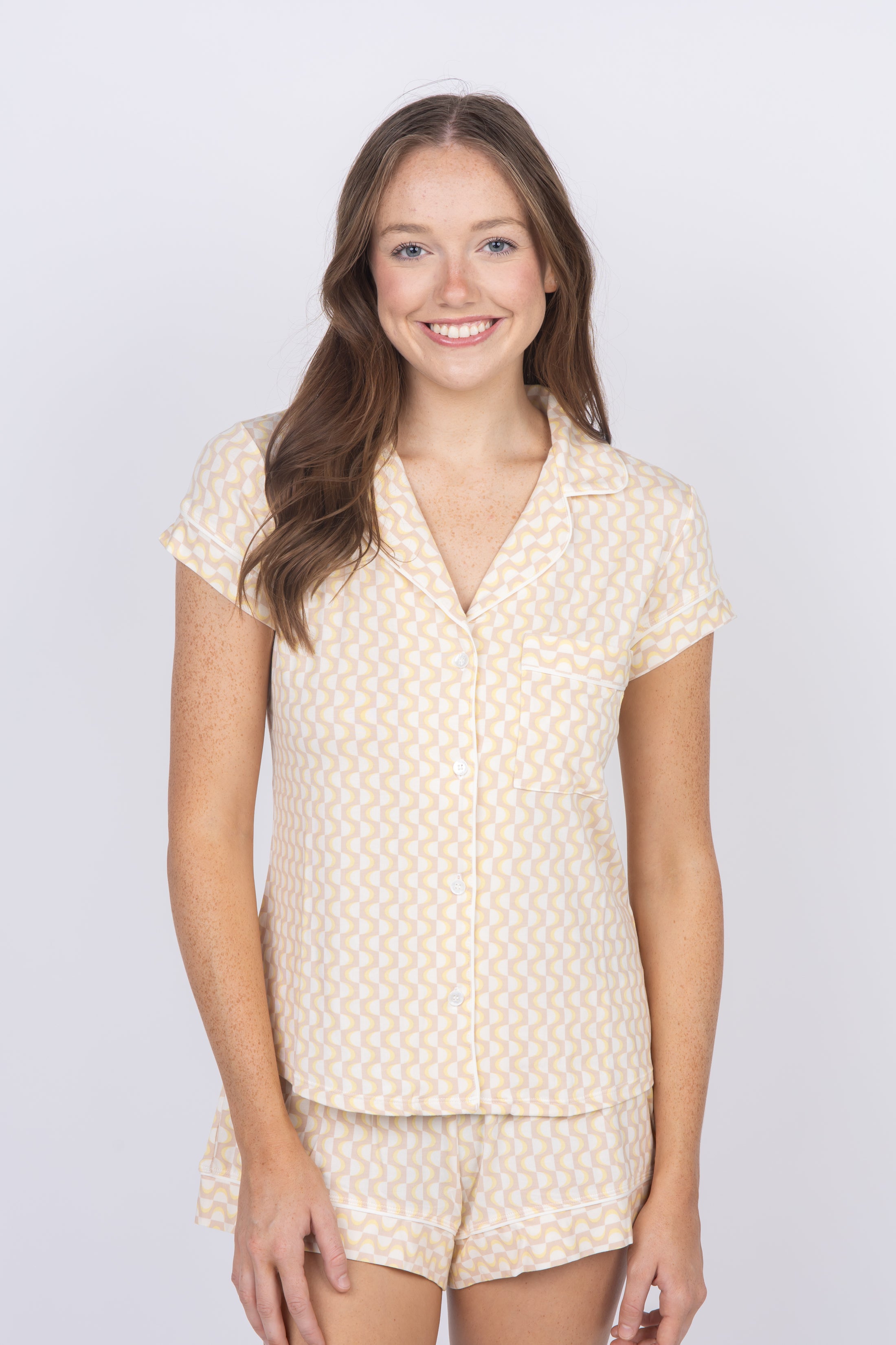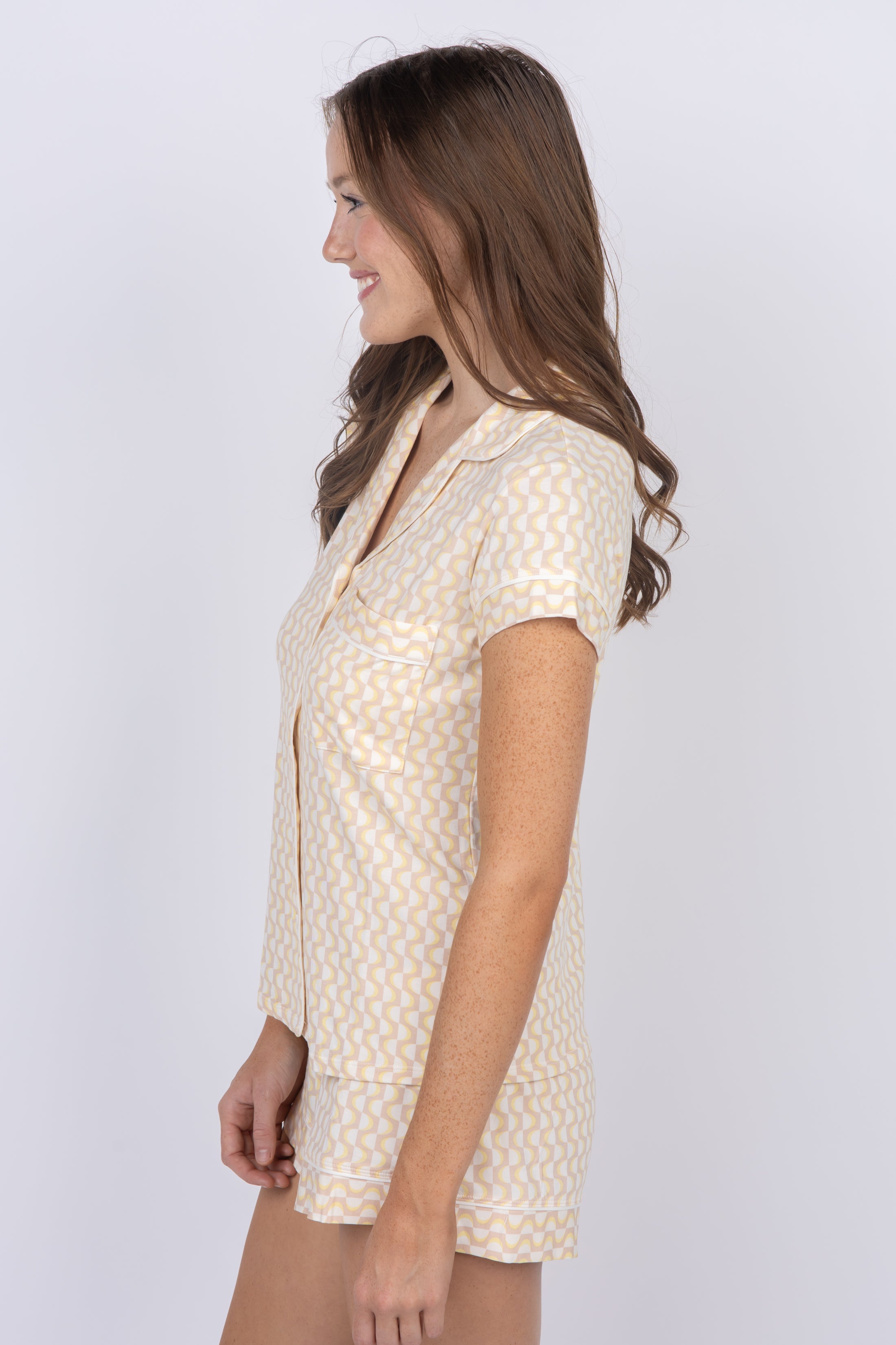 Eberjey Gisele Printed Tencel Short PJs Set in Retro Geo Oat