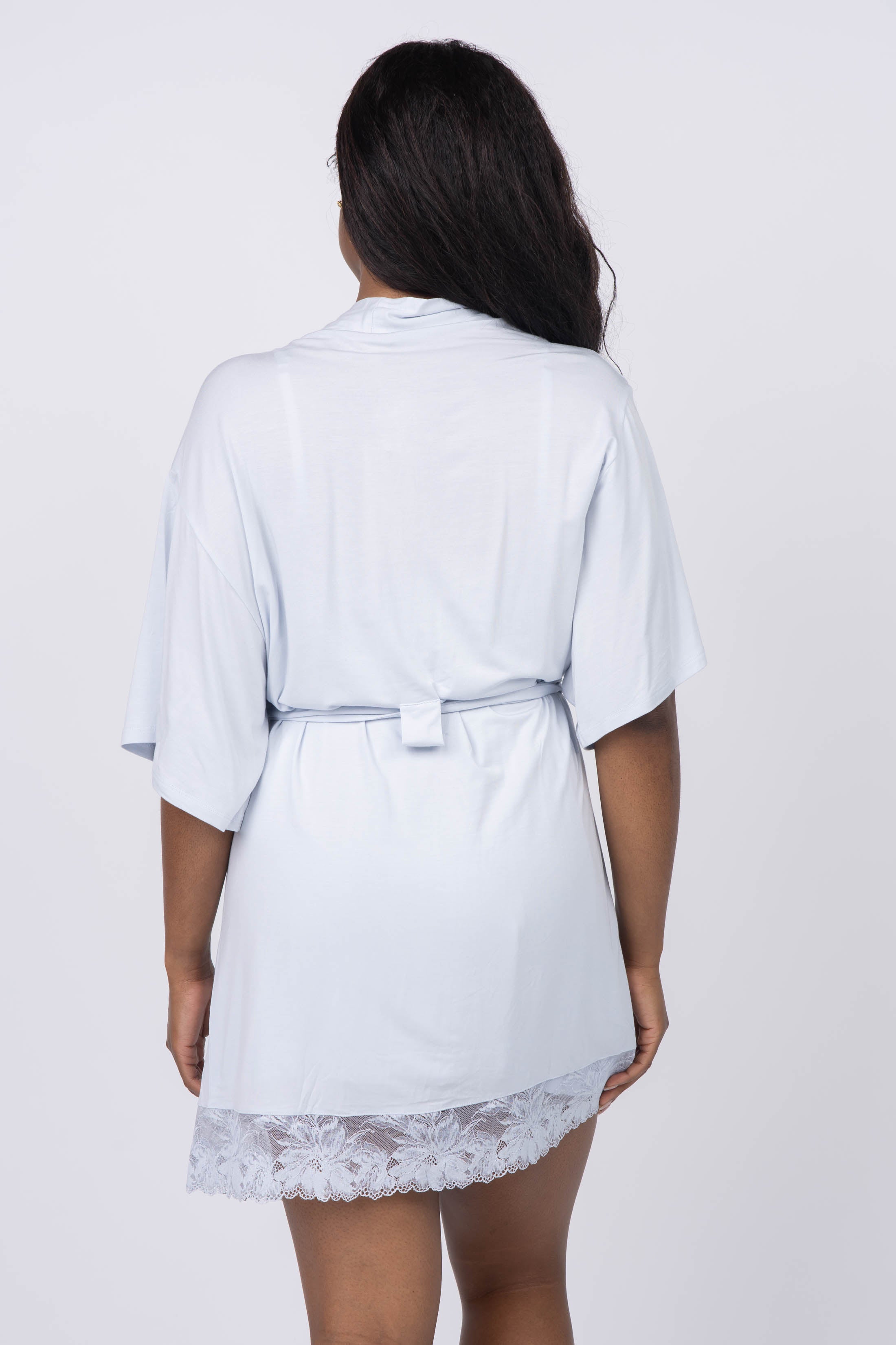 - Lace trim short robe