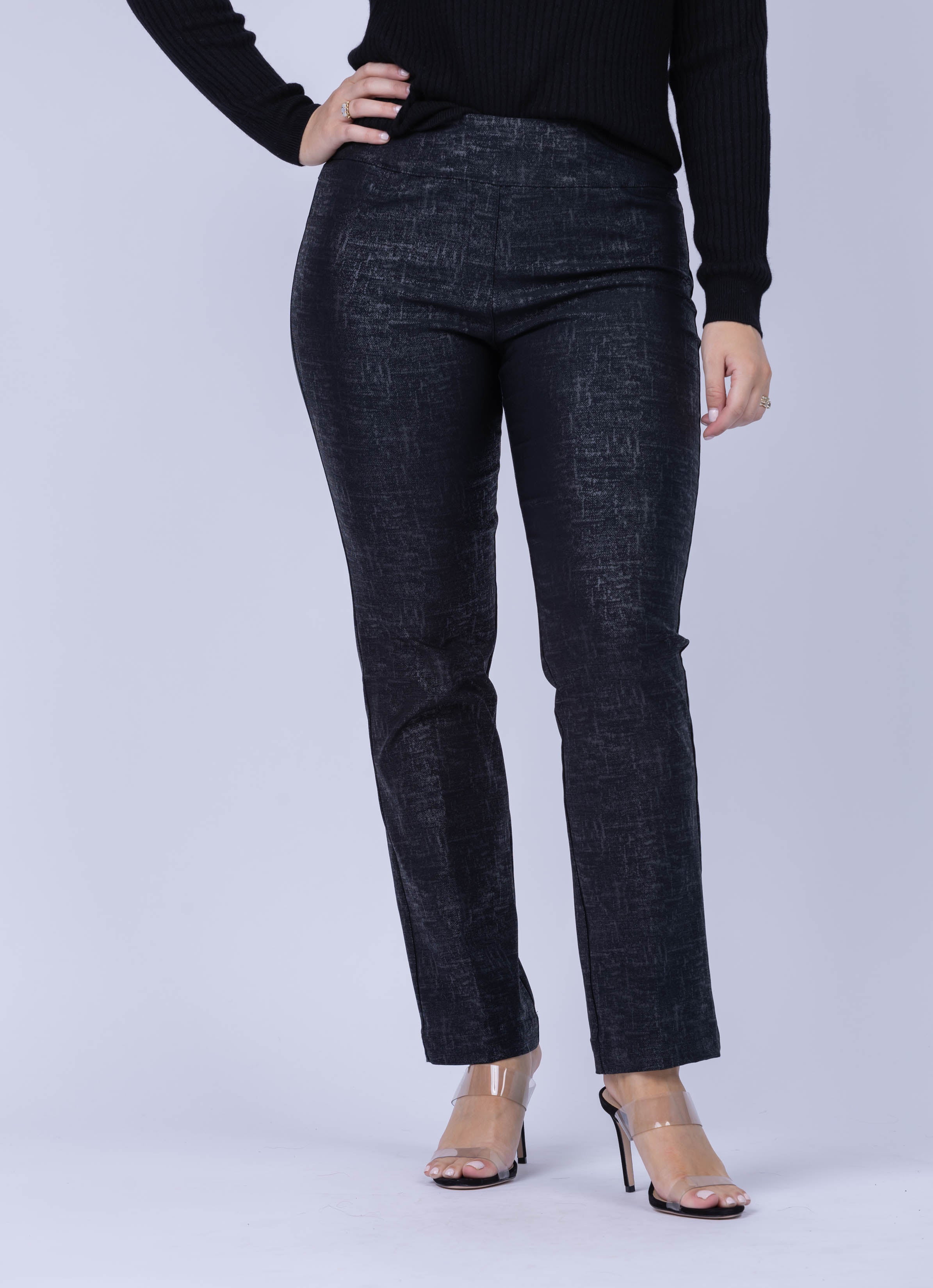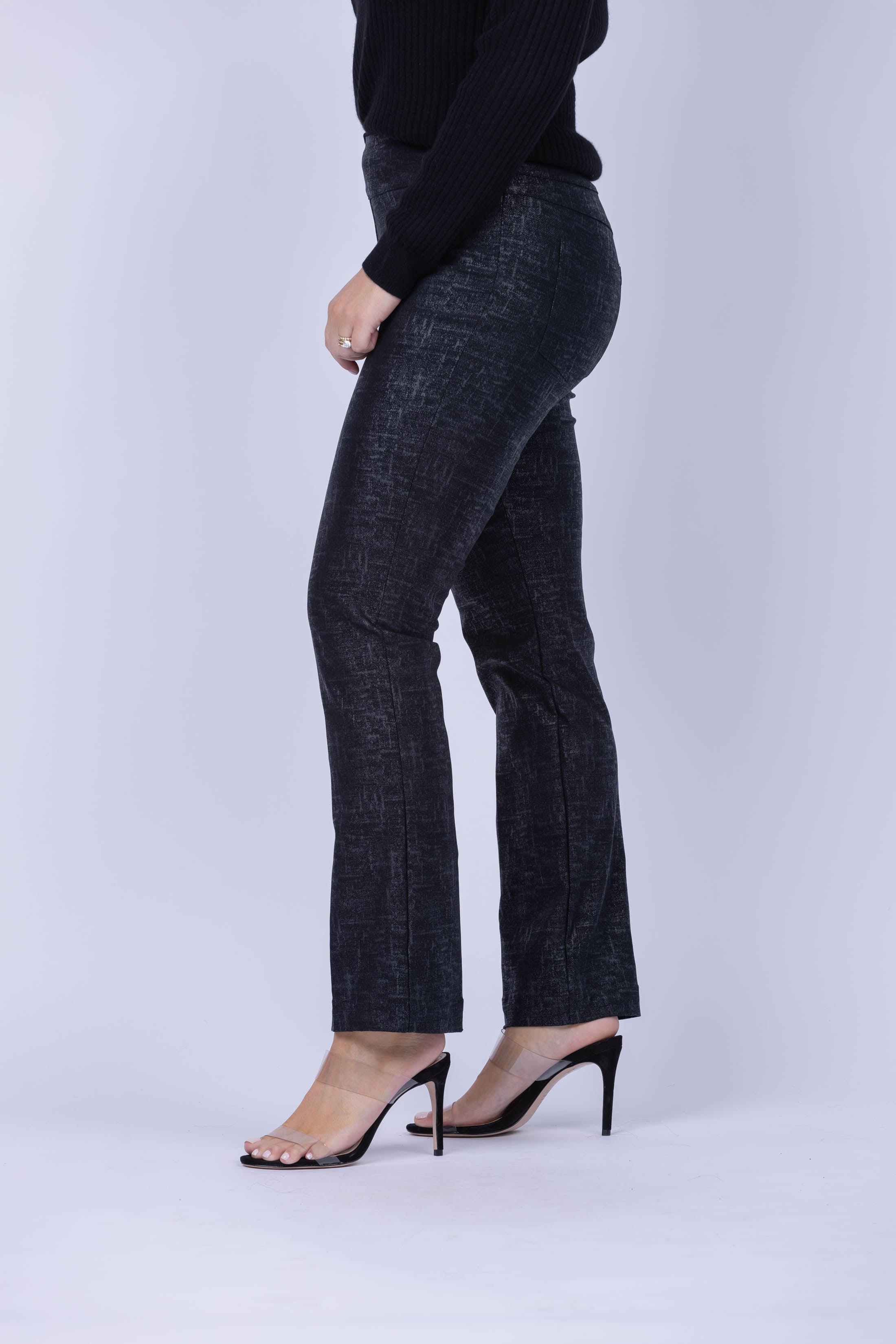 Elliott's black pant brings a modern twist to a classic with its soft grey crosshatch sheen. You can trust that it won't sacrifice the coveted pull-on styling, straight leg, and flat, flattering waistband you love. Special details like the two jeans-style pockets in back amp up the fun - Vroom vroom!