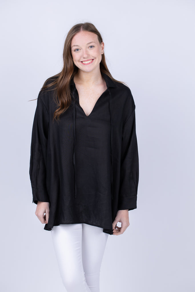 Look effortlessly chic in Enza Costa's linen caftan. This stylish black dress looks beautiful worn as a beach cover-up, tunic, or a mini dress for a more formal occasion, making it perfect for any occasion. With breathable fabric, flattering silhouette and relaxed fit, this caftan is as comfortable as it is stylish.
