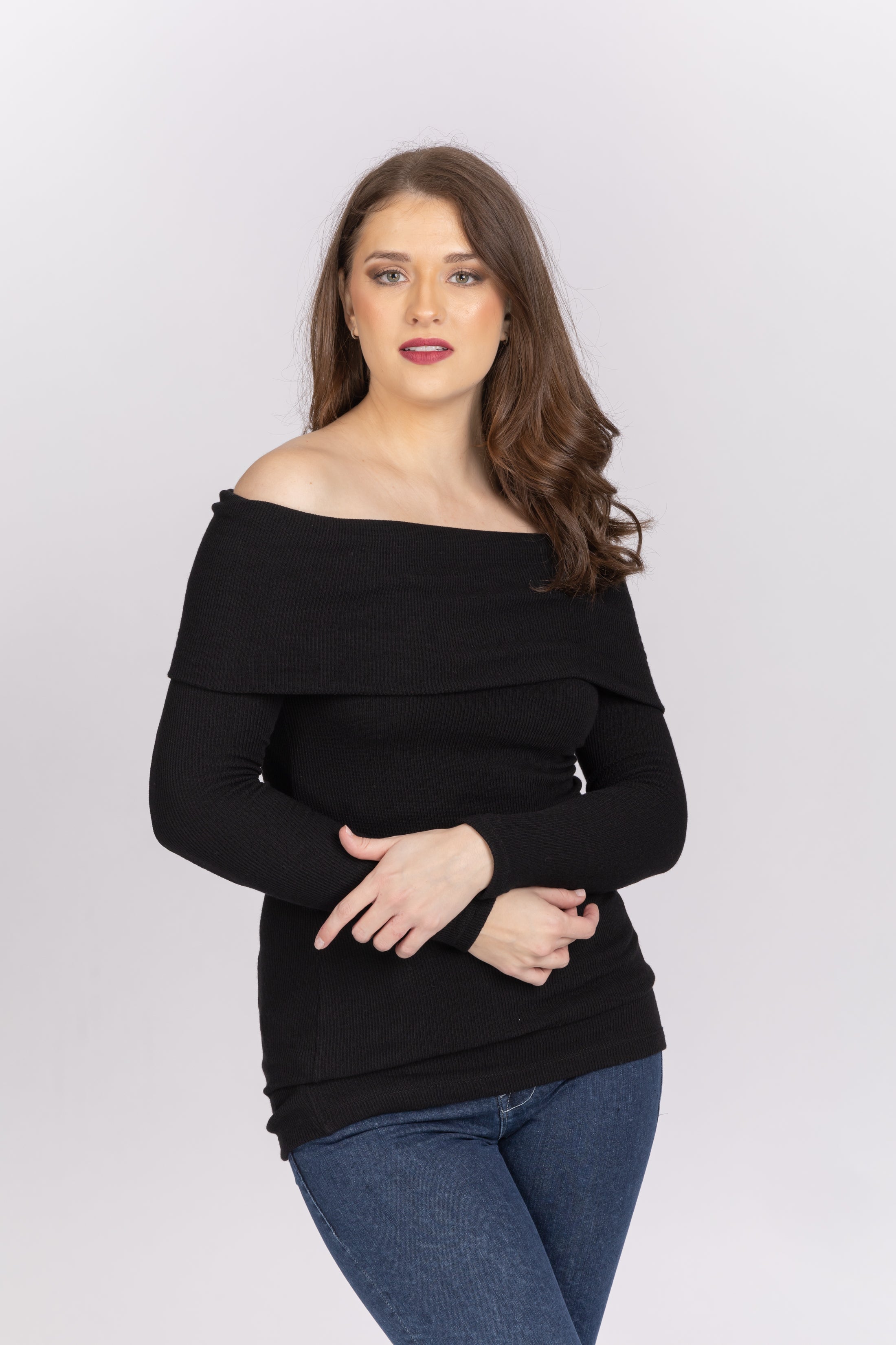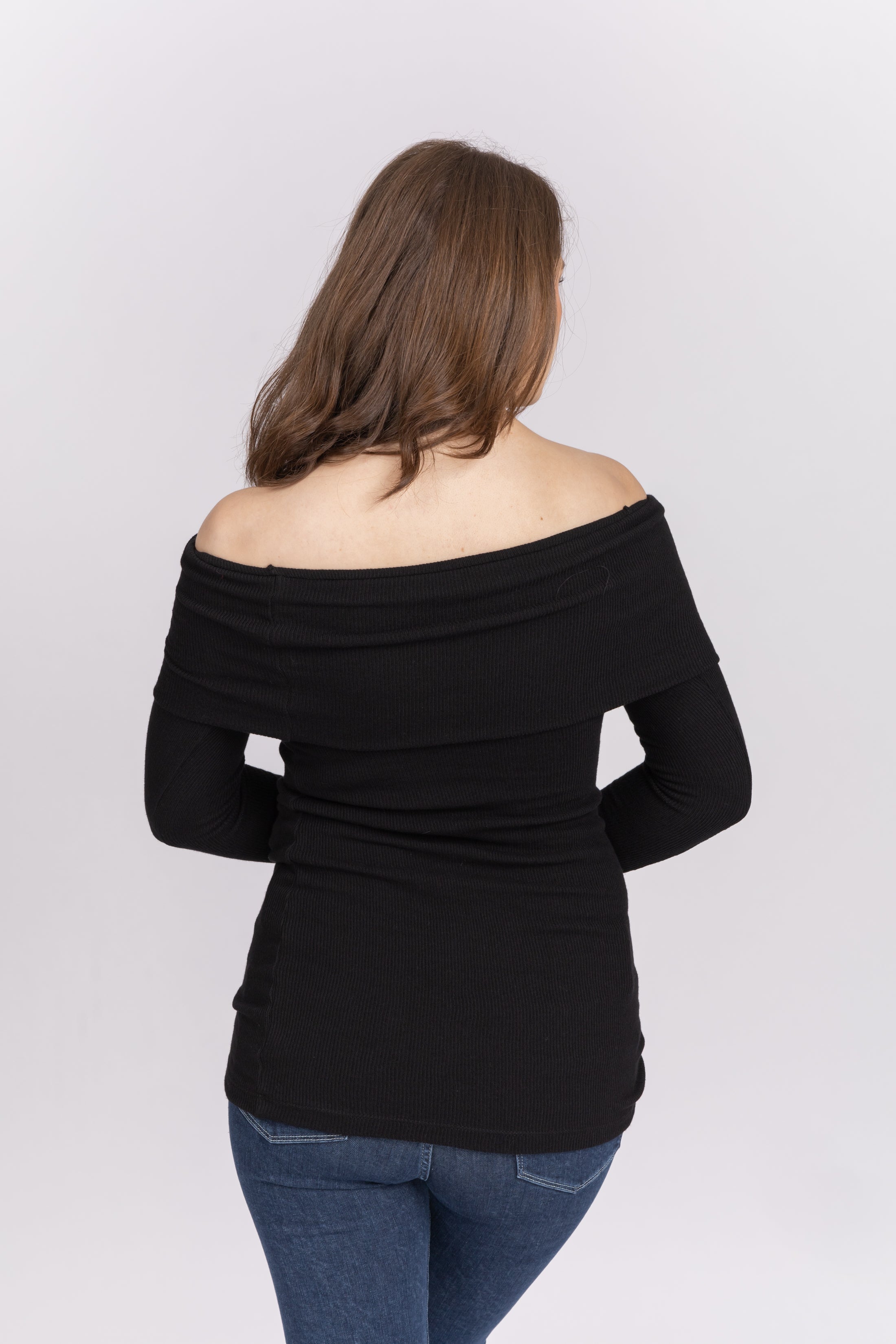 Enza Costa Off The Shoulder Long Sleeve Rib Knit Top in Black