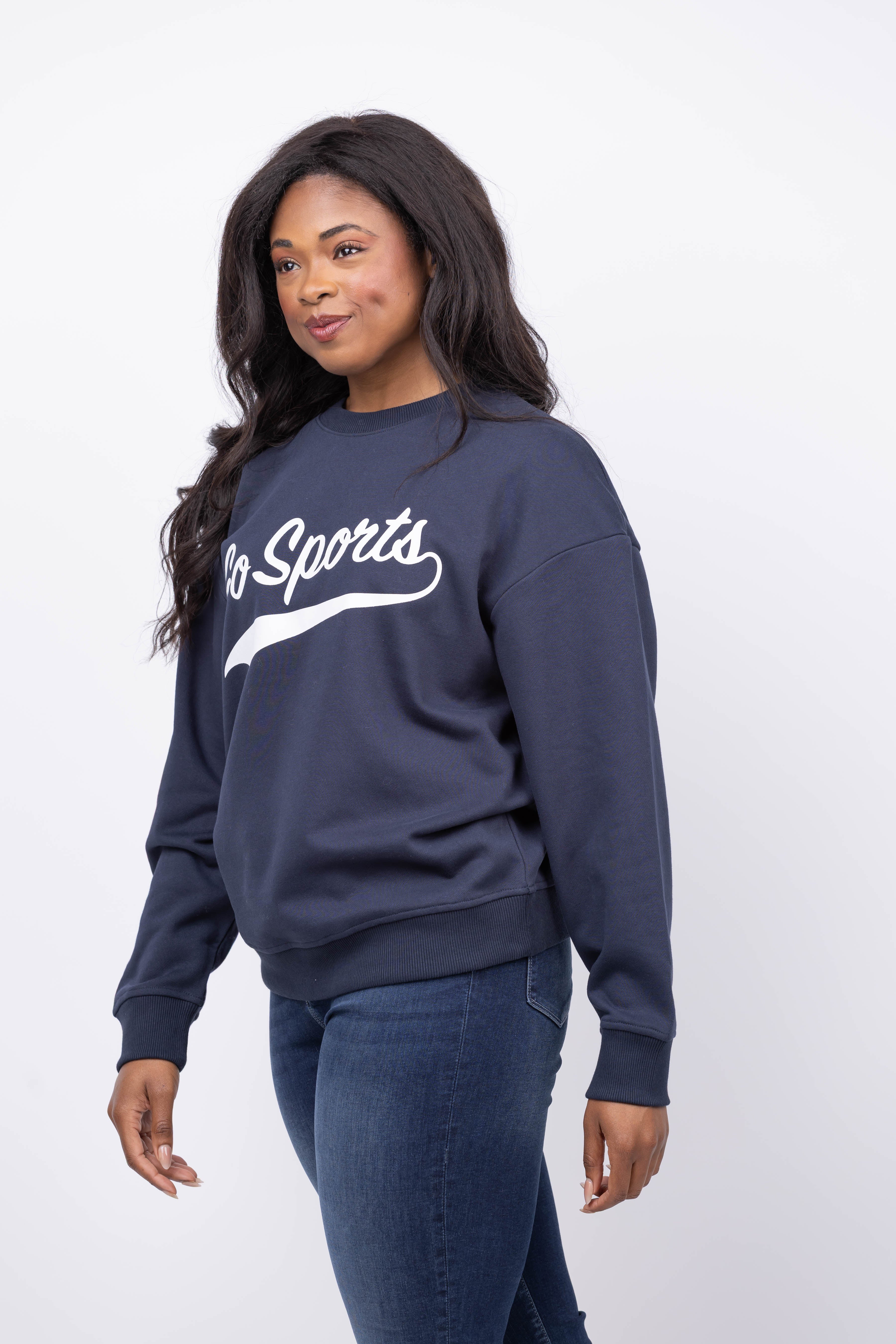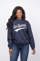 Embrace comfort and style with the Favorite Daughter Go Sports Sweatshirt in Navy. Crafted from a cotton blend that softens and shrinks for the perfect fit, its oversized design features a relaxed fit and drop shoulders for effortless, sporty vibes. This retro-inspired sweatshirt adds a timeless touch to any outfit, making it a must-have for those who want to show casual confidence without needing a favorite team.