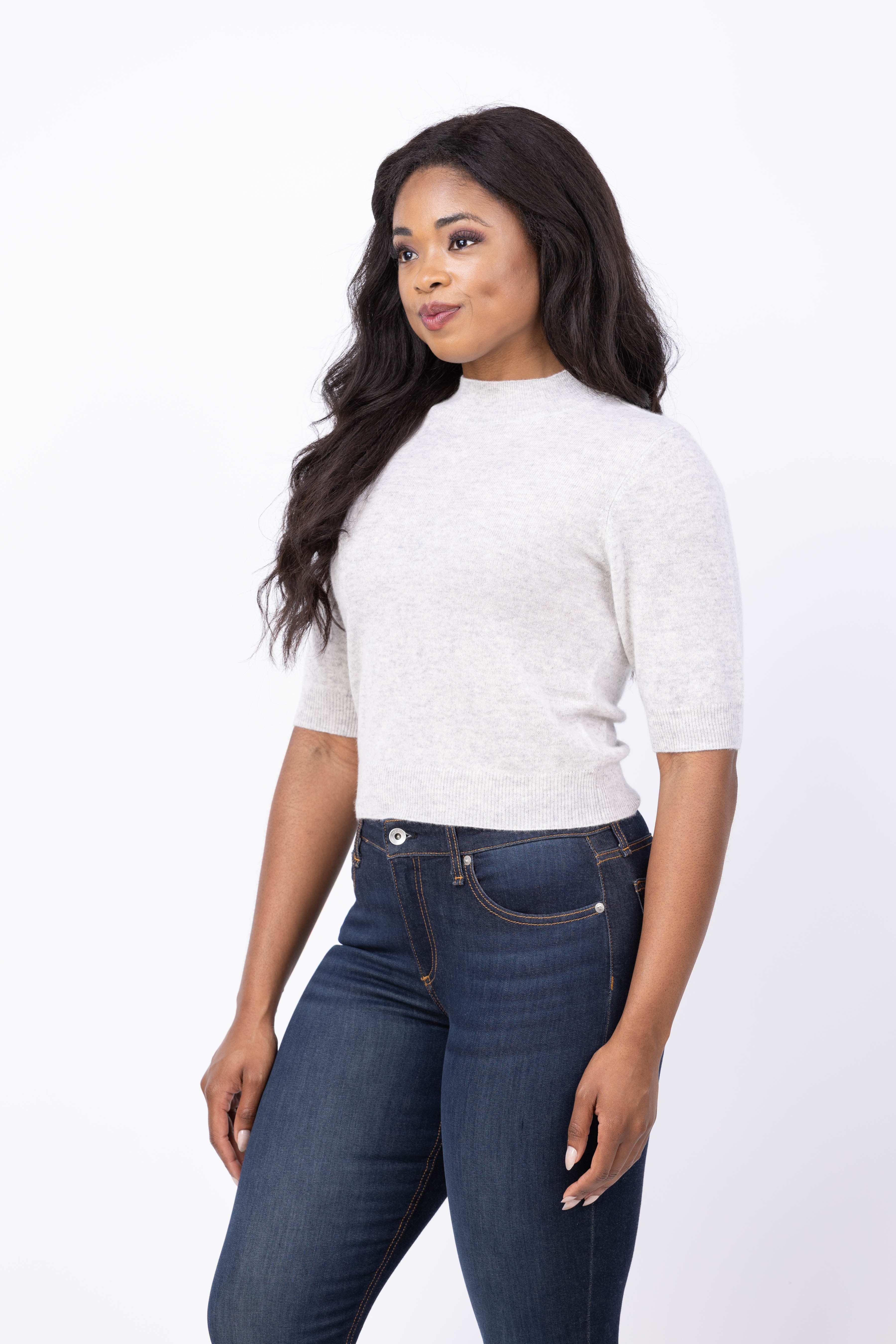 The Bonnie Top in Light Heather Grey brings timeless elegance to your wardrobe with its luxurious cashmere fabric. Designed with a refined fit and half-length sleeves, this sweater offers effortless style and comfort through three seasons. Ribbed hems add subtle detail, making it the versatile piece you’ll reach for again and again. Elevate your everyday look with this essential cashmere top.