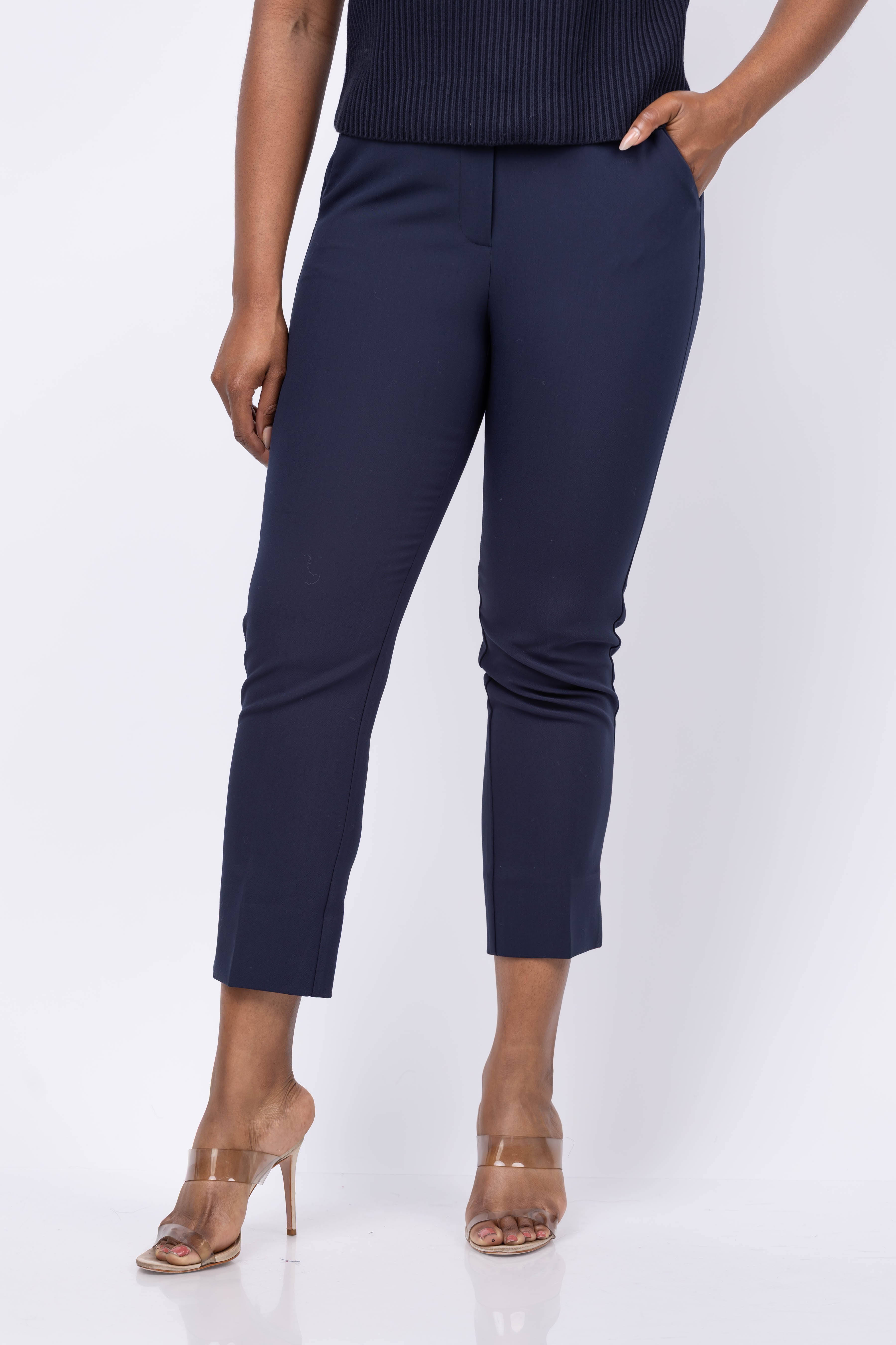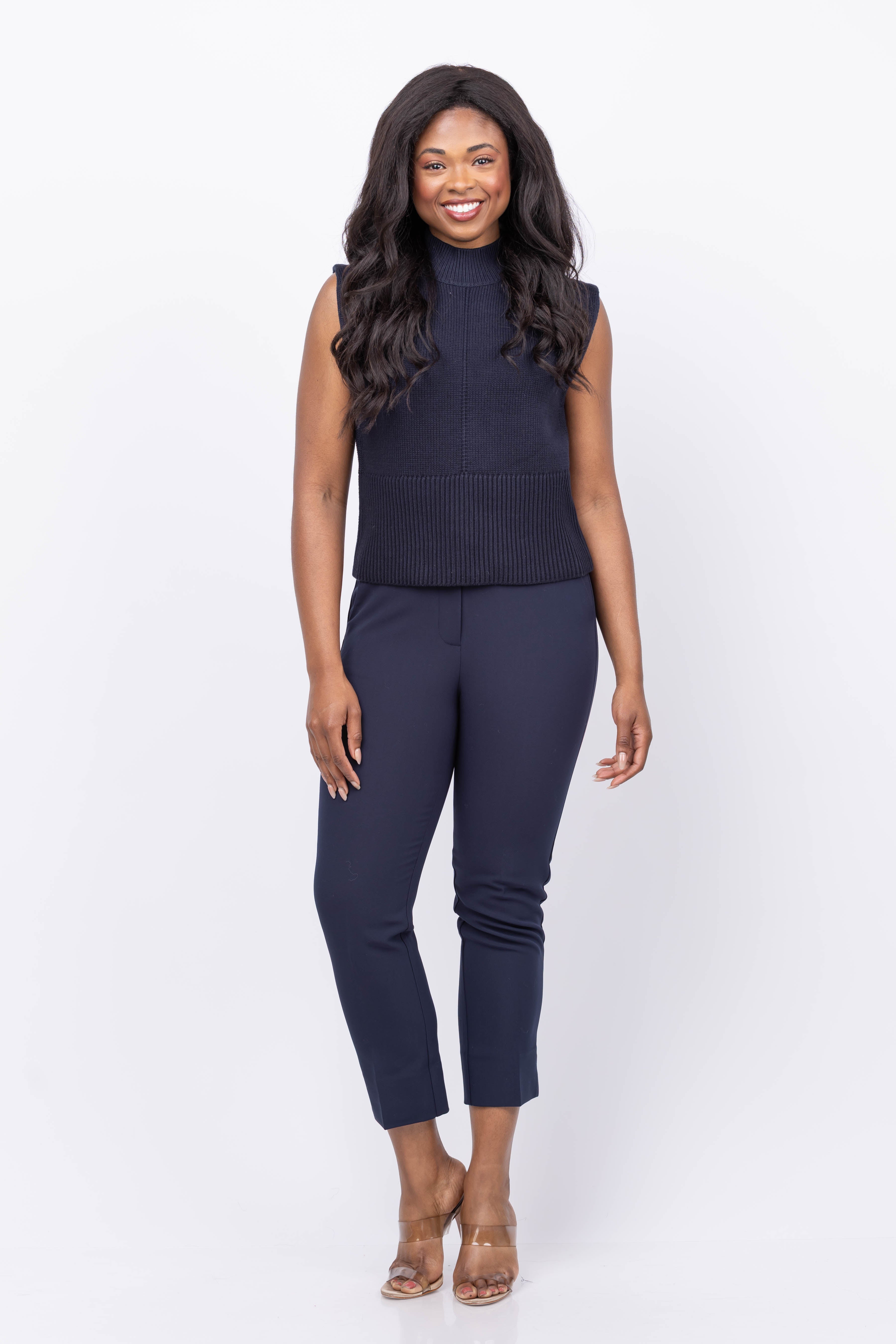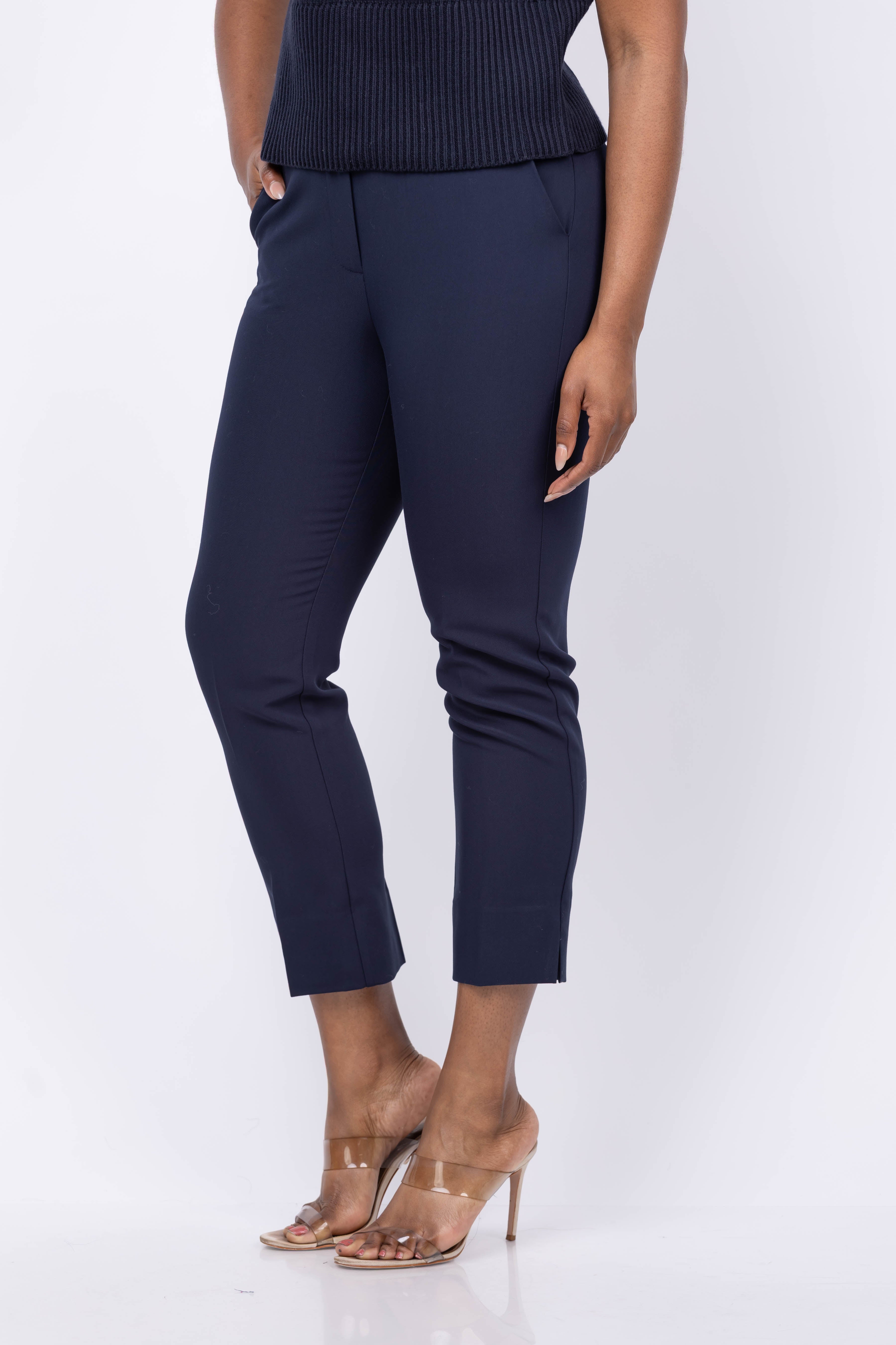 The Favorite Daughter Favorite Cigarette Pant in Navy is a timeless essential crafted from structured suiting fabric for a polished look. Featuring an 11.5" high rise, tailored slim fit, and straight leg with a cropped 27" inseam, these pants offer both style and comfort. Perfect for elevating your wardrobe, they pair effortlessly with both casual and formal outfits.
