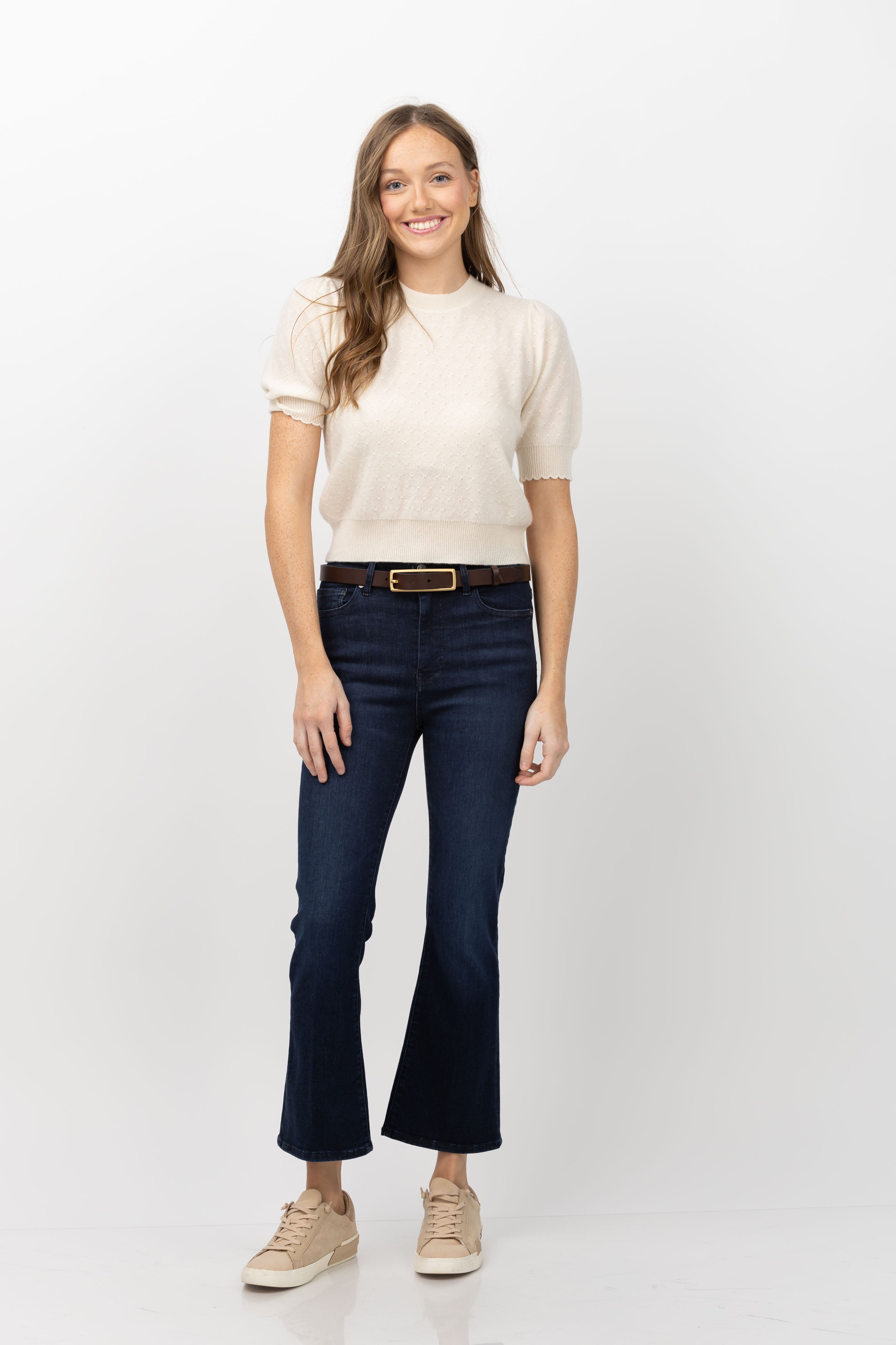 Flaunt your best assets with our Frame Le Crop Mini Boot in Dante! Our bestselling style features a high rise, form-fitting hips, and a subtle bootcut for a flattering silhouette. The cropped length and cascading hem perfectly showcases your shoes, while the super stretch denim ensures all-day comfort. A must-have addition to any wardrobe!