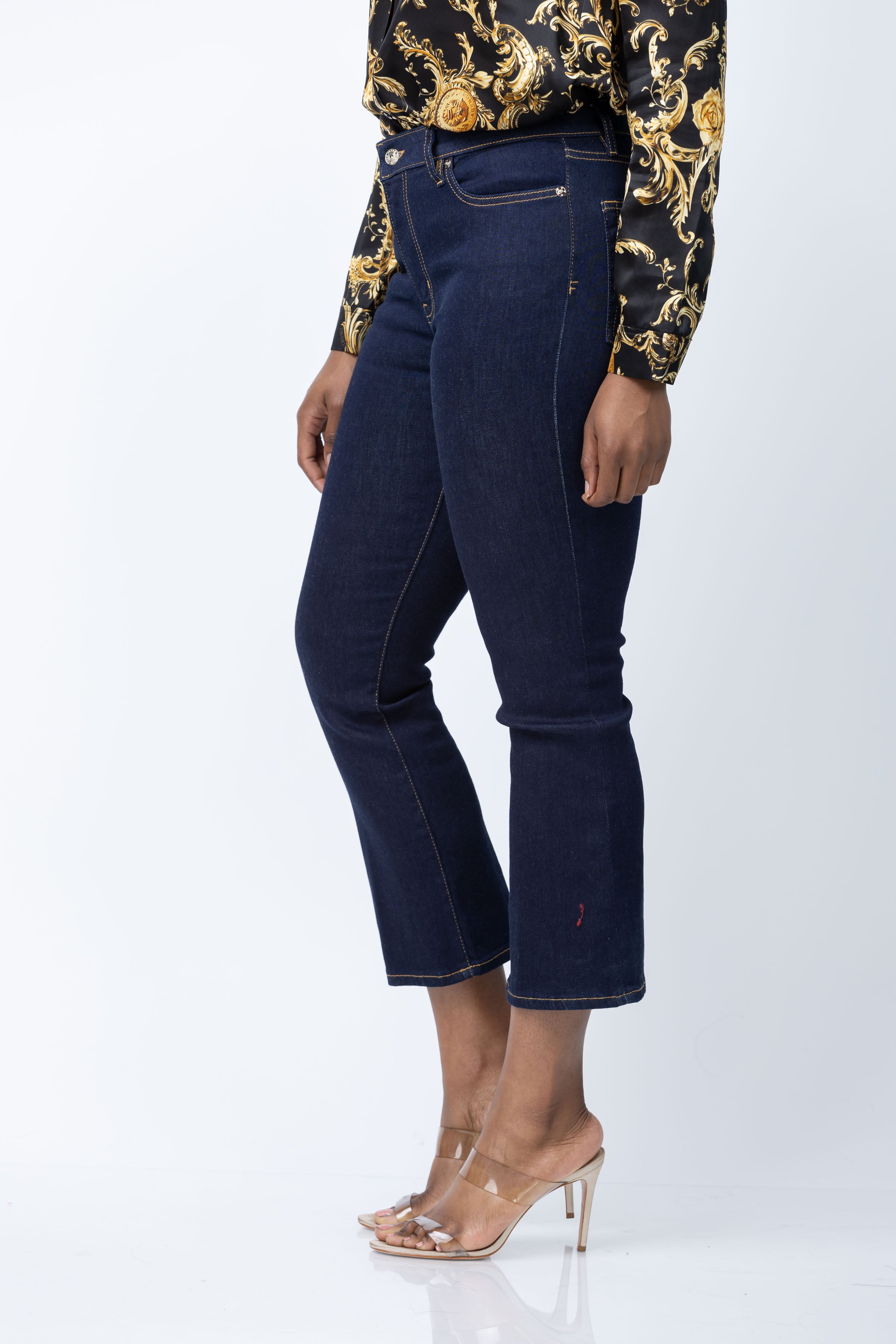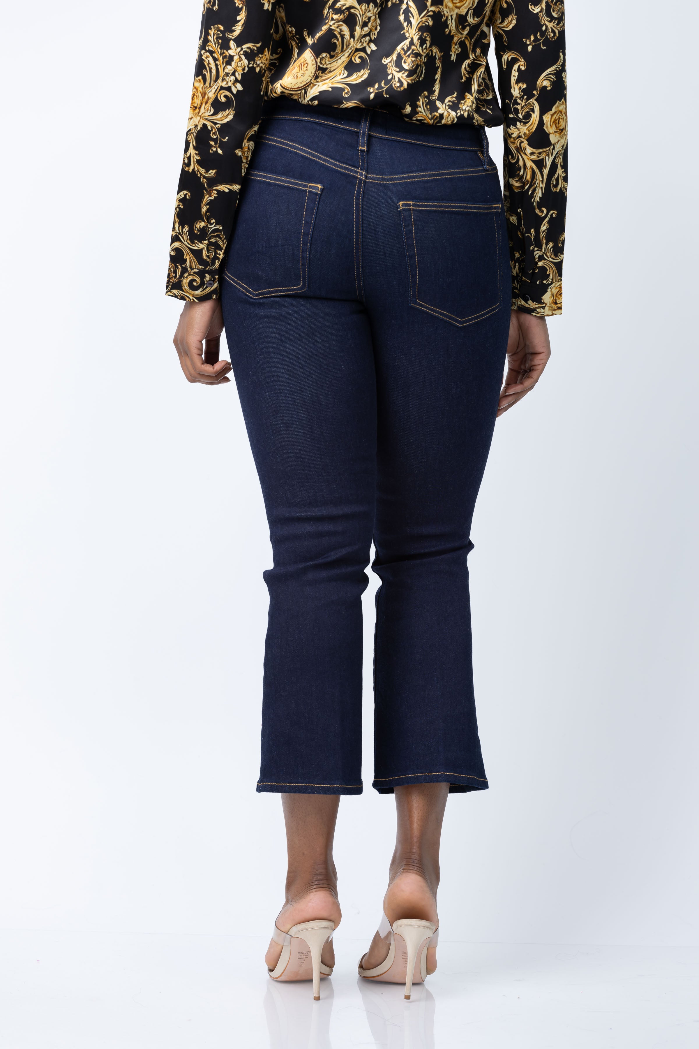 Experience the ultimate in comfort and style with the Frame Le Crop Mini Boot In Stargirl. This curve-hugging and flattering denim fit is perfect for any woman looking for a trendy and versatile addition to her wardrobe. Trust us, FRAME jeans truly does the bootcut fit best!