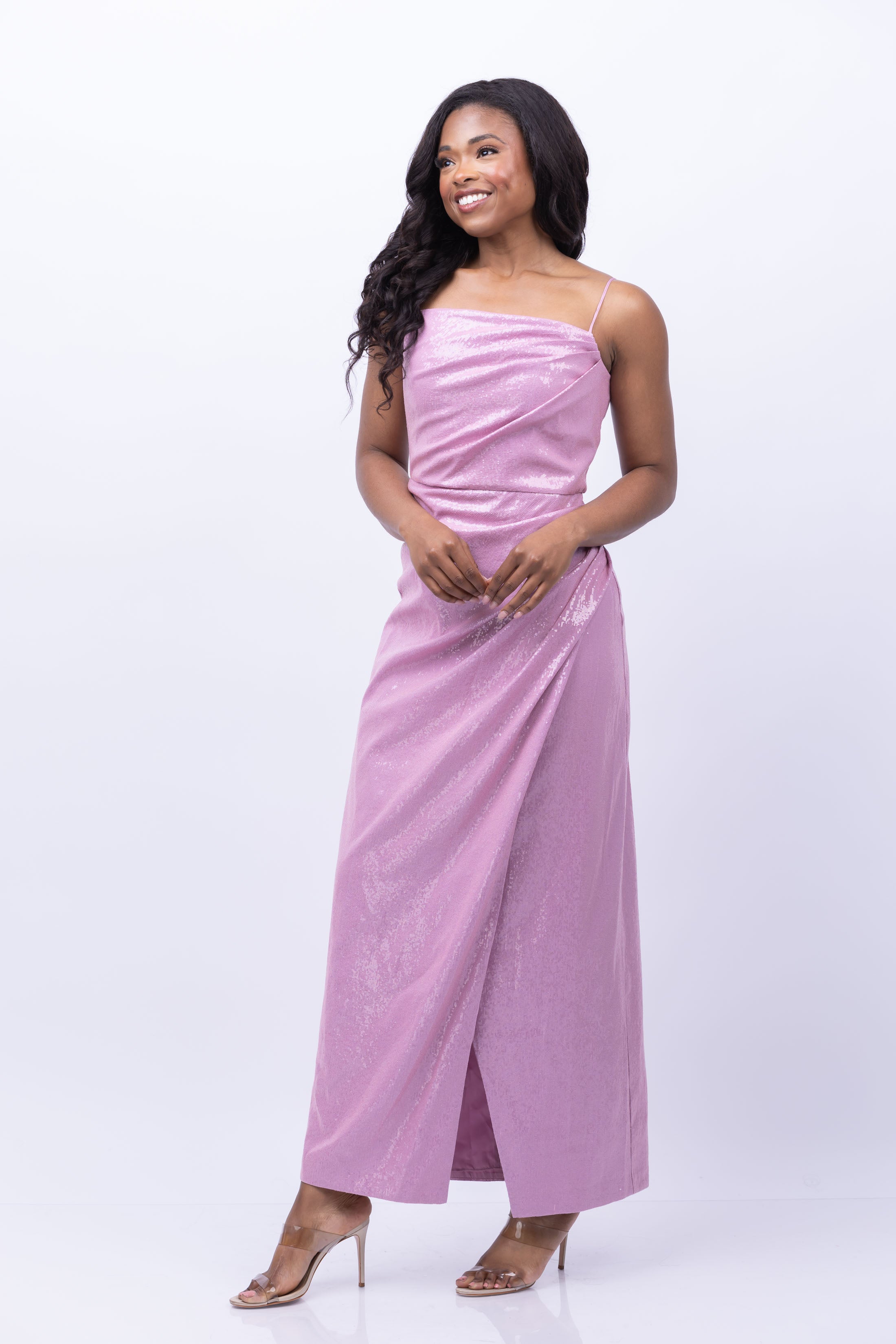 Halston Alania Gown in Stretch Sequin Wisteria