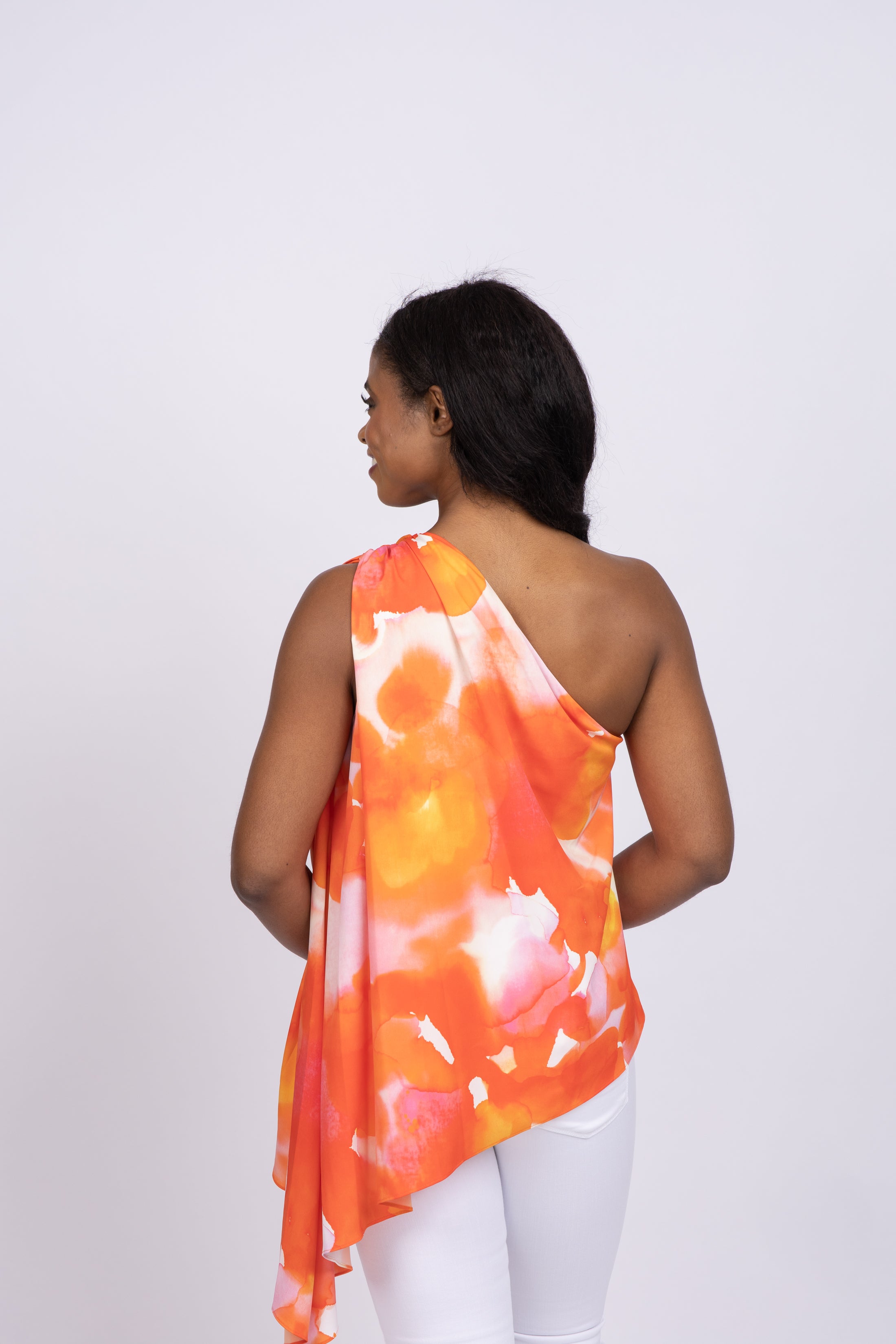 Halston Steffi Dyed One-Shoulder Top in Sunset Water