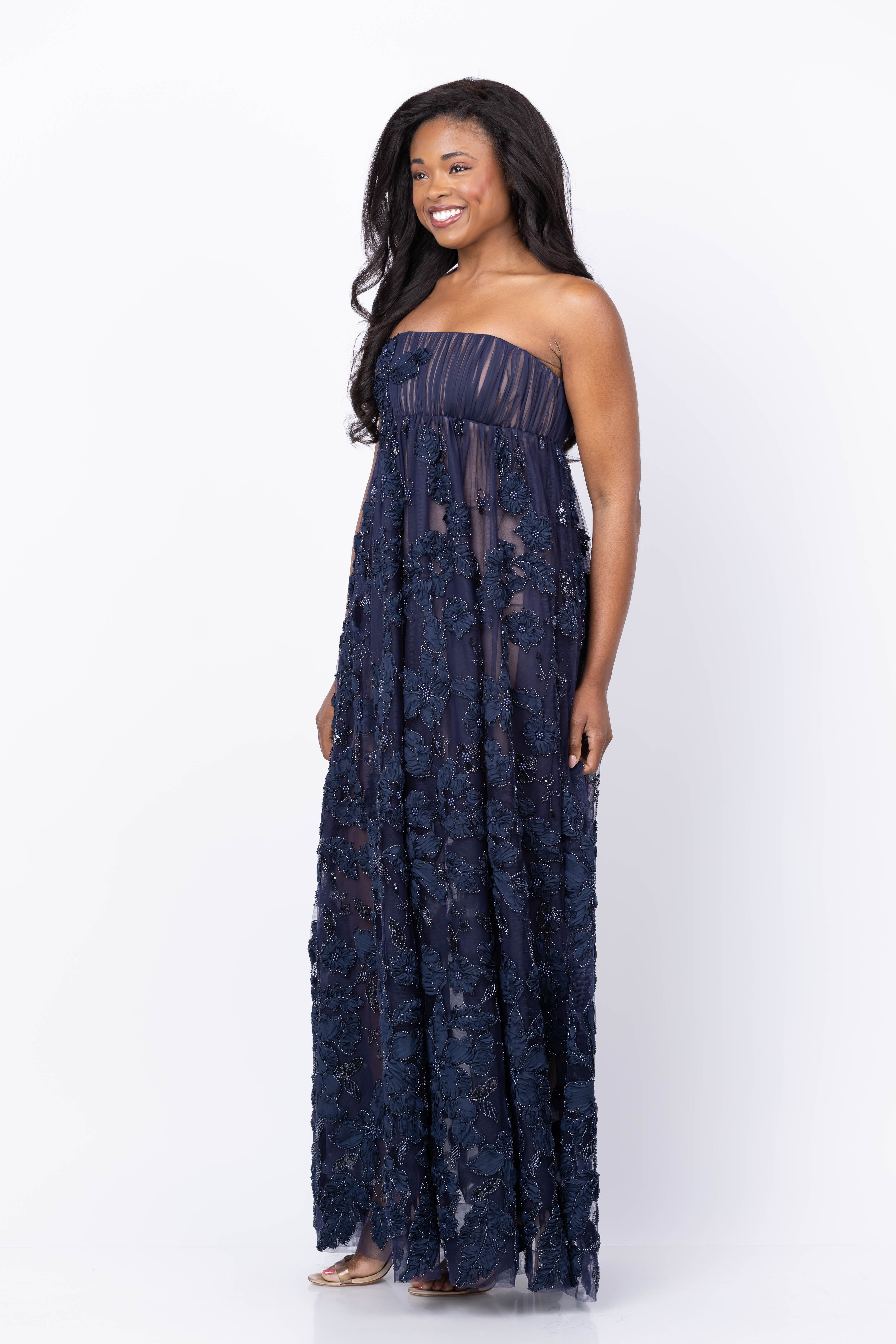 The Helsi Beatrice Dress in Midnight Blue delivers sophisticated elegance in a compact silhouette. This fitted bodycon mini features a structured bodice with internal boning that sculpts and supports your frame, while strategic ruching creates a flattering empire waist. Luxurious 3D floral embroidery adorns the fabric, adding depth and visual interest to every angle. The convenient center back zipper ensures an easy, polished fit. Perfect for those seeking a statement piece that balances structure with refined femininity.