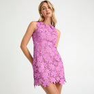 The Helsi Rosalie Dress in Orchid features a fitted sleeveless bodice and a flared skirt for a flattering silhouette. Its scallop neckline and hem add a delicate, feminine touch. Fully lined with layered mesh, it creates a subtle nude effect that enhances comfort and style. A center back zipper ensures a seamless fit, making this dress a perfect choice for elegant occasions where you want to stand out with grace and charm.