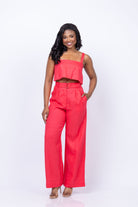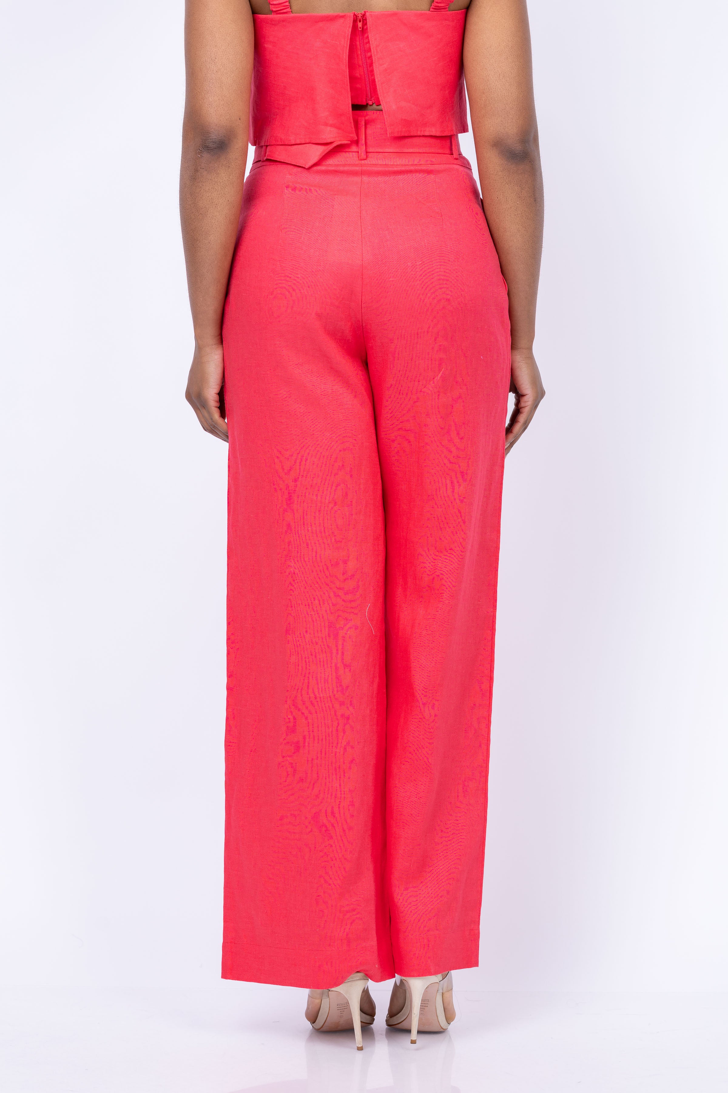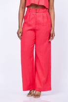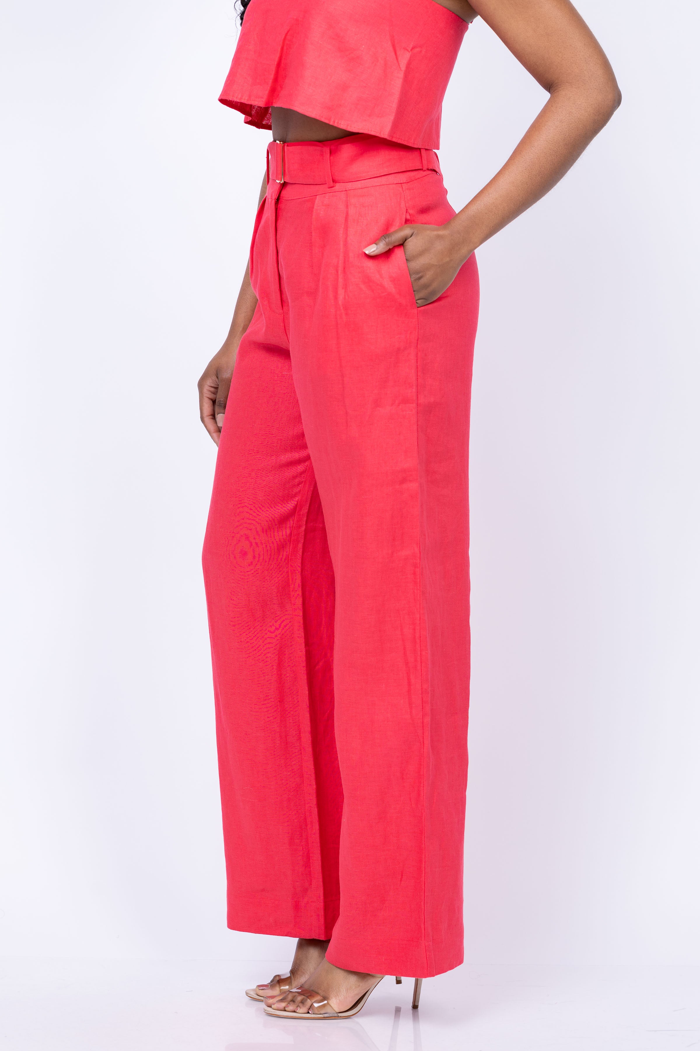 Effortlessly chic and comfortable, the Hevron Alina Pants in Bright Red are perfect for any occasion. Made from our signature 100% linen, these pants feature a fitted, high rise waist and pleated front for a flattering fit. The removable belt and wide-leg silhouette add a touch of sophistication to your outfit.