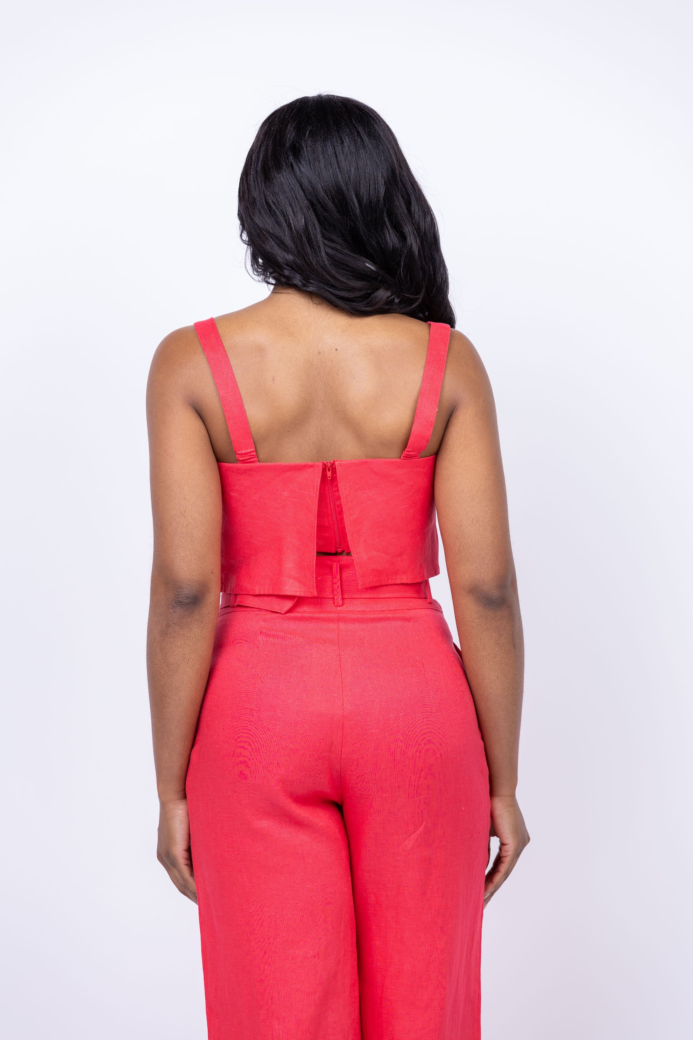 Introducing the Hevron Caitlyn Crop Top in Bright Red. Made from 100% linen, this top features thicker straps and an open square neckline for a comfortable yet stylish fit. With a built-in bralette and discreet zip closure, it's perfect for any occasion. Stay cool and chic this summer with the Caitlyn top!