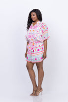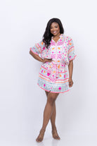 Juliet Dunn Blouson Dress Mexican Print in Fuchsia