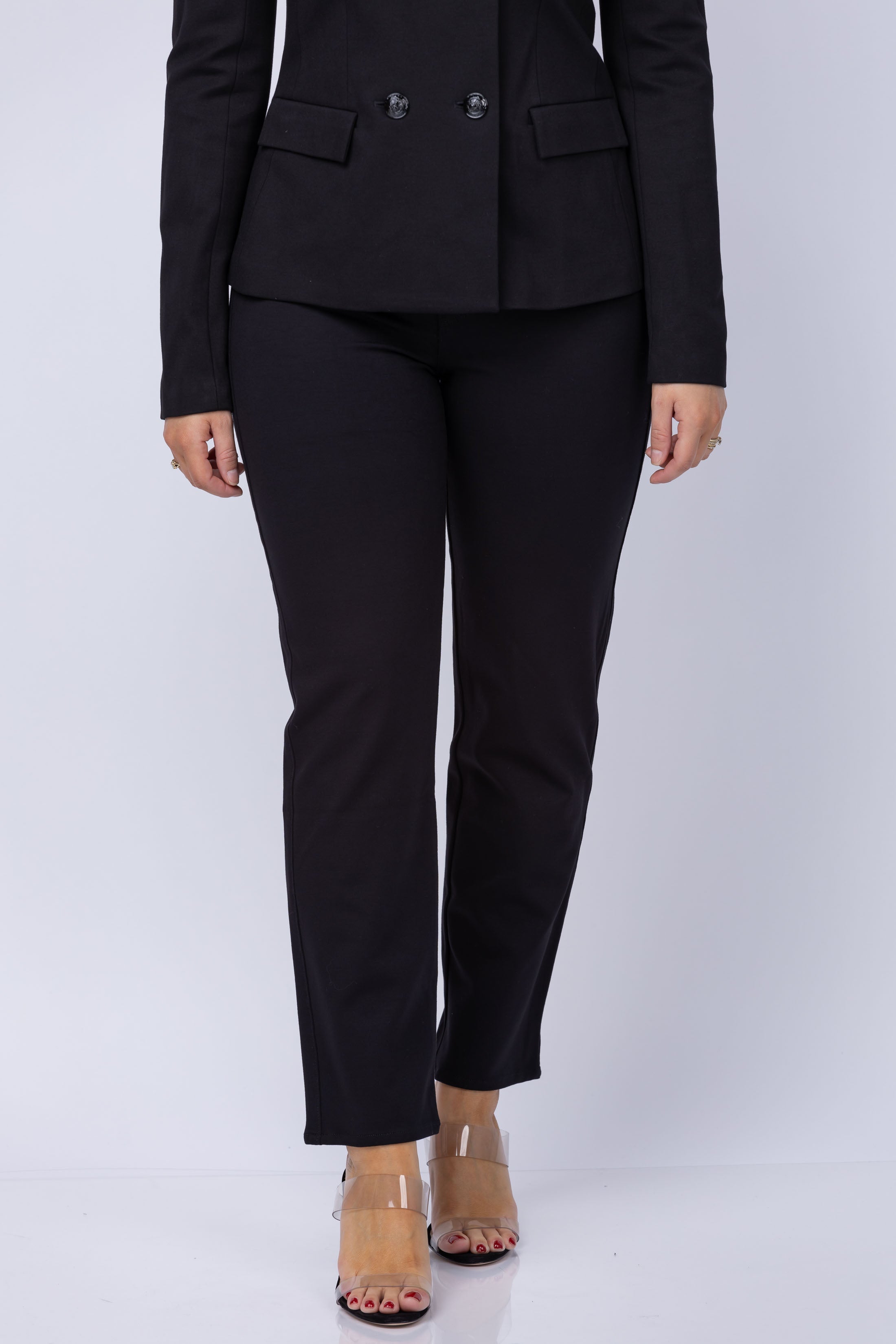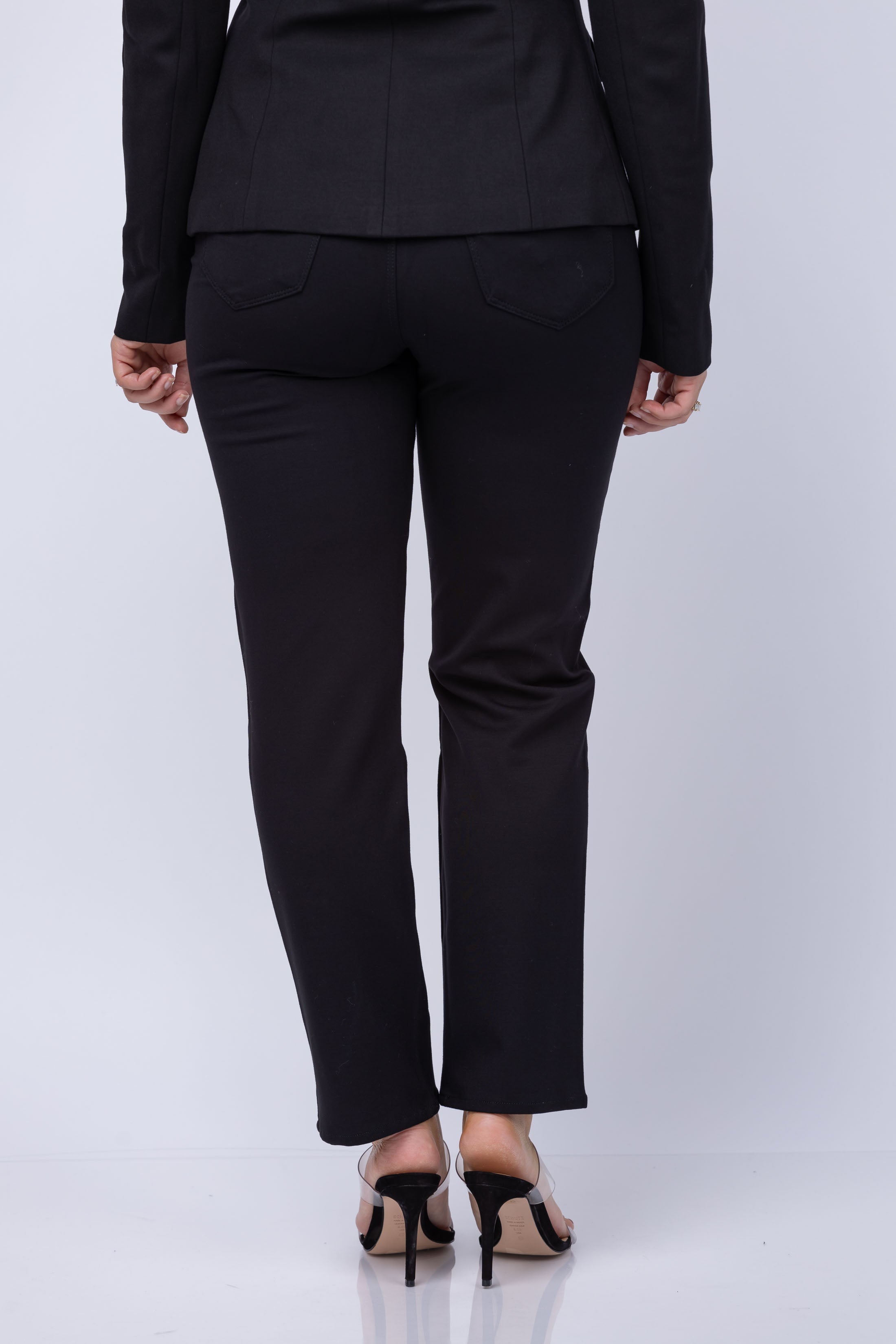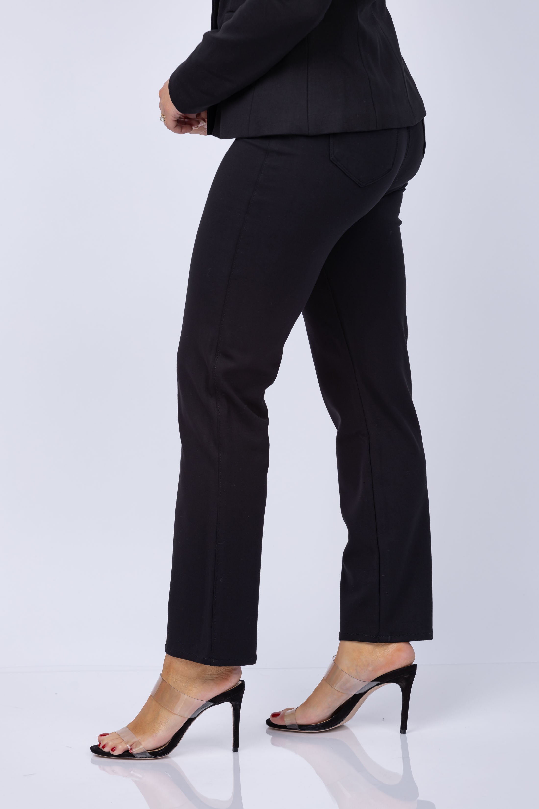 Our classic cropped cigarette jean, updated in black ponte. The ultra-wearable slim-fit Alexia features iconic jean styling like a high rise, contoured waistband and five-pocket construction. Wear it with a silk blouse and metallic heels for an effortlessly chic casual evening look.