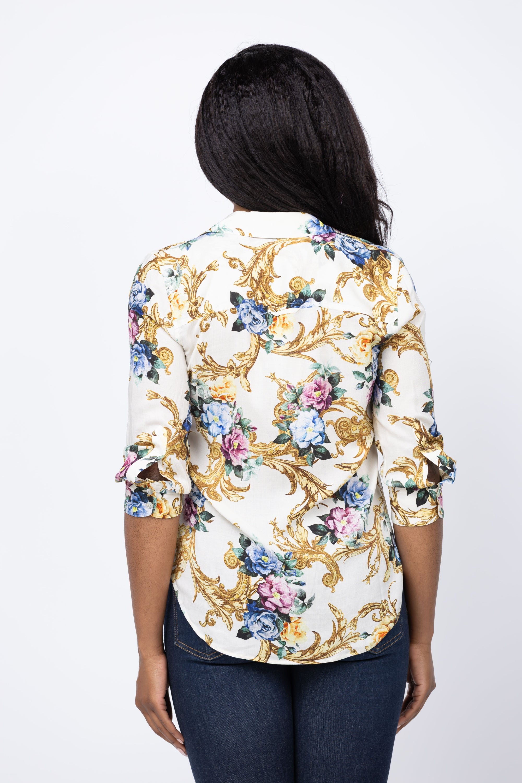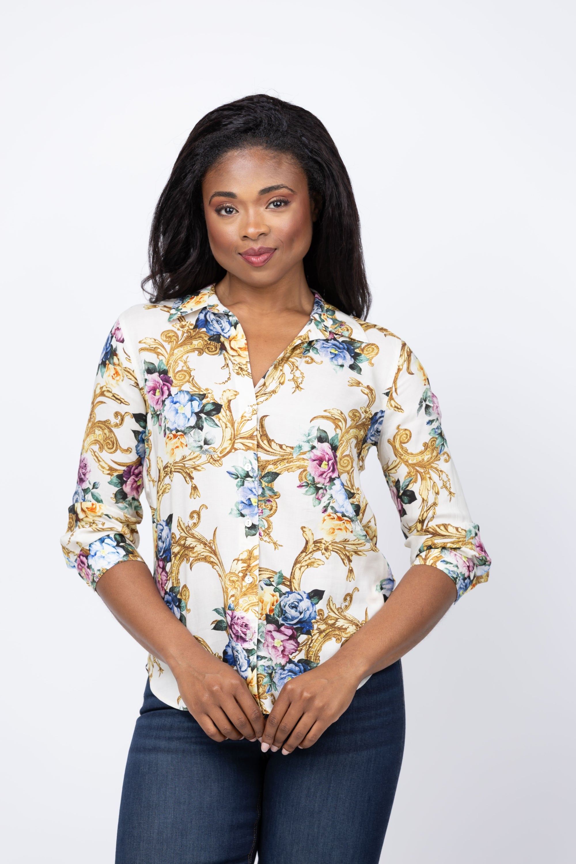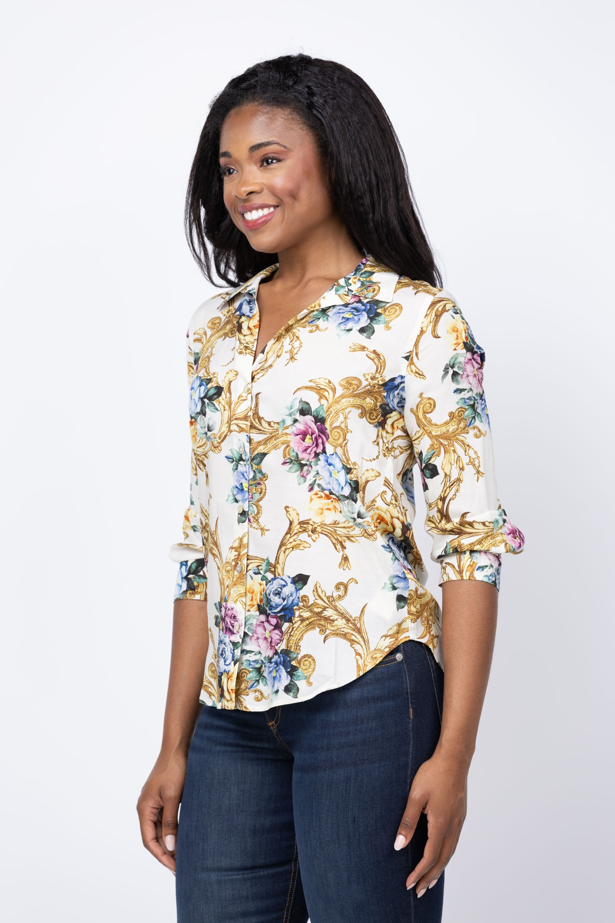 L'Agence Camille 3/4 Sleeve Blouse in Vintage White Large Floral Baroque
