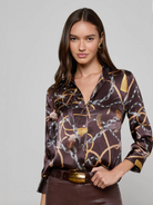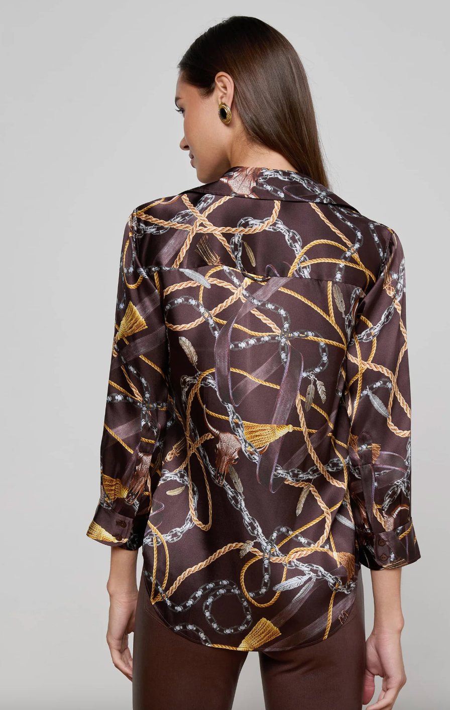 L'Agence Dani 3/4 Sleeve Blouse in Coffee Beean Multi Mix Western Chain